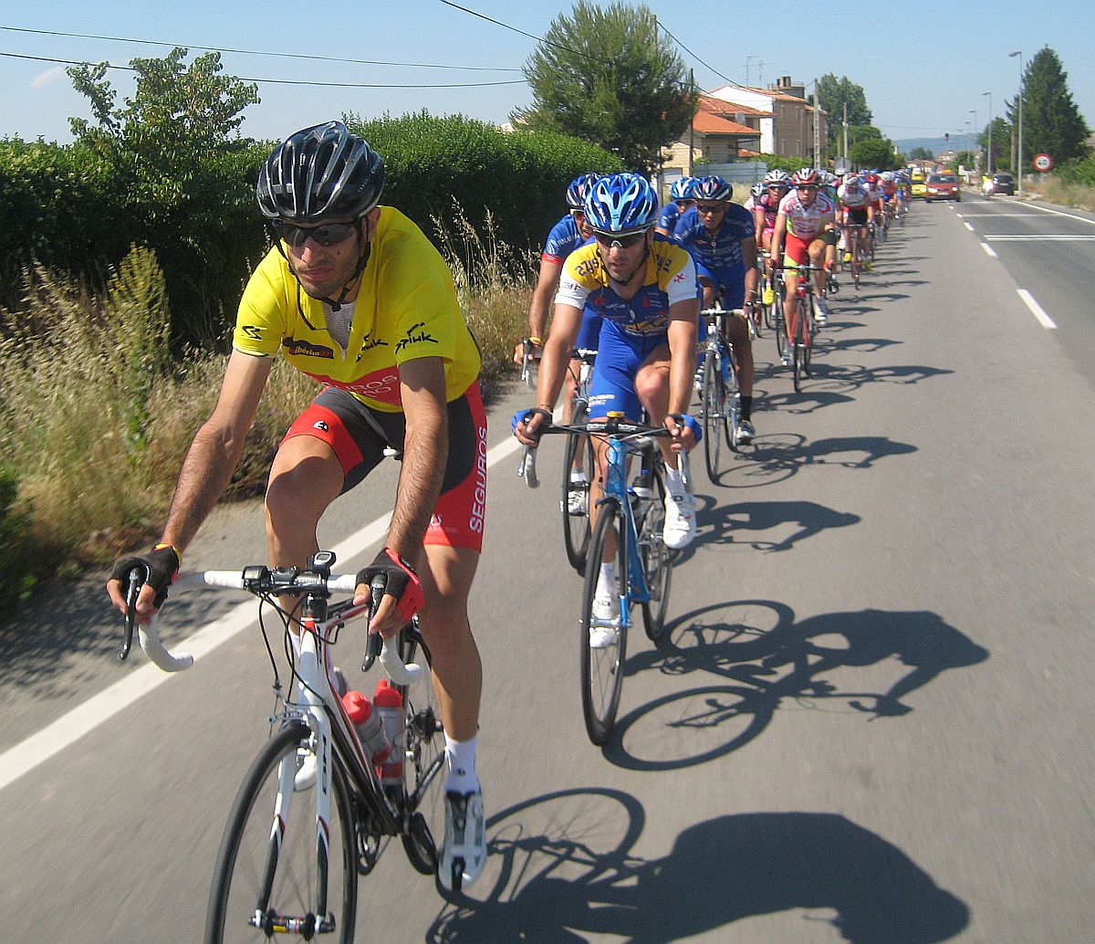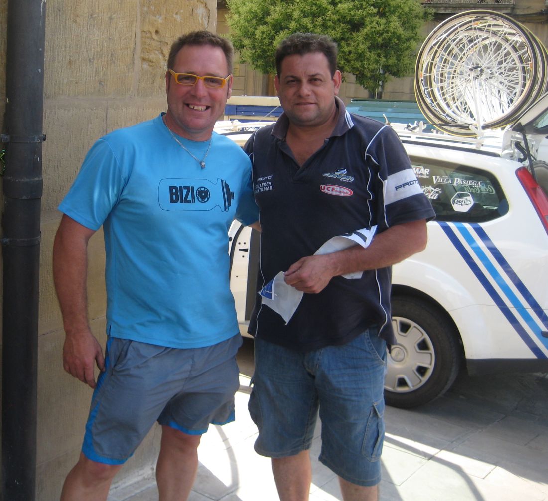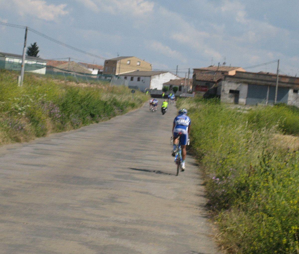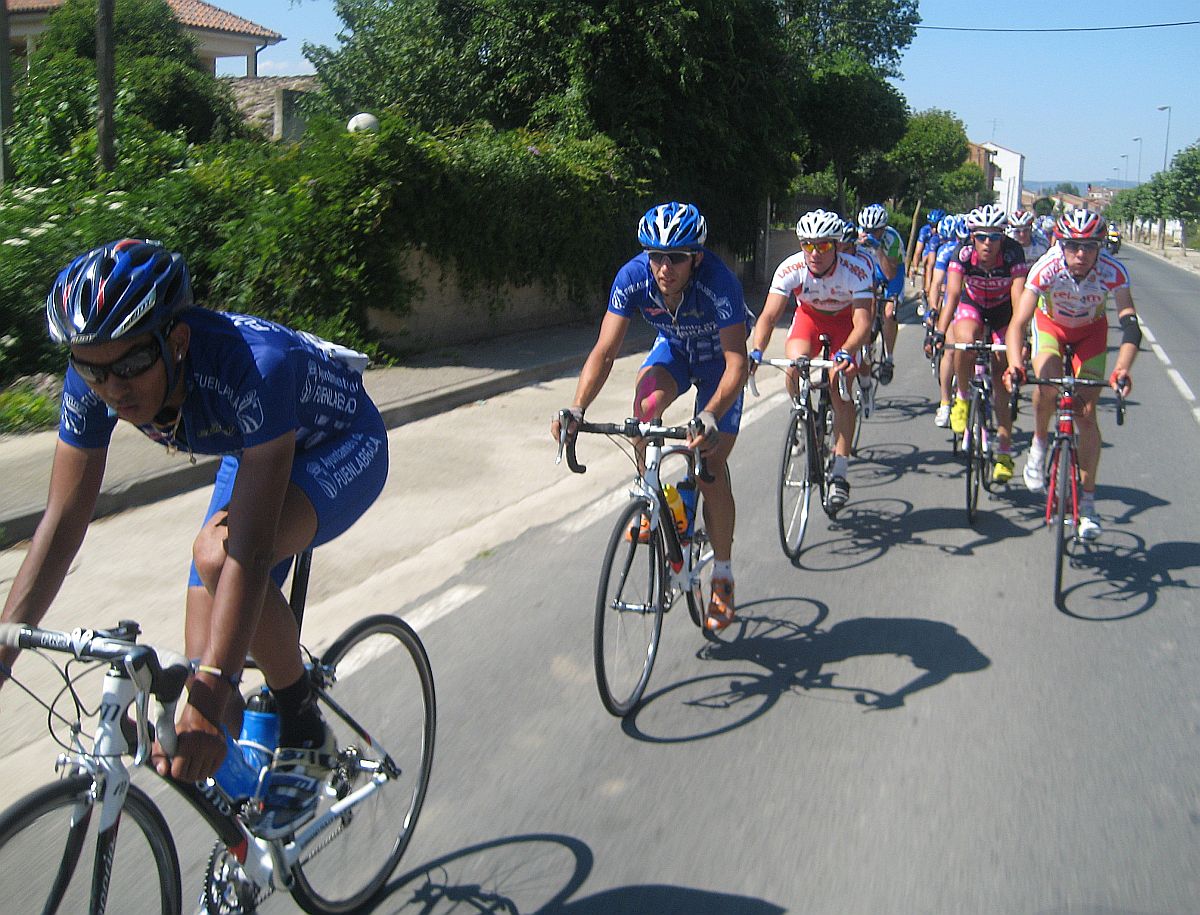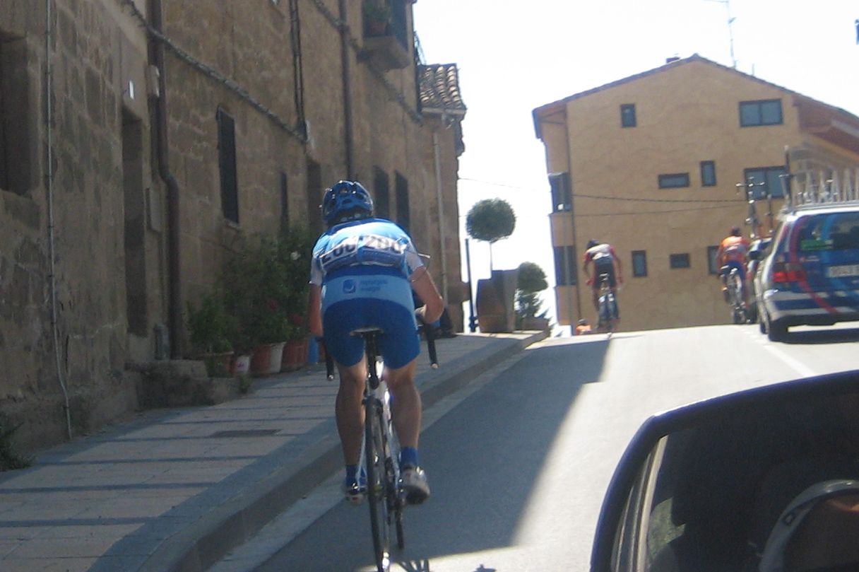 Cogí a los que se habían cortado de mi grupo y llegamos a la subida a un pueblo, subida similar a la de Paracuellos, esto era el Paracuellos de la Rioja. Había entrado por detrás Gustavo, que había atacado de detrás, se puso a tirar subiendo Paracuellos y nos fuimos los dos solos, yo empezé a bailar la bici de Mayordomo y joder. me iba yo solo para alante, que bien se bailaba esa bici, mejor que la mia y eso que es la misma, uyuyuy...