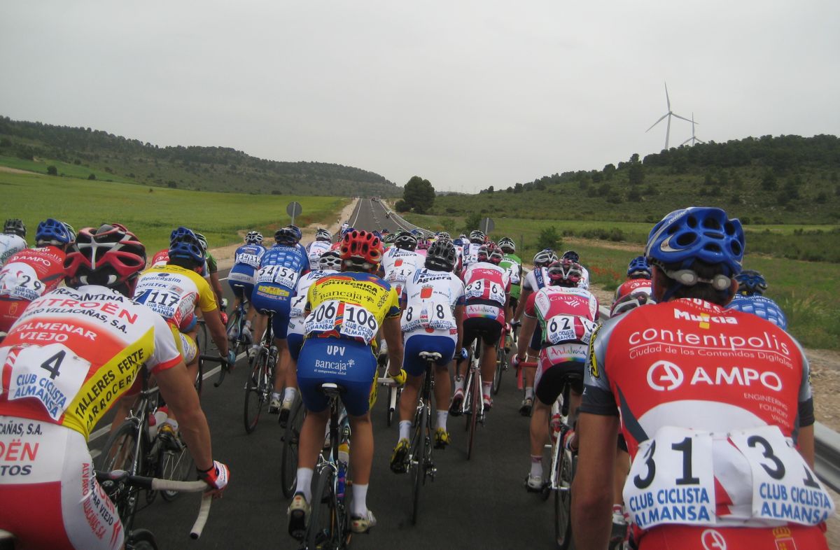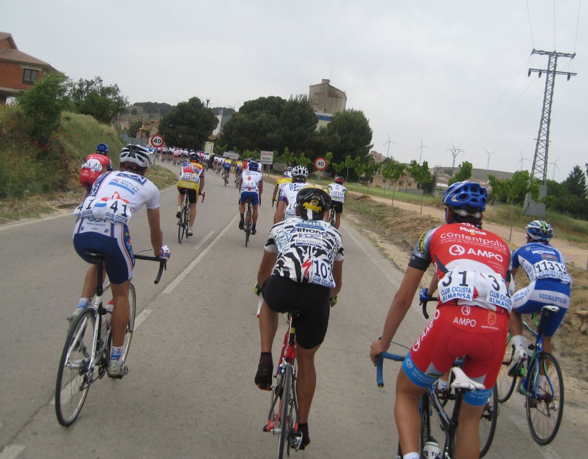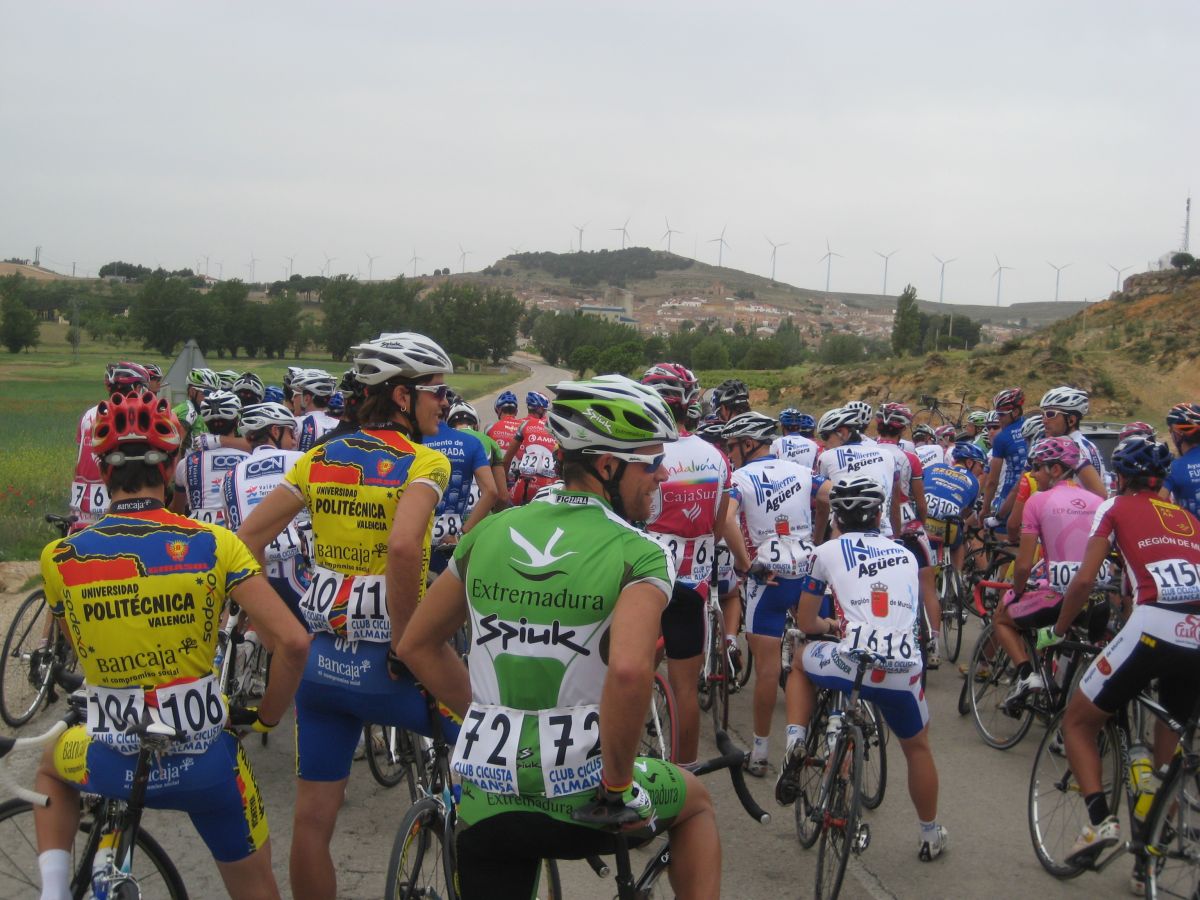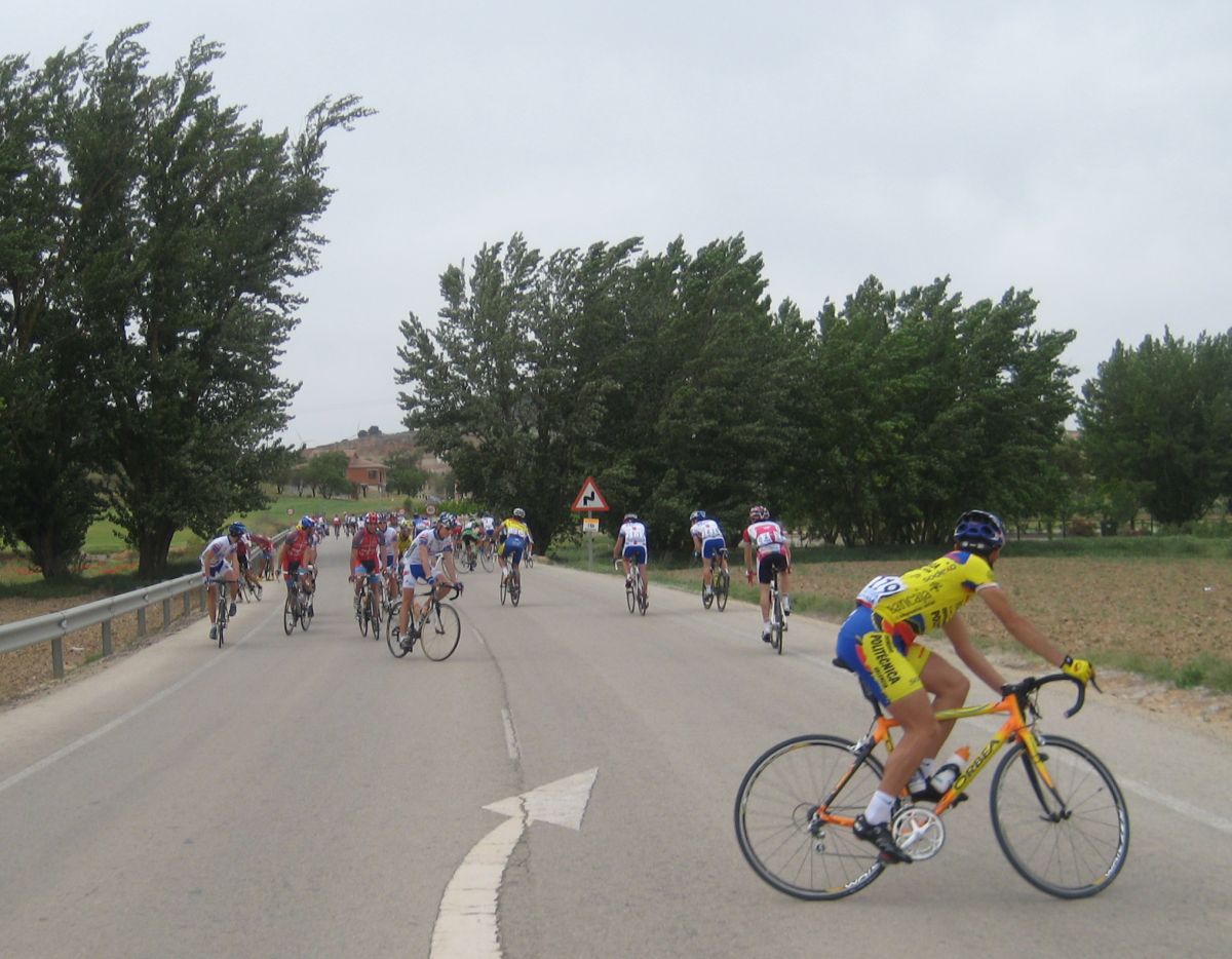Se hizo una escapada en la primera subida, fuga donde iba el Francés, fiel a las fugas de salida, el pelotón iba deprisa pero la fuga mantenía, el giro de Casas de Juan Nuñéz, Pozo Lorente, mucho aire pero se iba relativamente cómodo, subiendo el puerto ya se estiró la cosa y coronando en el páramo muchos cortes, empezaba la guerra en serio, bajando Higueruela a mil por hora y giro derechas en la mítica carretera de Hoya Gonzalo, donde se arman las mayores escabechinas.