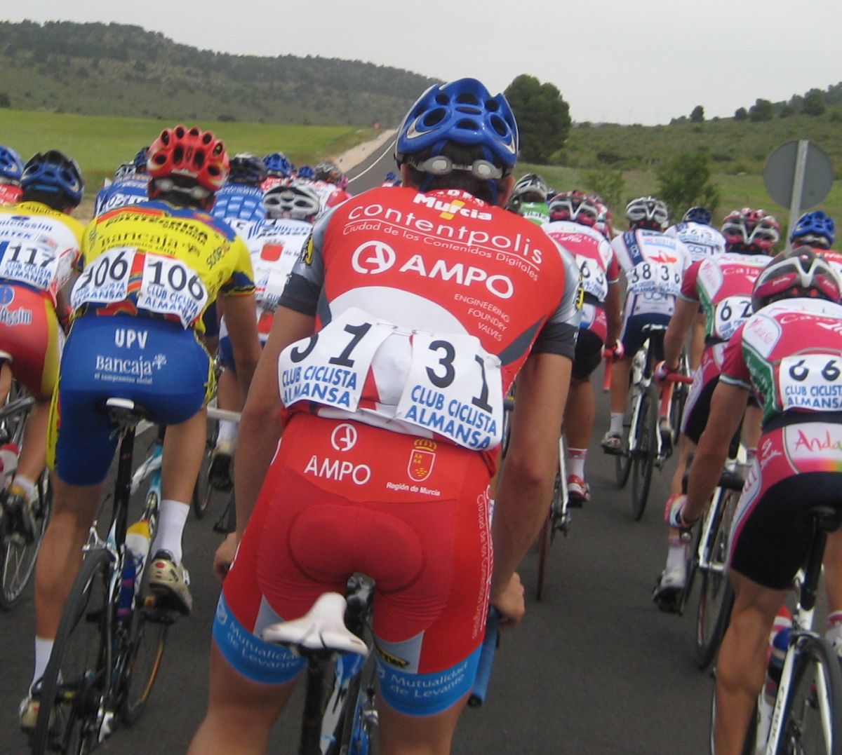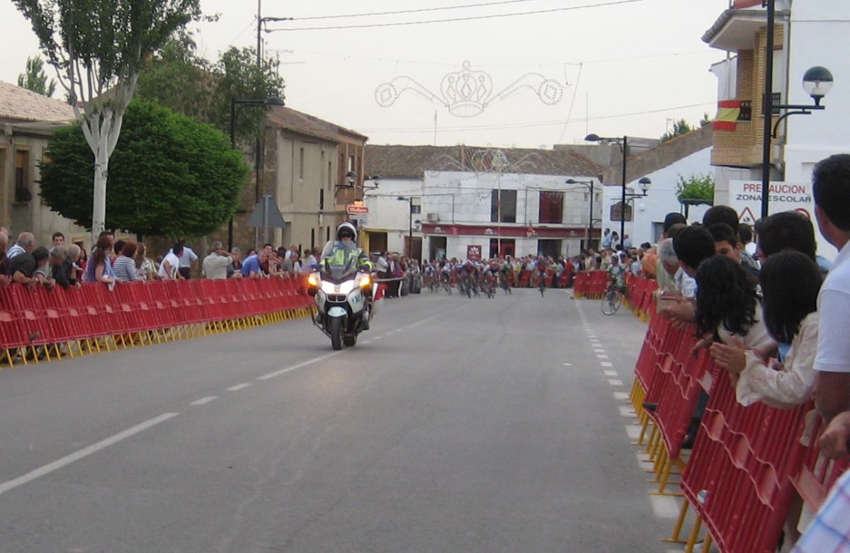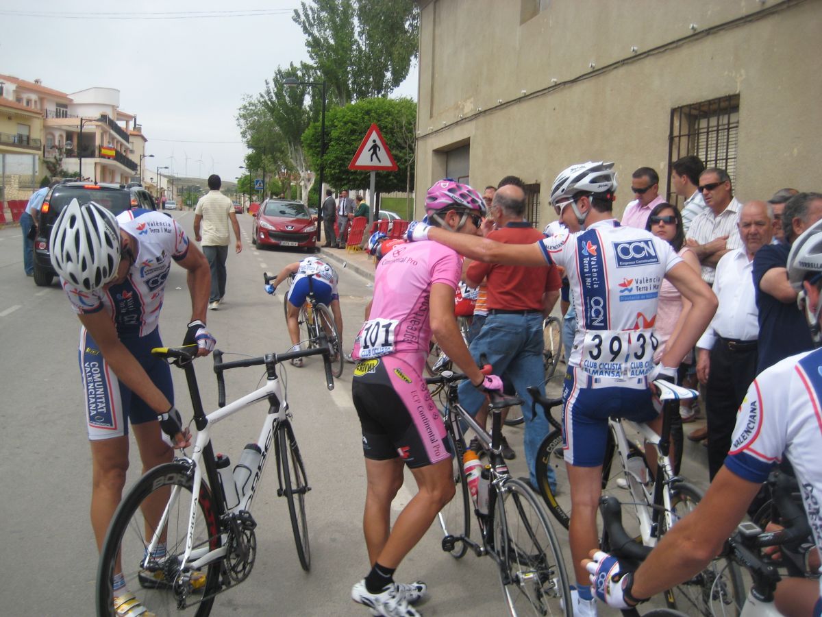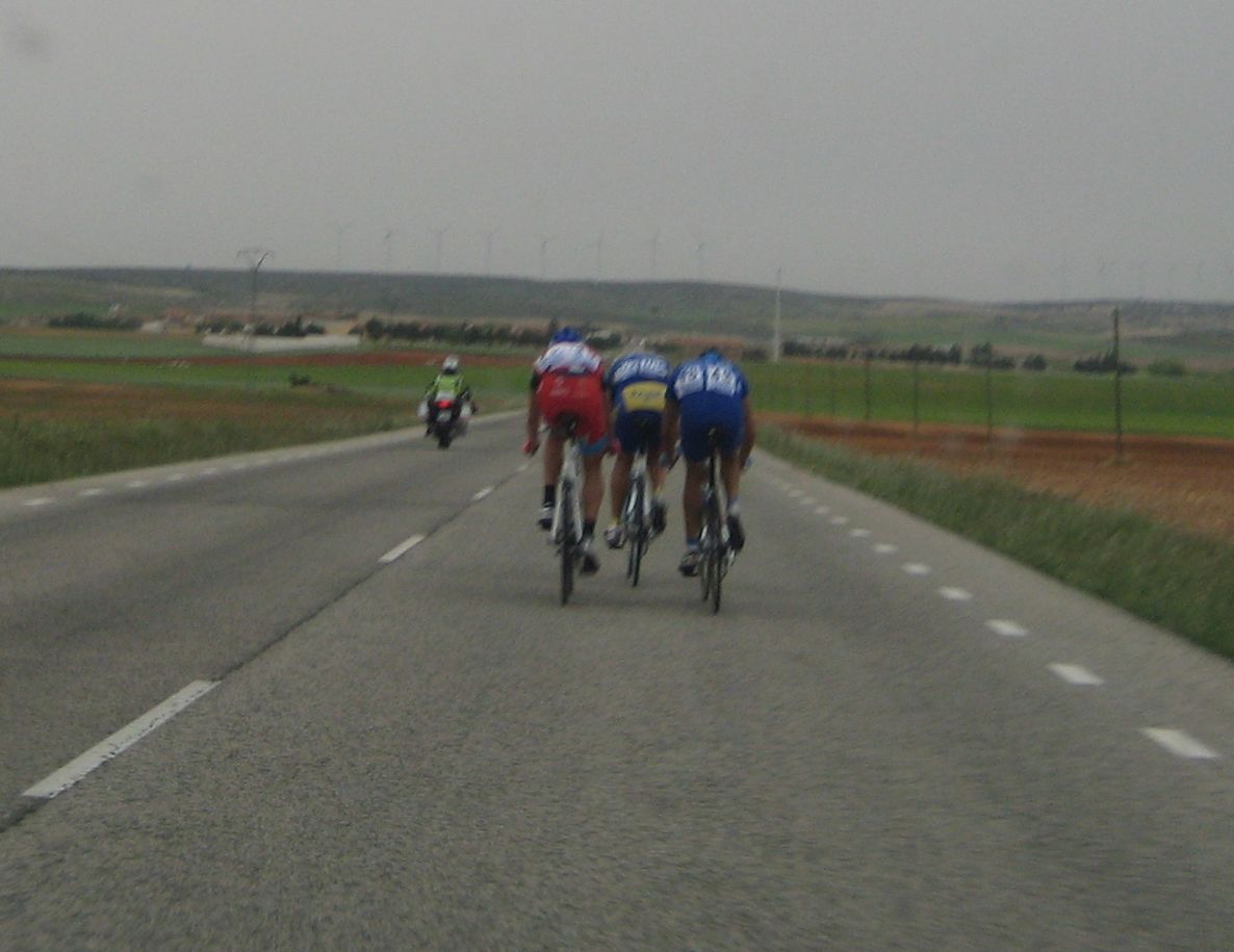 Se hizo una escapada en la primera subida, fuga donde iba el Francés, fiel a las fugas de salida, el pelotón iba deprisa pero la fuga mantenía, el giro de Casas de Juan Nuñéz, Pozo Lorente, mucho aire pero se iba relativamente cómodo, subiendo el puerto ya se estiró la cosa y coronando en el páramo muchos cortes, empezaba la guerra en serio, bajando Higueruela a mil por hora y giro derechas en la mítica carretera de Hoya Gonzalo, donde se arman las mayores escabechinas.