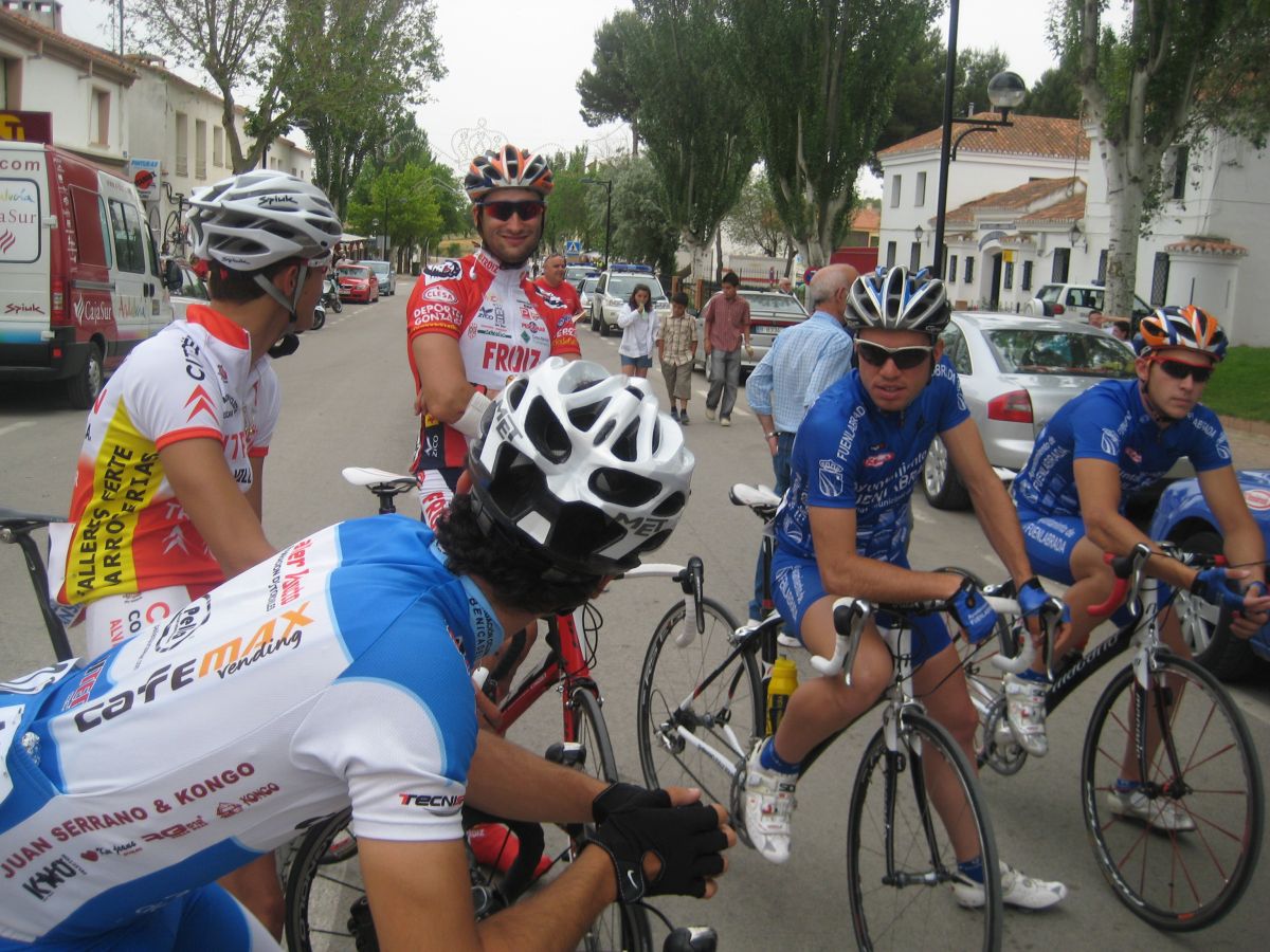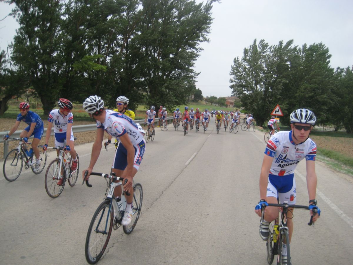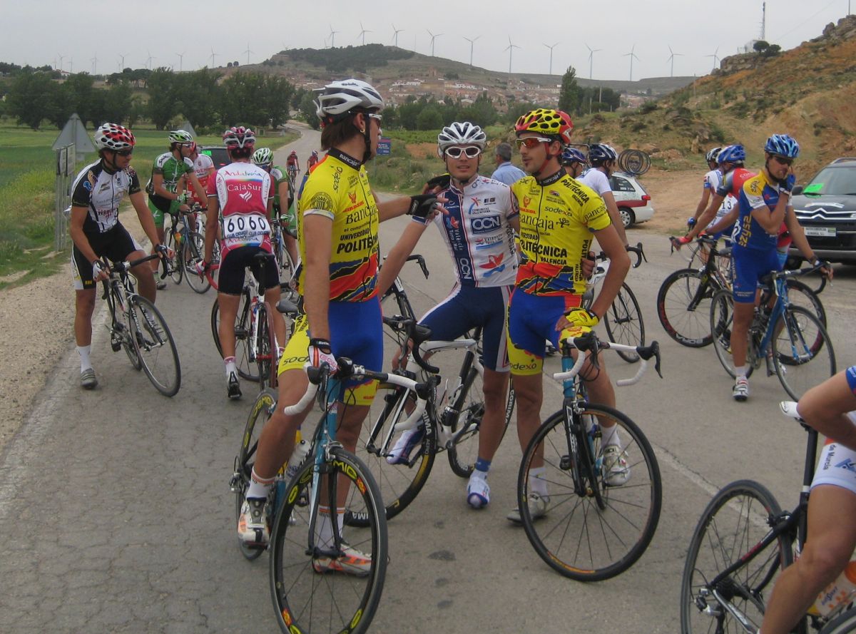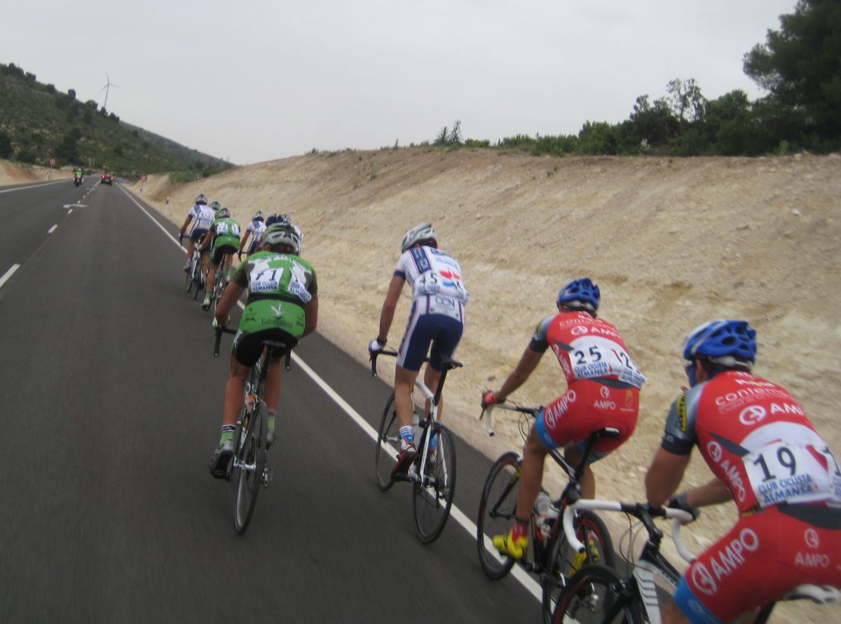 Yo iba solo del equipo asi que me metí a rueda hasta que empezaron los ataques en el puerto, los Extremadura y Comunidad eran mayoría, al final se acabaron marchando por delante Torrella, Belda, Zambrano, Terciado y Alcaraz, por detrás controlaban sus compañeros y les toco tirar a los 2 chicos de Cajasur que iban, Roman Osuna y Cervera, coronando arrancó Chacón y salí por el, luego atacó Gabi y al final nos acabamos marchando en el páramo con aire, Chacón, gabi y yo.