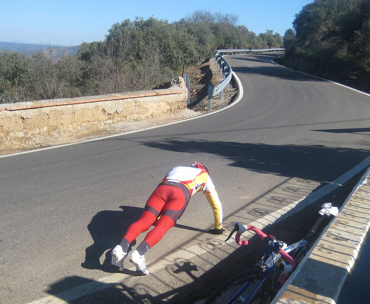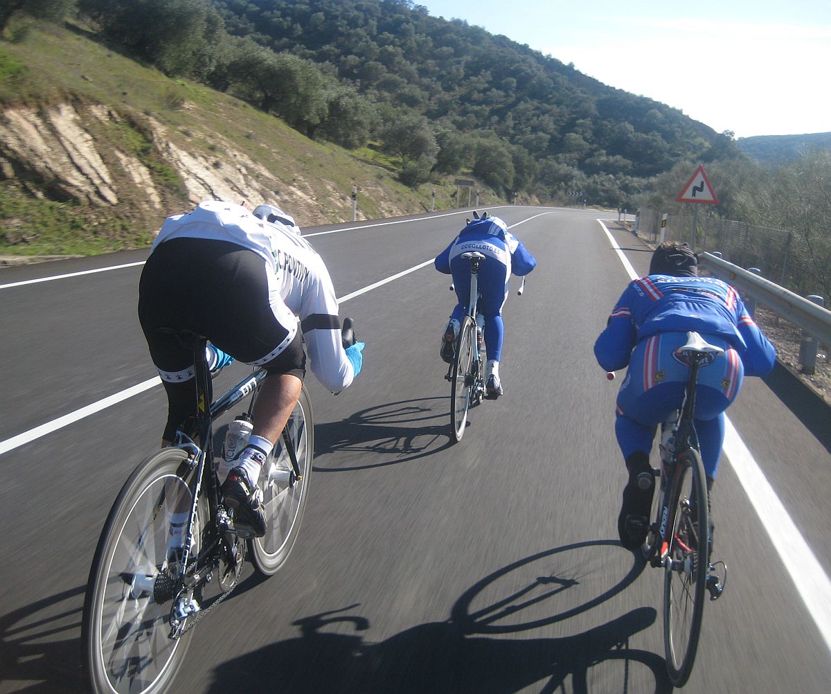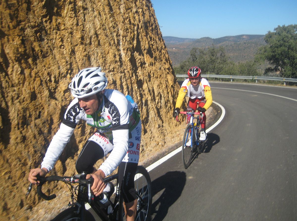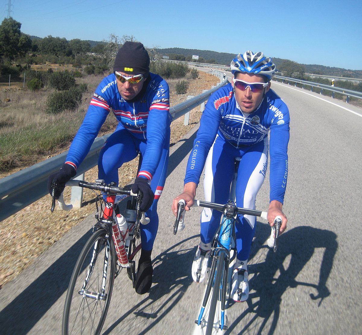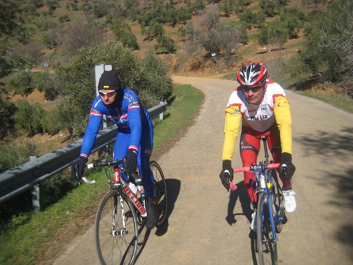 ![]() Aqui soltando piernas con el Francés en la carretera de Alcolea, ya tocaba relajar post "competición". |