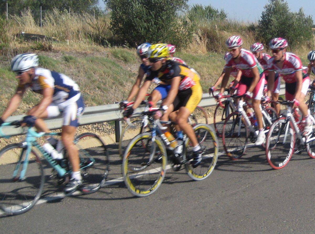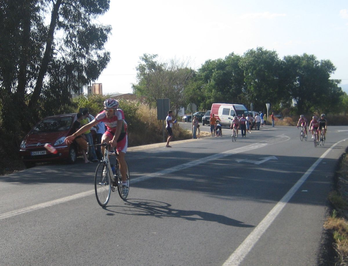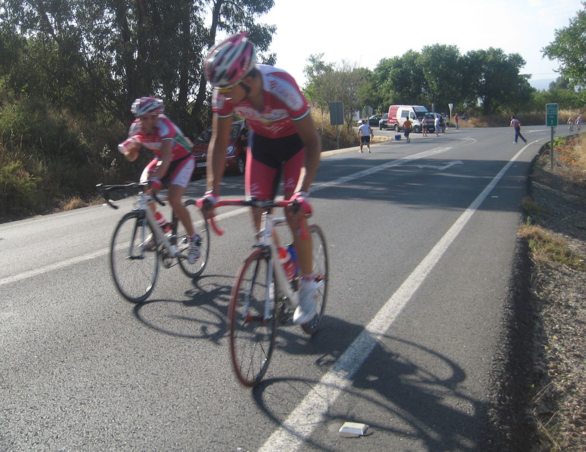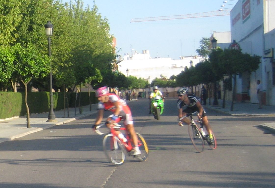 Bajando por Bollullos festival de ataques, Bollullos todavía me trae buenos recuerdos, la última carrera Elite-Sub23 que hicieron la gané yo en 2006 tras 70km escapado solo, en los tiempos de Edu Parras, Hidalgo, Rosendo.., desde aquella no había vuelto a pasar por ese pueblo tan mítico de carreras, hace mas años hacían 2 al año, ahora ya ninguna.