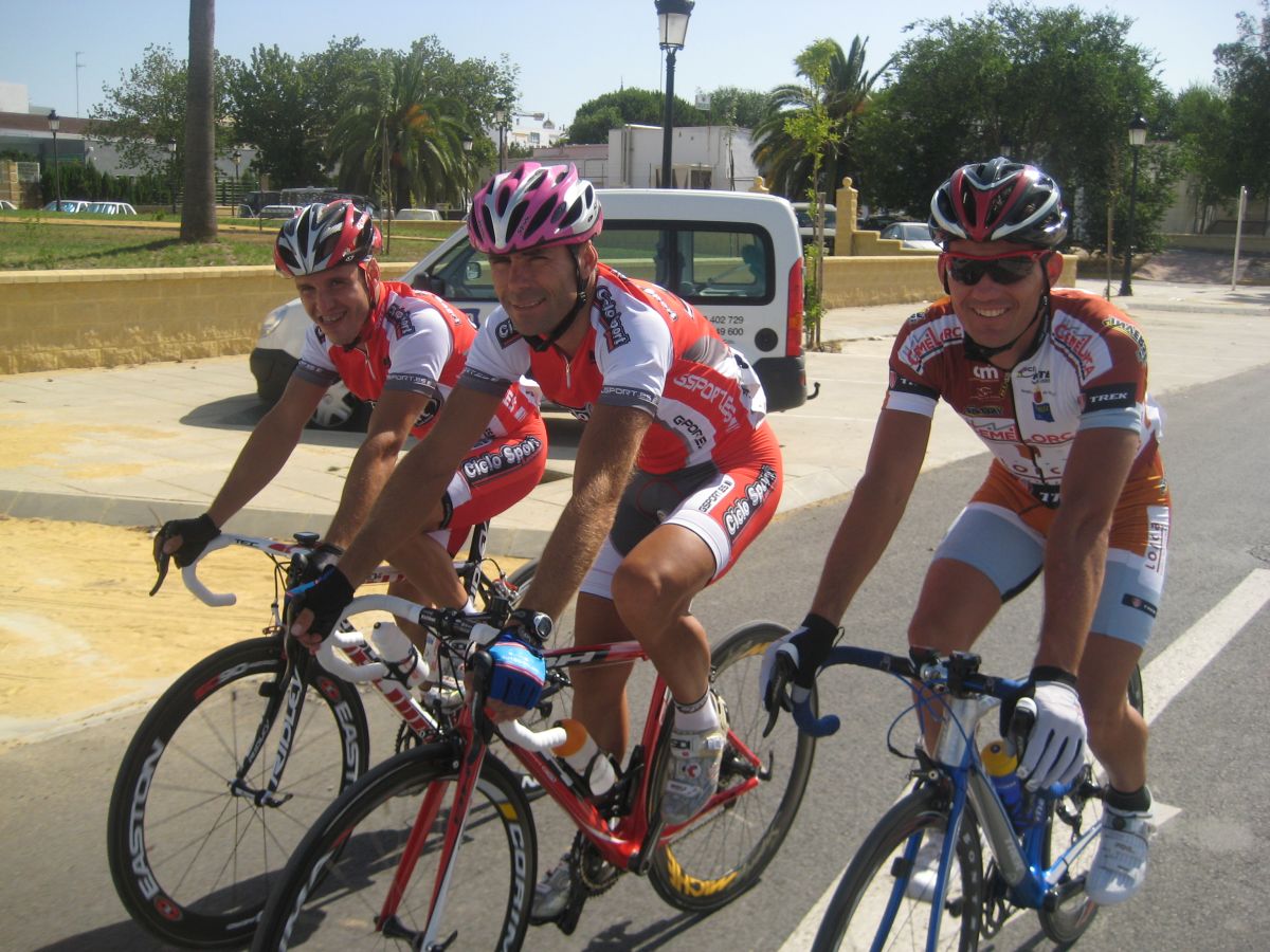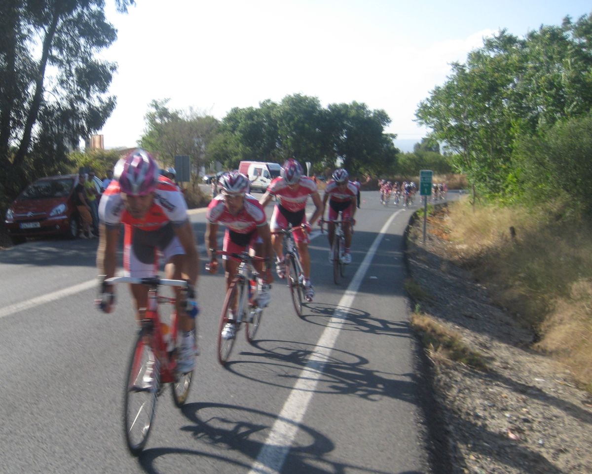 Ahí venía la locomotora portuguesa bien organizada, me puse a rueda, viendo alante como se esperaban los Cajasur y se organizaban para marcharse, yo iba caldeado de los ataques con Carrasco y me costó pasarles relevo. Llego el director del Tavira y me dió agua. - Pero agua para que tires!!!