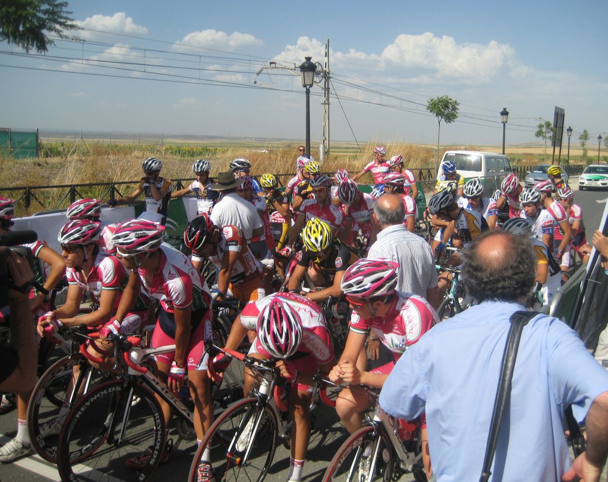 Venga ostias y ostias se fueron otros 2 Cajasur mas, iban 3 en cabeza, como hacía mucho aire se pusieron a cerrar cuneta Trujillo y el Marranete, pusieron un ritmo incomodo, todos comiendo chinas por la cuneta, manteniendo a los escapados pero haciendose ellos un gran desgaste, aunque su encunetamiento ya se cobró muchas victimas, animadas a bajarse por el infernal calor.