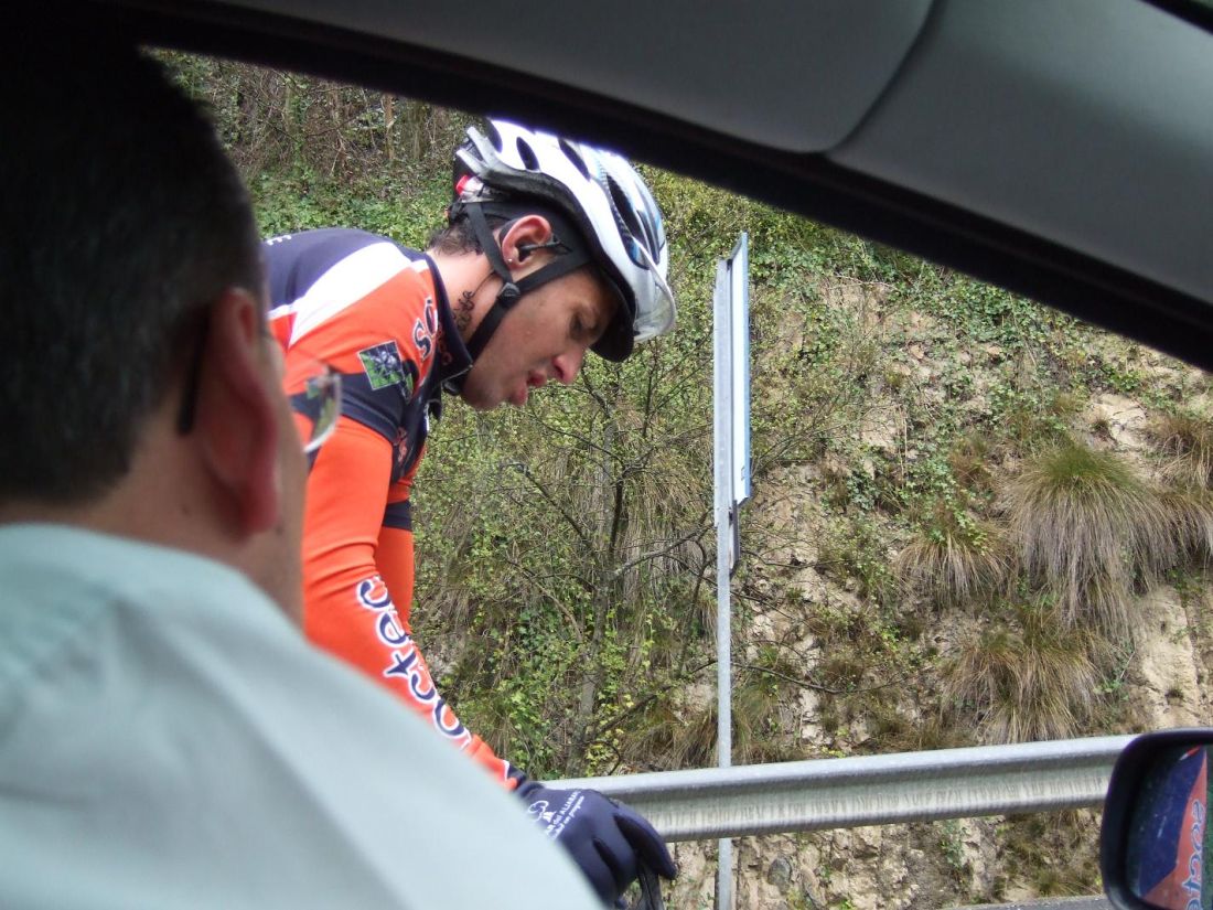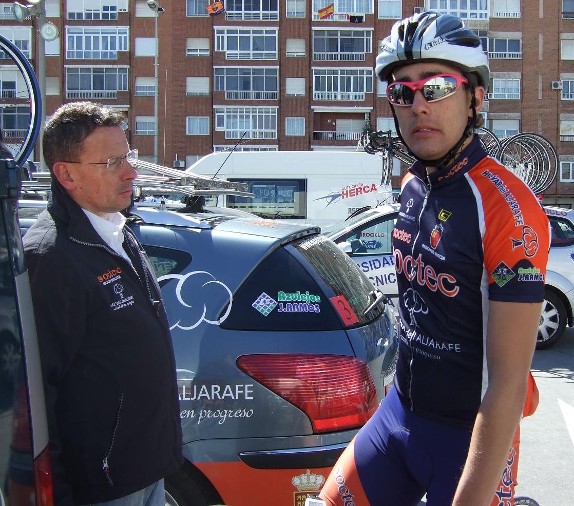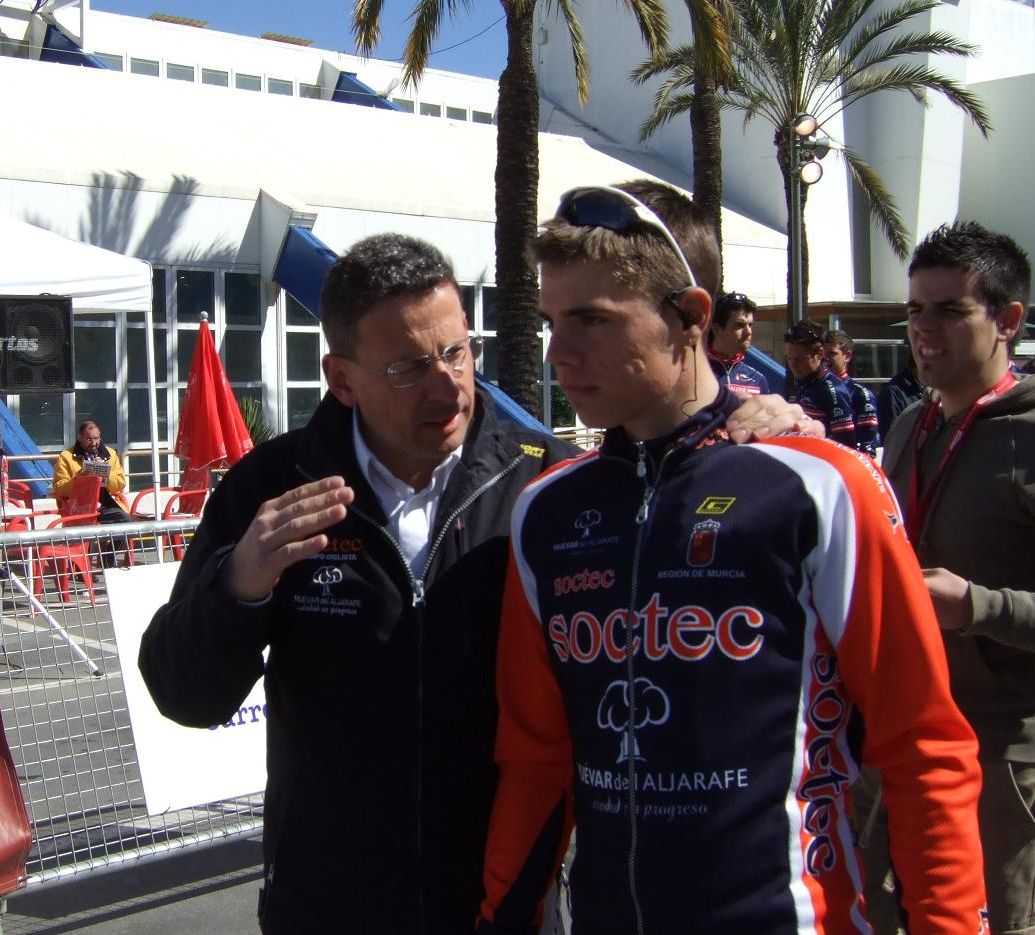 Siempre cuidando de sus corredores, aqui con Sergio Dominguez, ahora profesional en el Contempolis.
