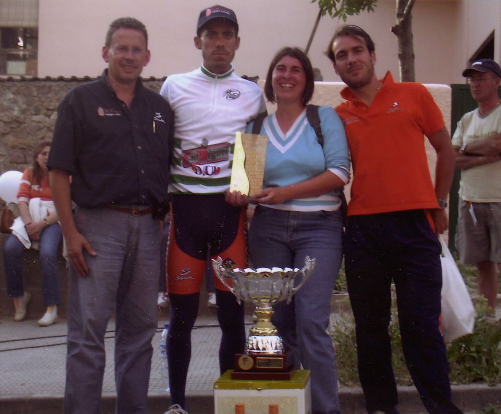 Vicente tras obtener un triunfo con Manu, posando con Julie y Edu Parras.