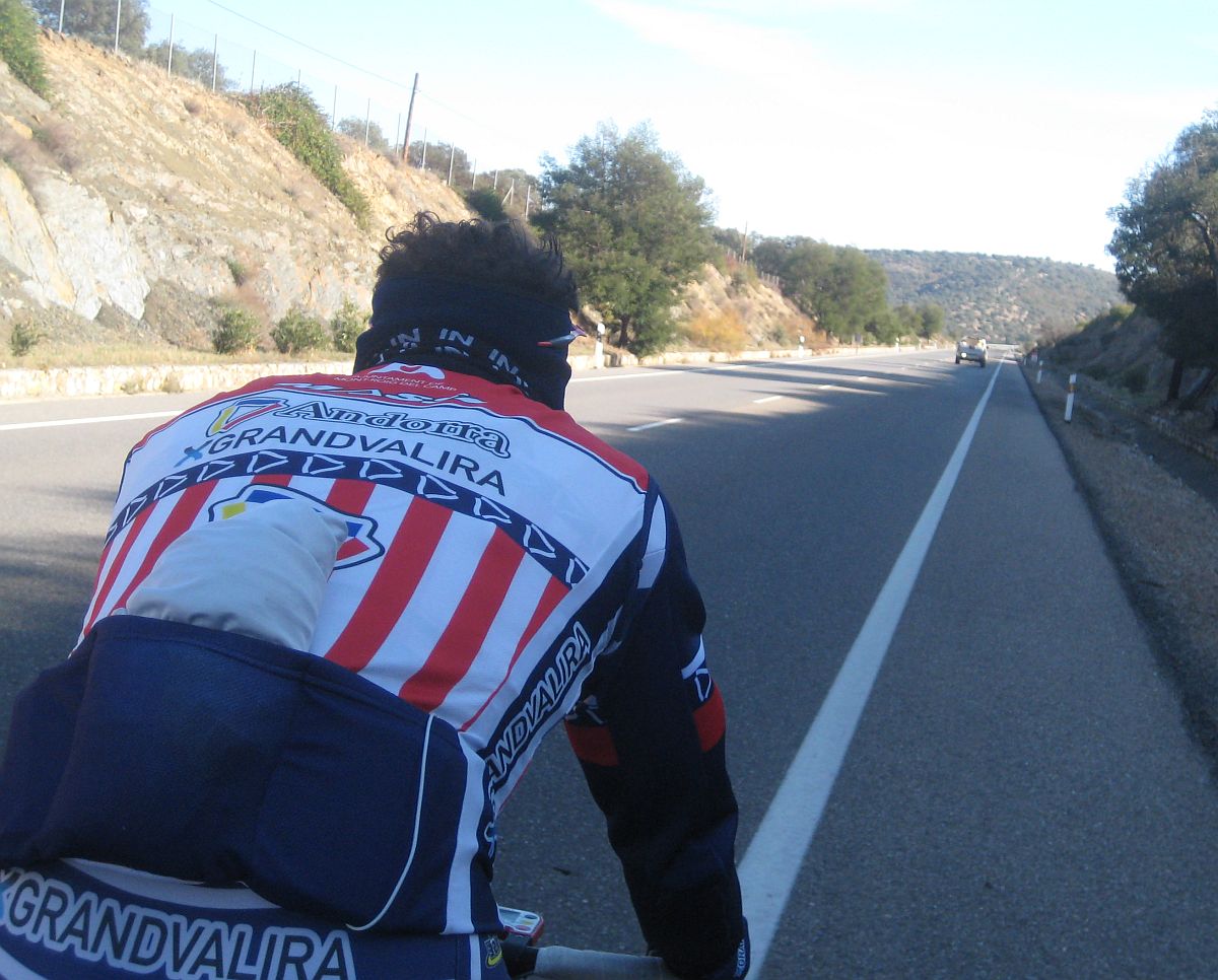 Llegamos a Espiel, ahí va el Carras con la equipación del Andorra.