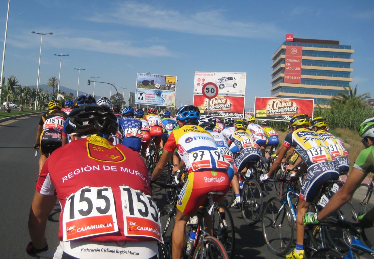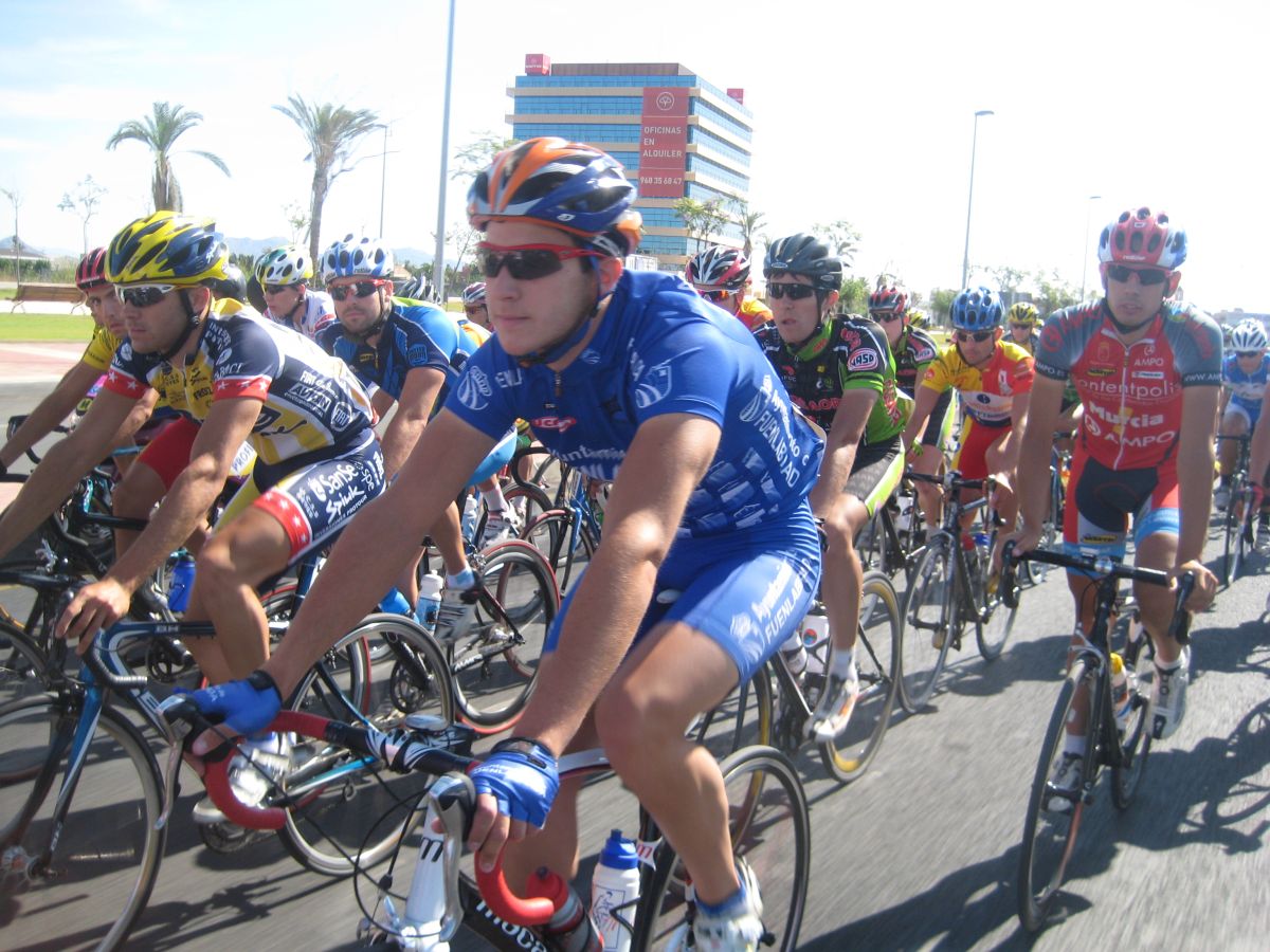 Después de una larga neutralizada por la ronda sur de Murcia y alrededores se daba la salida a balón parado, primeros kms llanos, mucha velocidad, muchos intentos de fuga pero no se iba nadie, yo a rueda sin moverme, solo hice algun movimiento para entrar en un corte grande pero con todos a rueda.