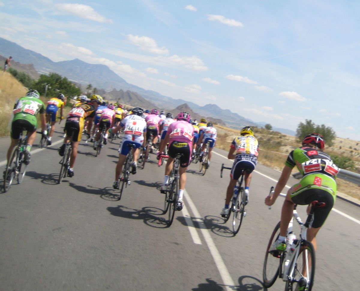 En el paso por Alhama se hizo un corte que abrió hueco, segun pasan los kms el pelotón daba mas concesiones.