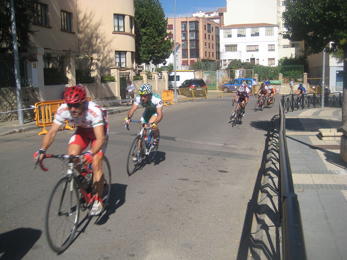 En la siguiente subida iba intentando recuperar de la arrancada de la vuelta anterior cuando se hizo la escapada buena, donde habilmente se metió mi compañero Rafael Lorenzana, su veteranía y fuerzas, viene de ganar en Casatejada y hacer 3º en Puertollano le valieron para entrar en el corte bueno de la cita soriana.