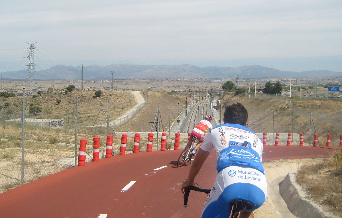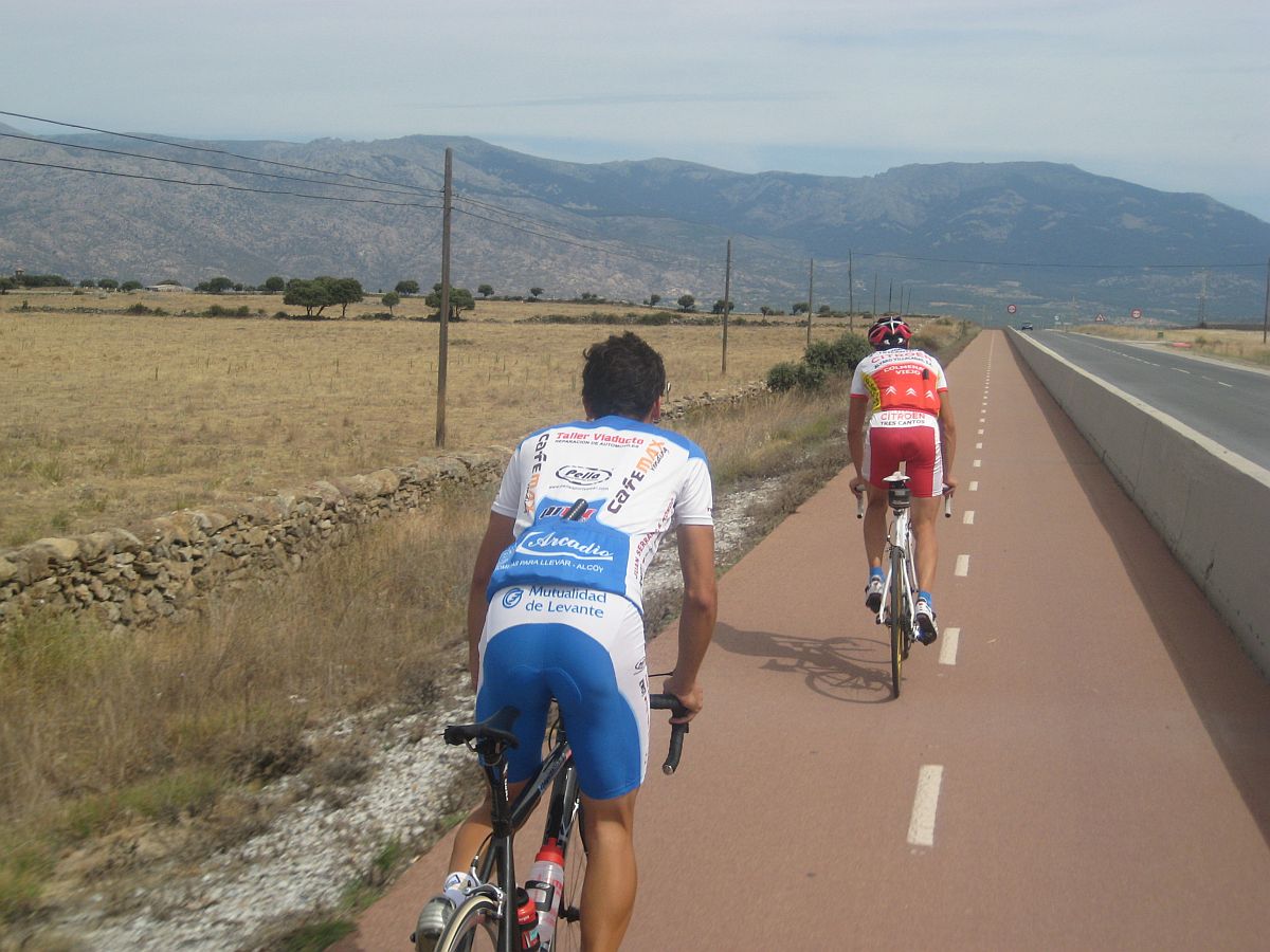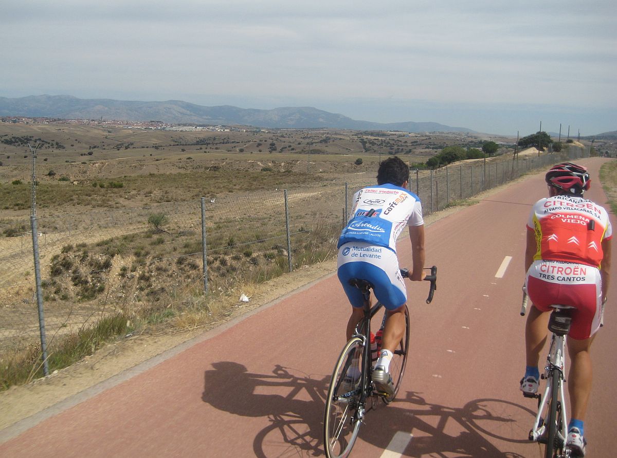 Esto ya es territorio pasamontes, por aqui ya se puede apretar en condiciones sin curvas que te bajen la media, al fondo Colmenar Viejo.