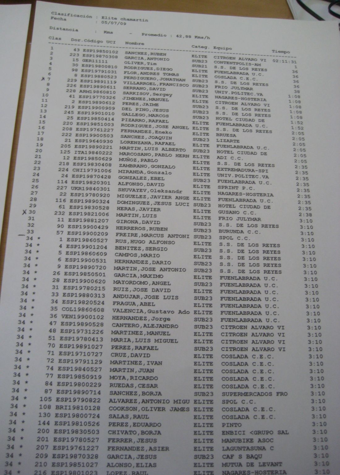 Seguían los ataques y nos fuimos otro corte de 6 corredores, con 3 Sanses, Tim , Perdiguero y Chuchi del Pino, Villaroel del Julymar, el Salchi y yo, ahí intentamos tirar todos para coger alante, pero al haber 3 Sanses ellos eran los mas interesados en coger alante para disputar la carrera.