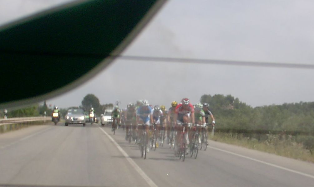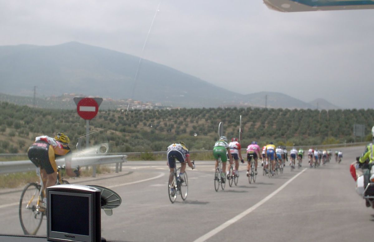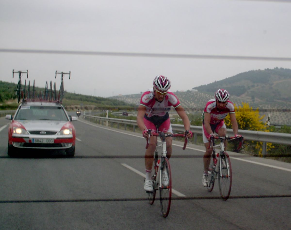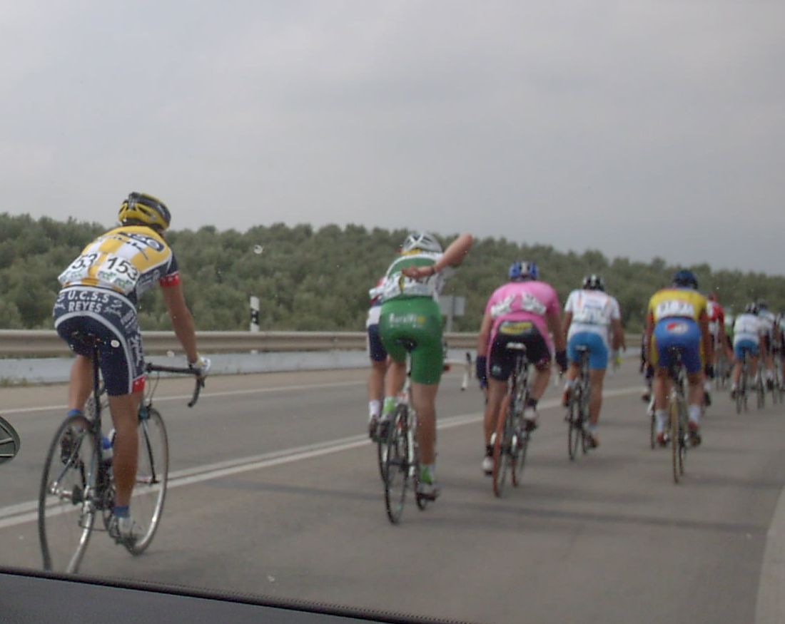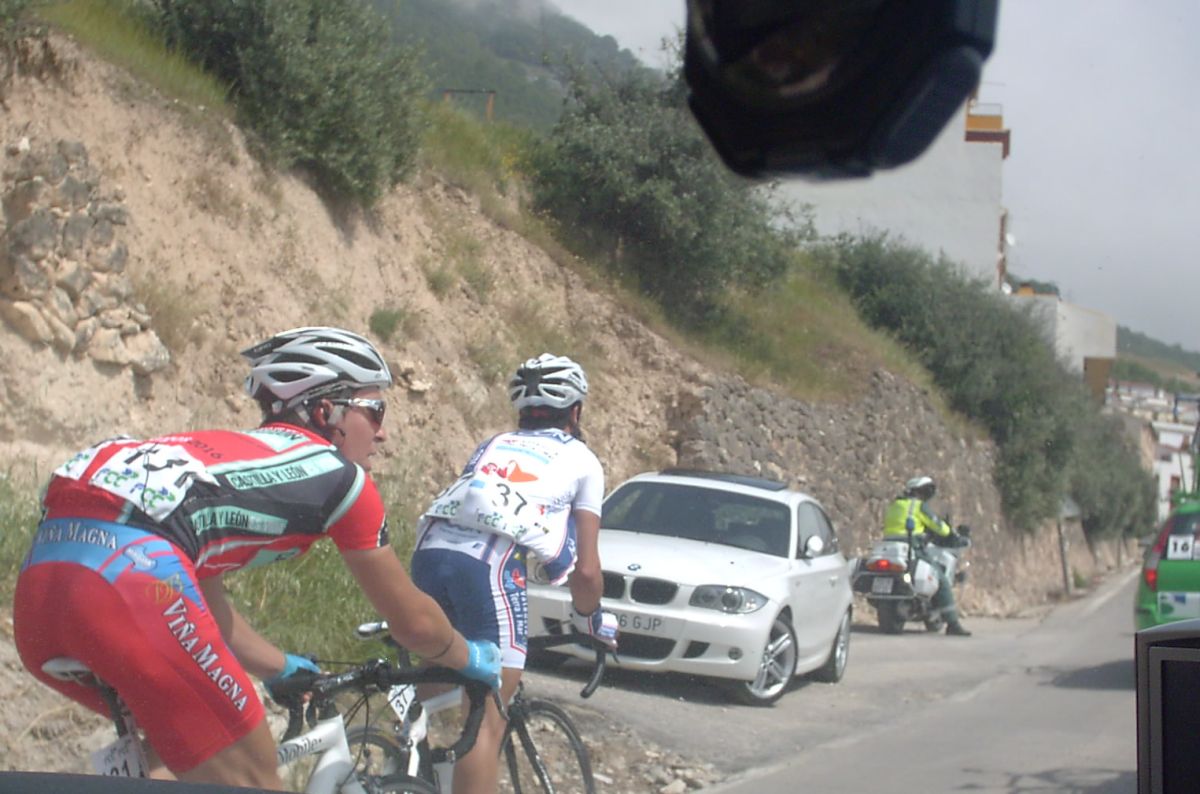 Clásica de Torredonjimeno desde el coche del Sanse donde iba Castaño, teníamos un día lluvioso en la clásica, aqui un Sanse persiguiendo entre coches.
