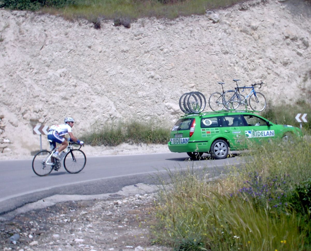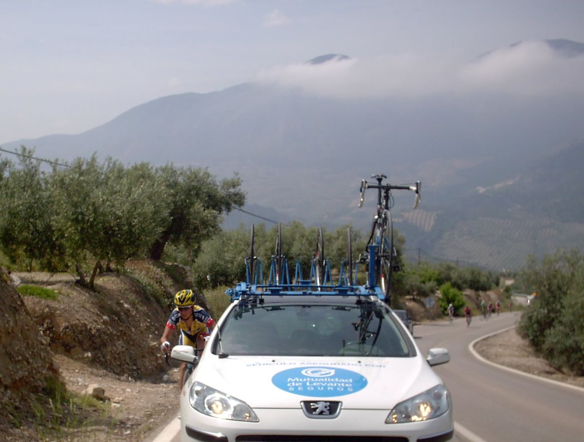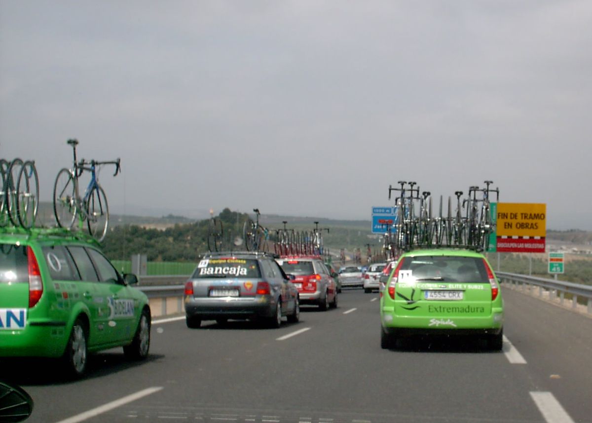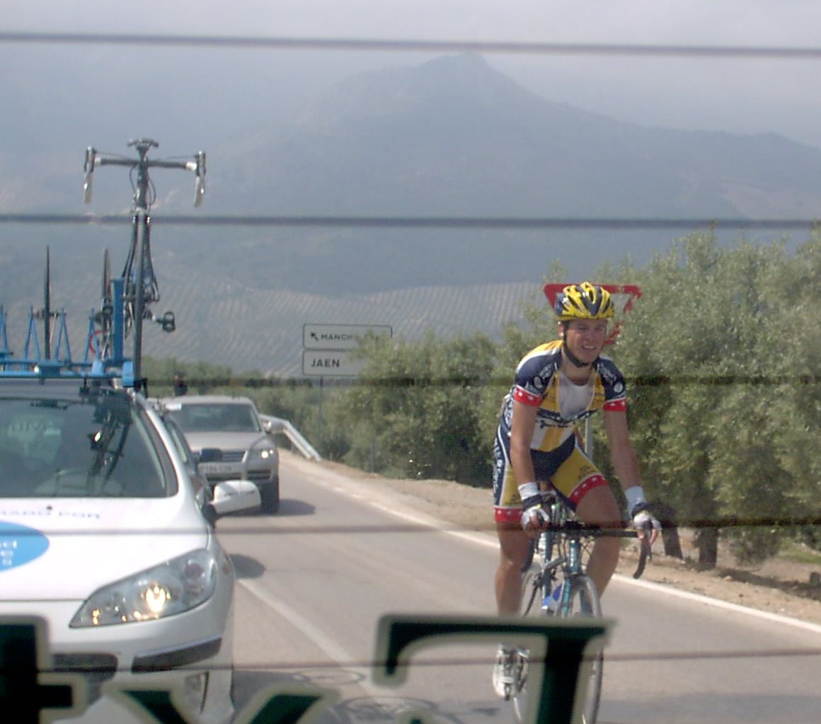 Clásica de Torredonjimeno desde el coche del Sanse donde iba Castaño, teníamos un día lluvioso en la clásica, aqui un Sanse persiguiendo entre coches.