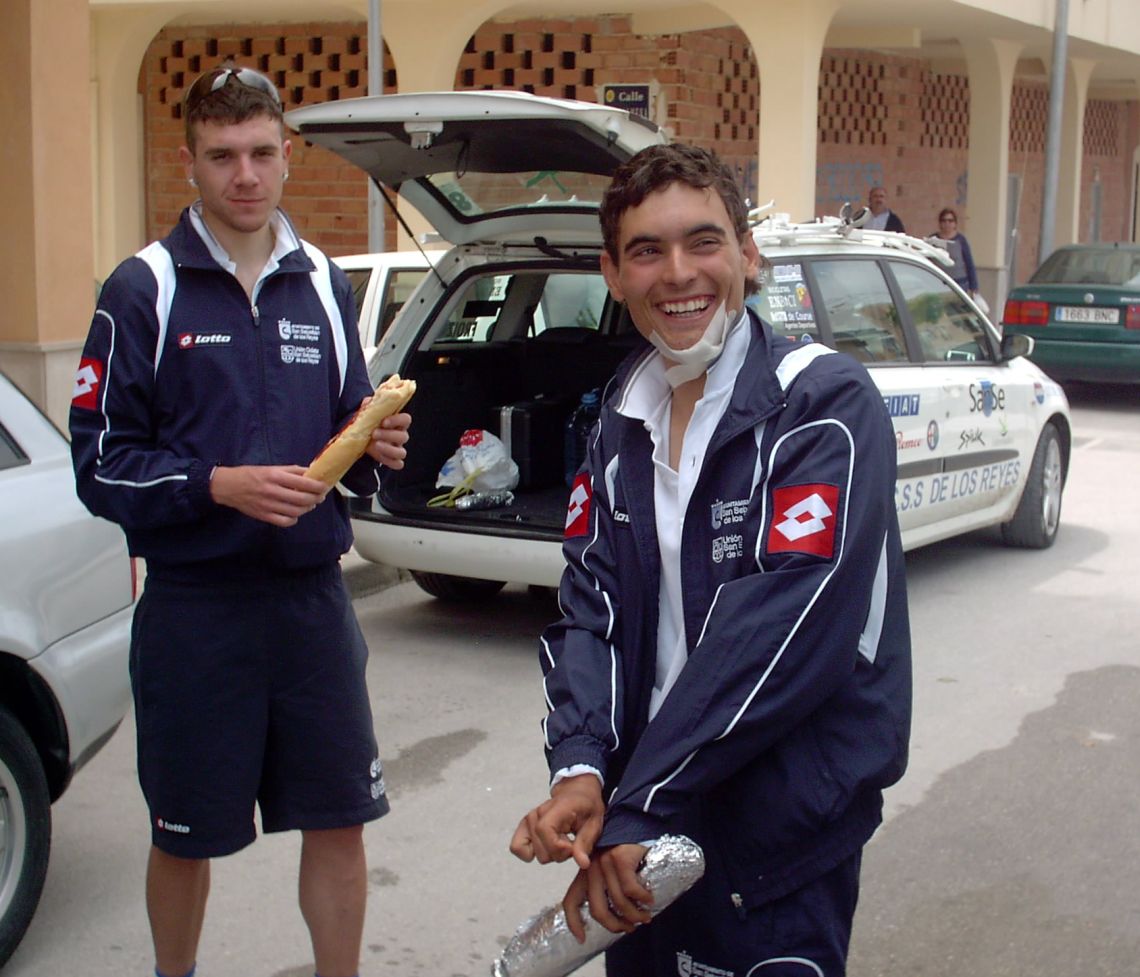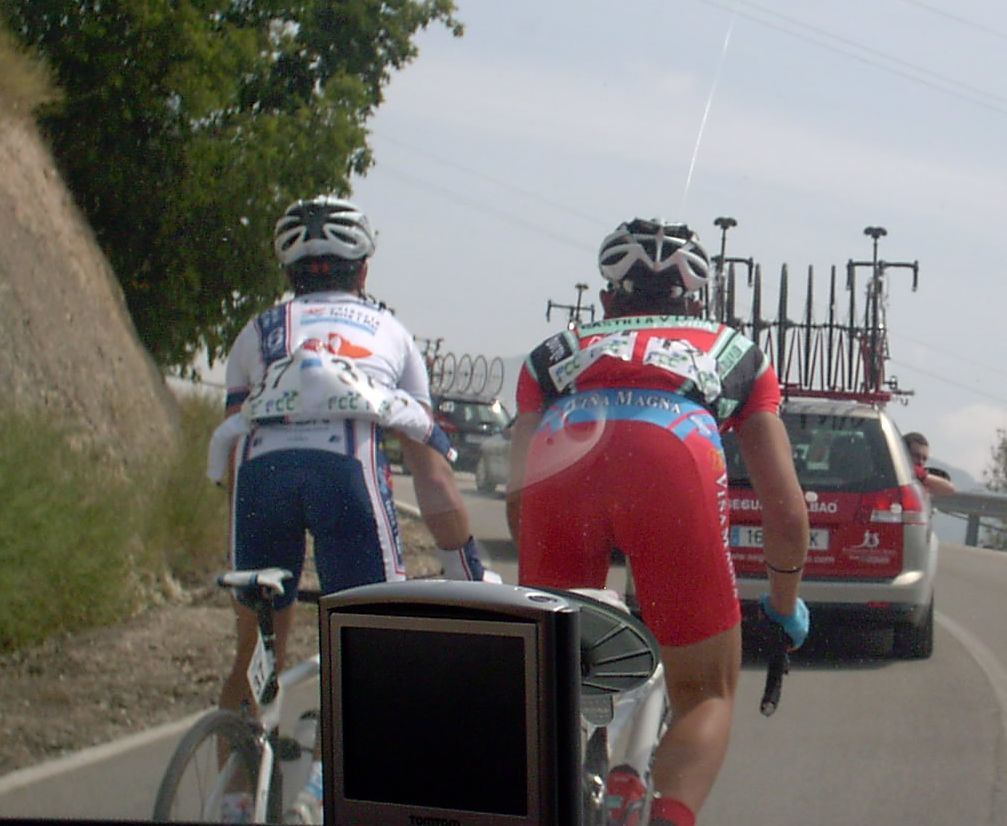 Aqui tenemos el alto de las 7 Pilillas, que destrozó el pelotón, en la imagen Paco Cordón, Jonathan Rodriguez, Javi Moreno de paseo andando..