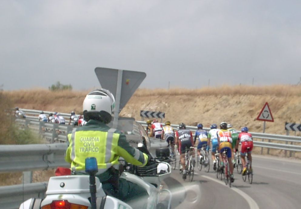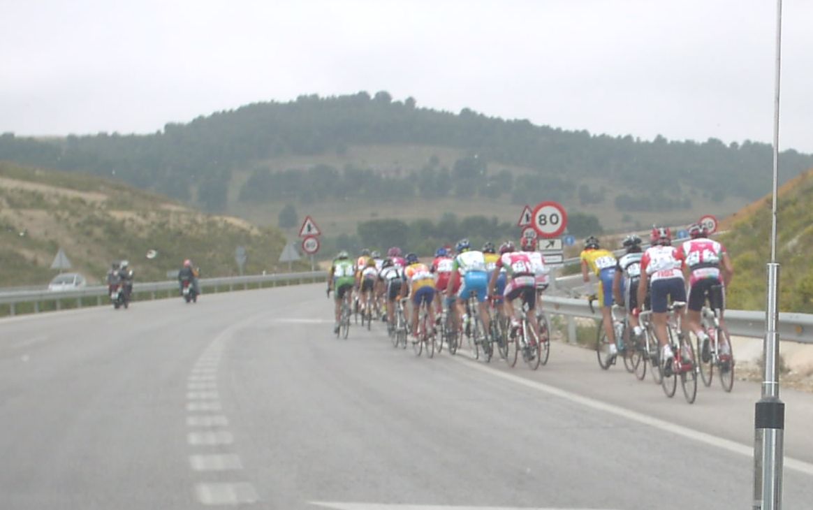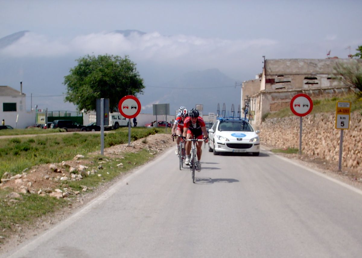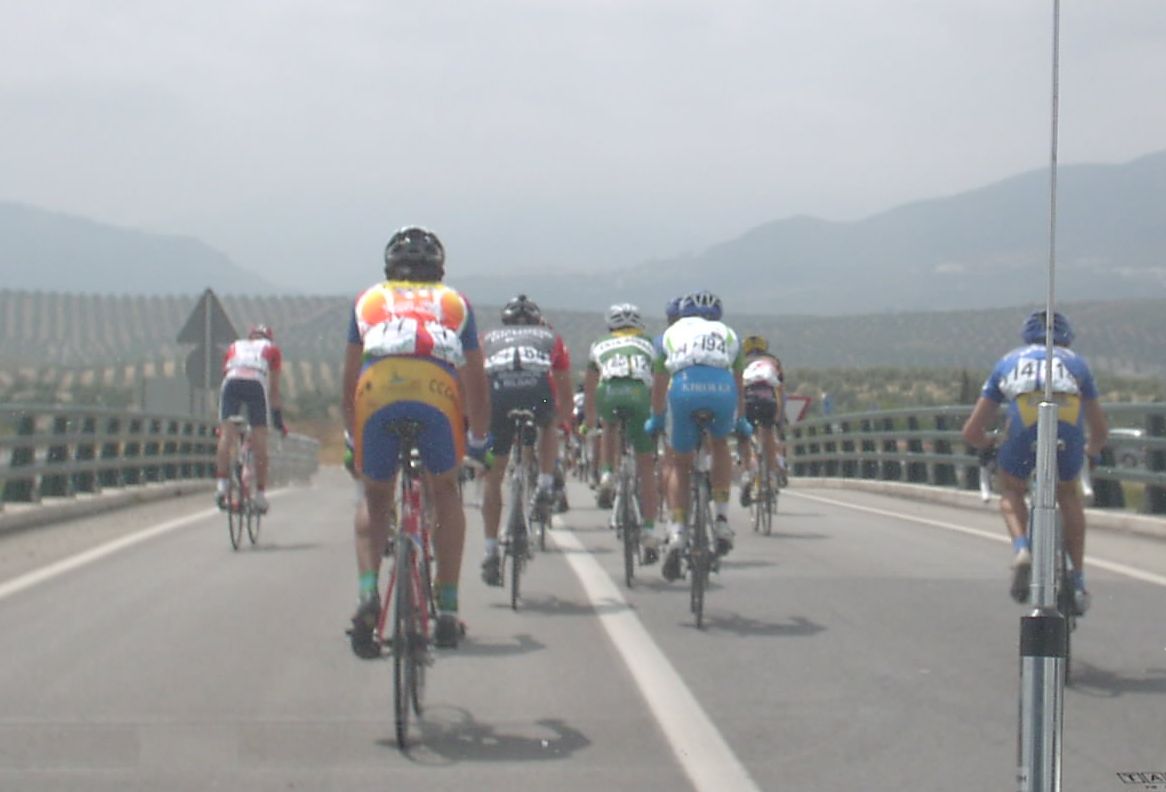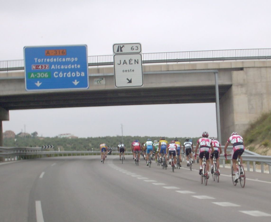 Ya en la autovía, camino de la variante de Jaén, la larguisima subida final, el grupo esta muy reducido.