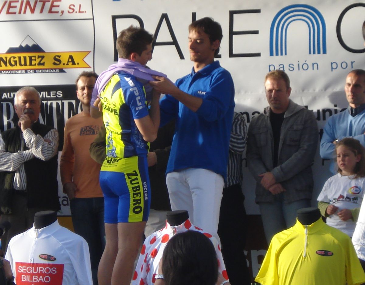 Saul Nieto poniendole el maillot de mejor palentino a Linares del Ibagaine.