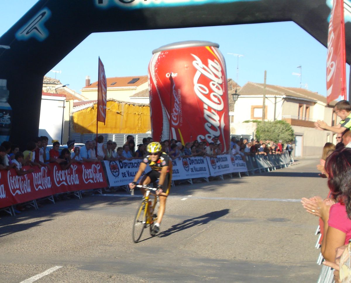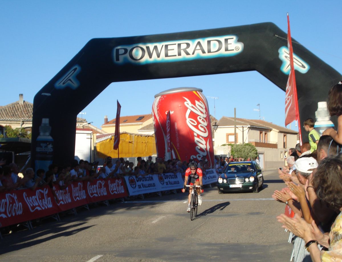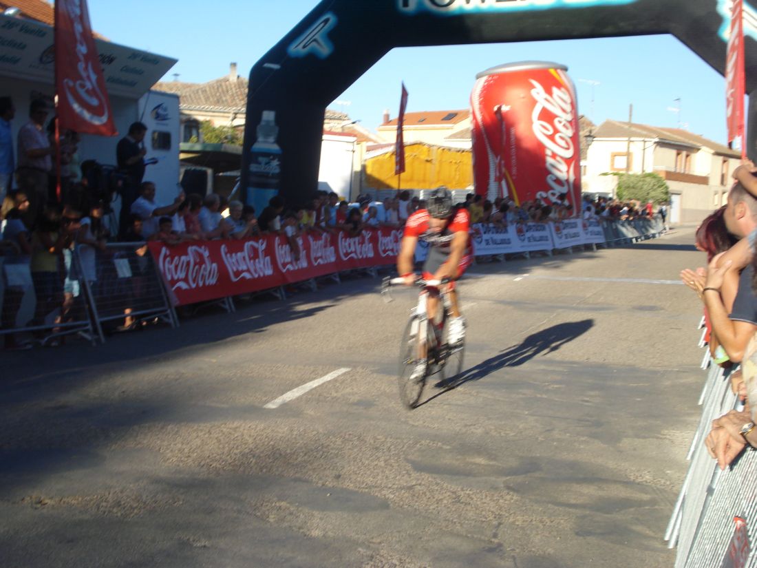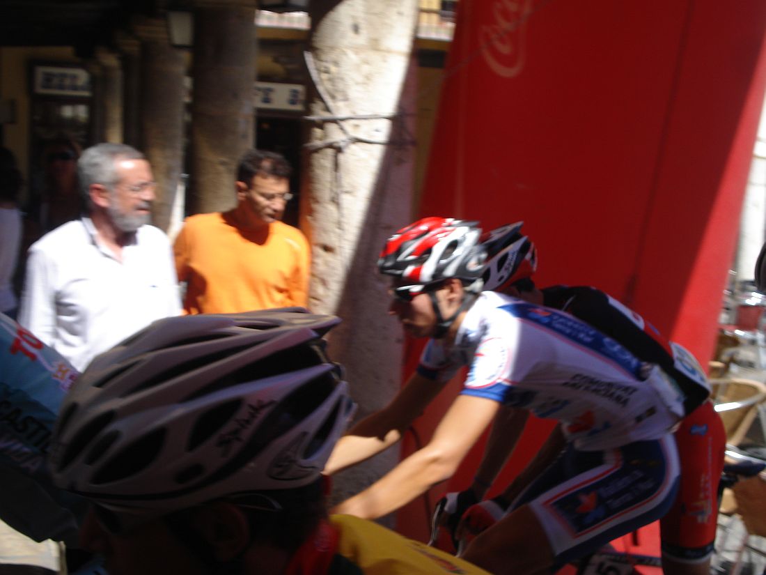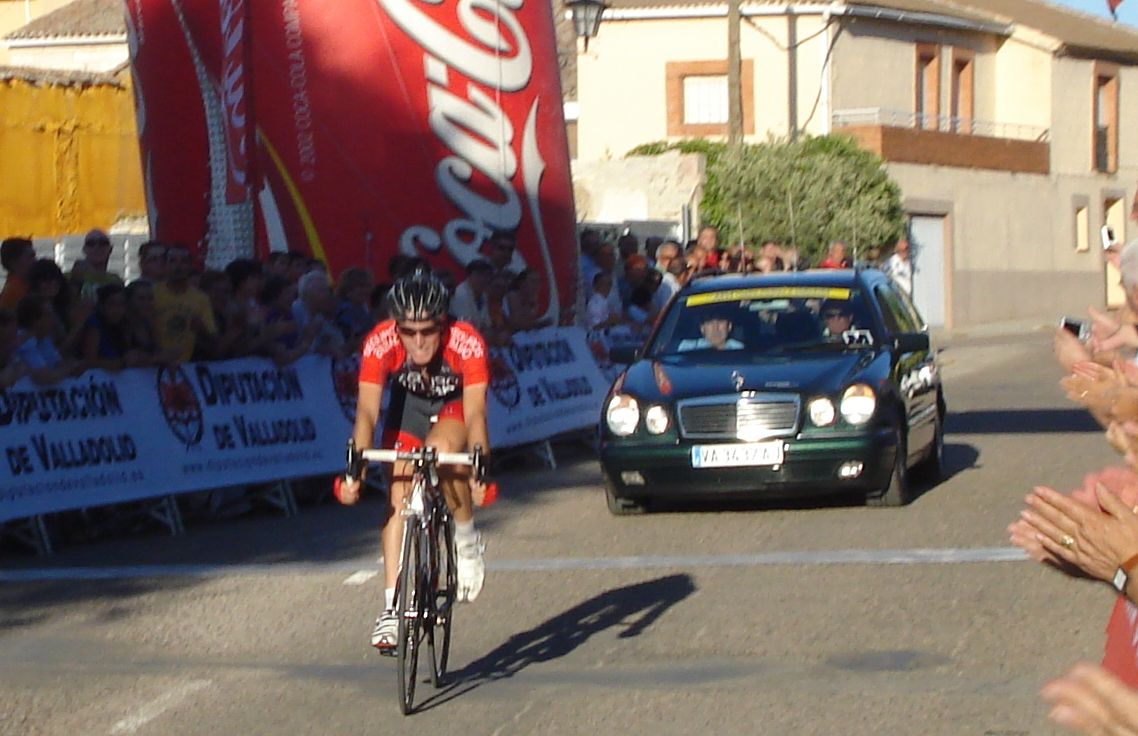 Llegada en Valoria la Buena, que no la mala, un hombre en solitario, Adrian Lopez del Seguros Bilbao.