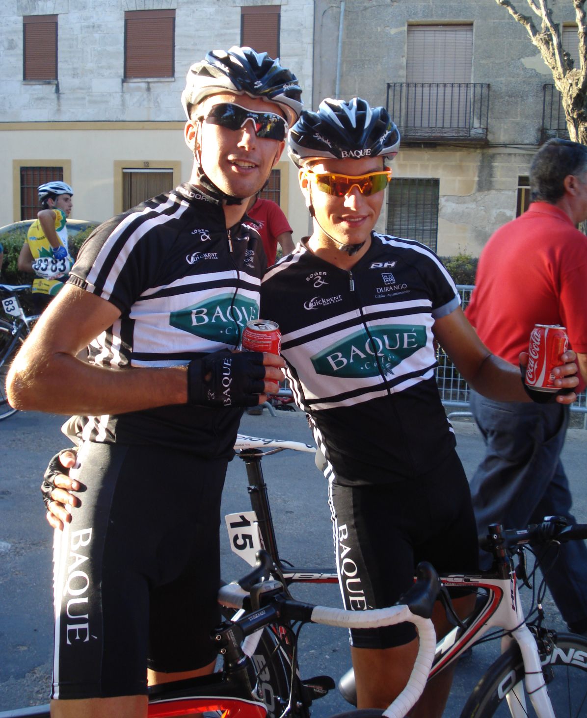 Jony y Andres recuperando en Valoria para la siguiente etapa, que ganaría el argentino Marco para el Ciudad de Oviedo.
