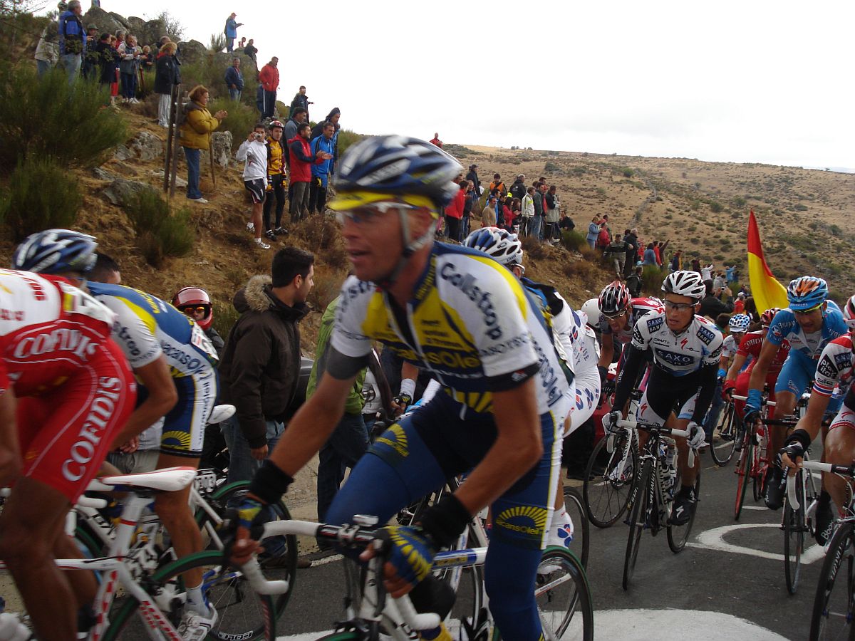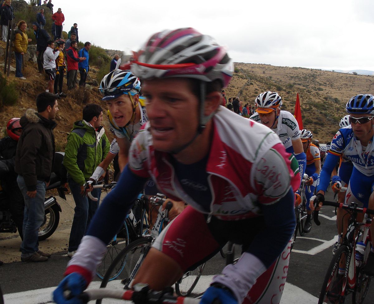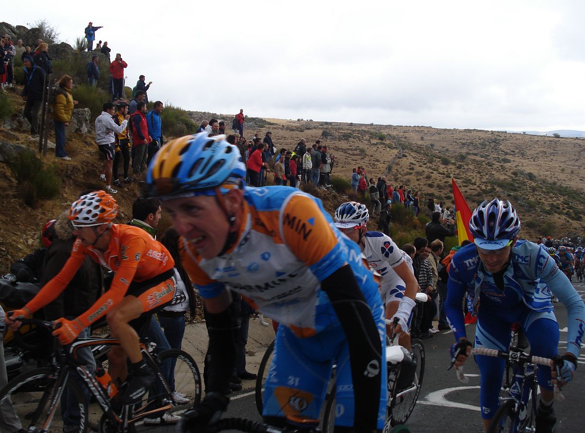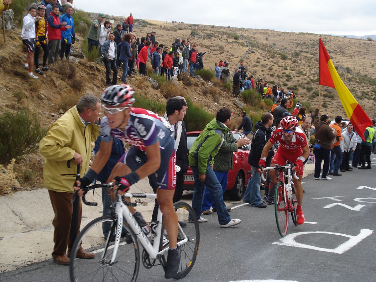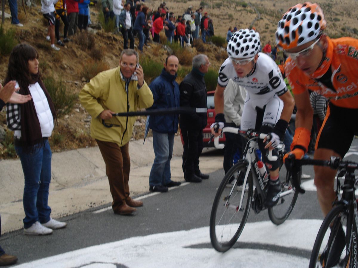 Calvente con su estilo carácteristico de subida y Jesús Hernandez sufriendo en el Mediano.