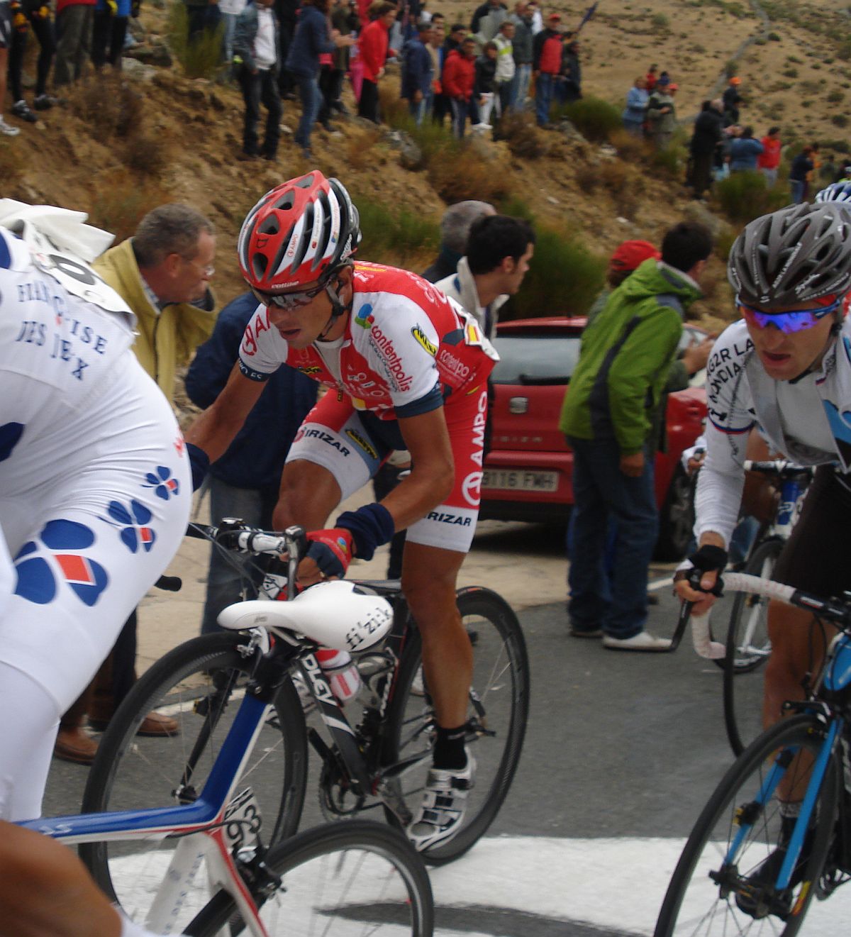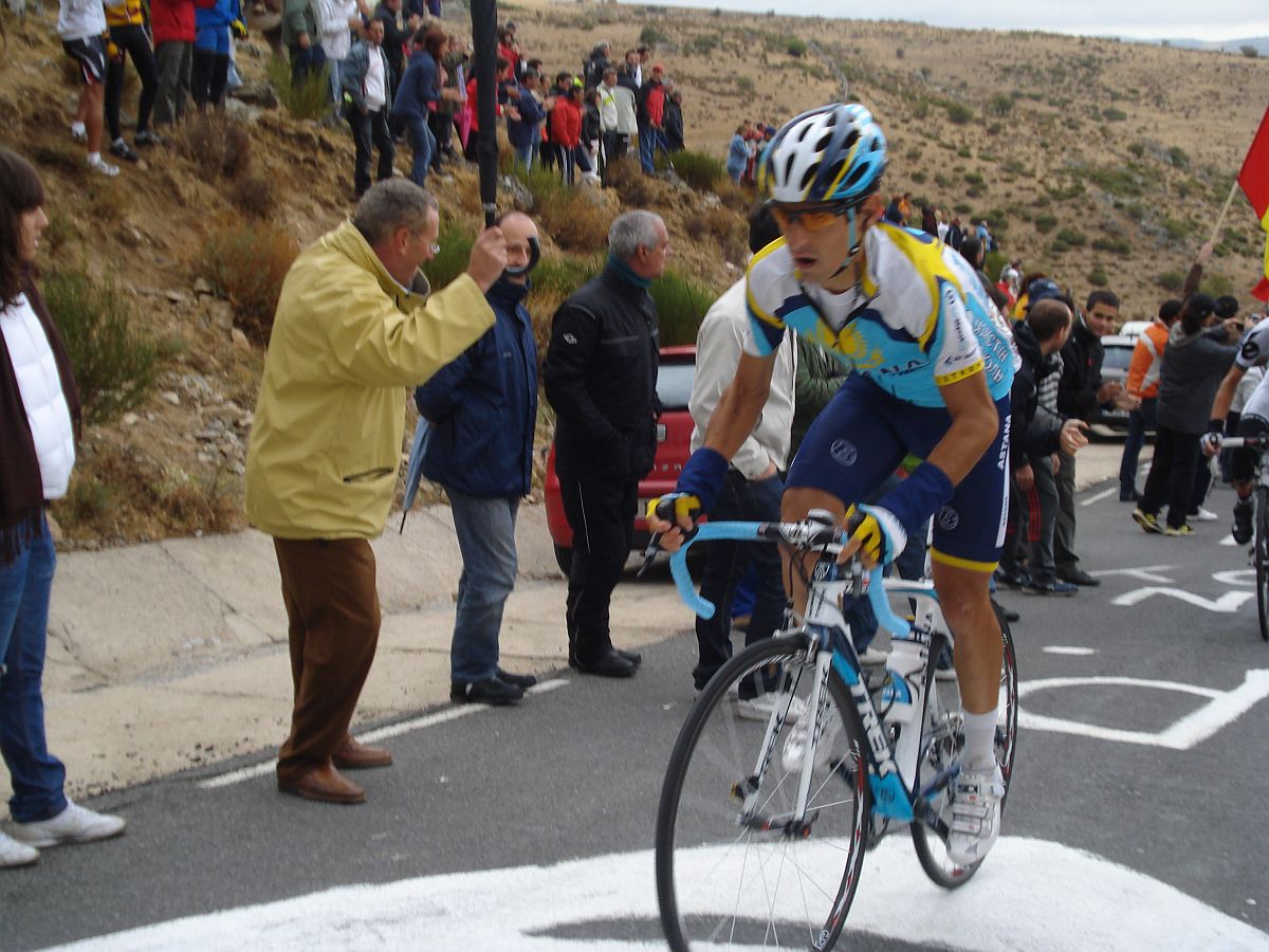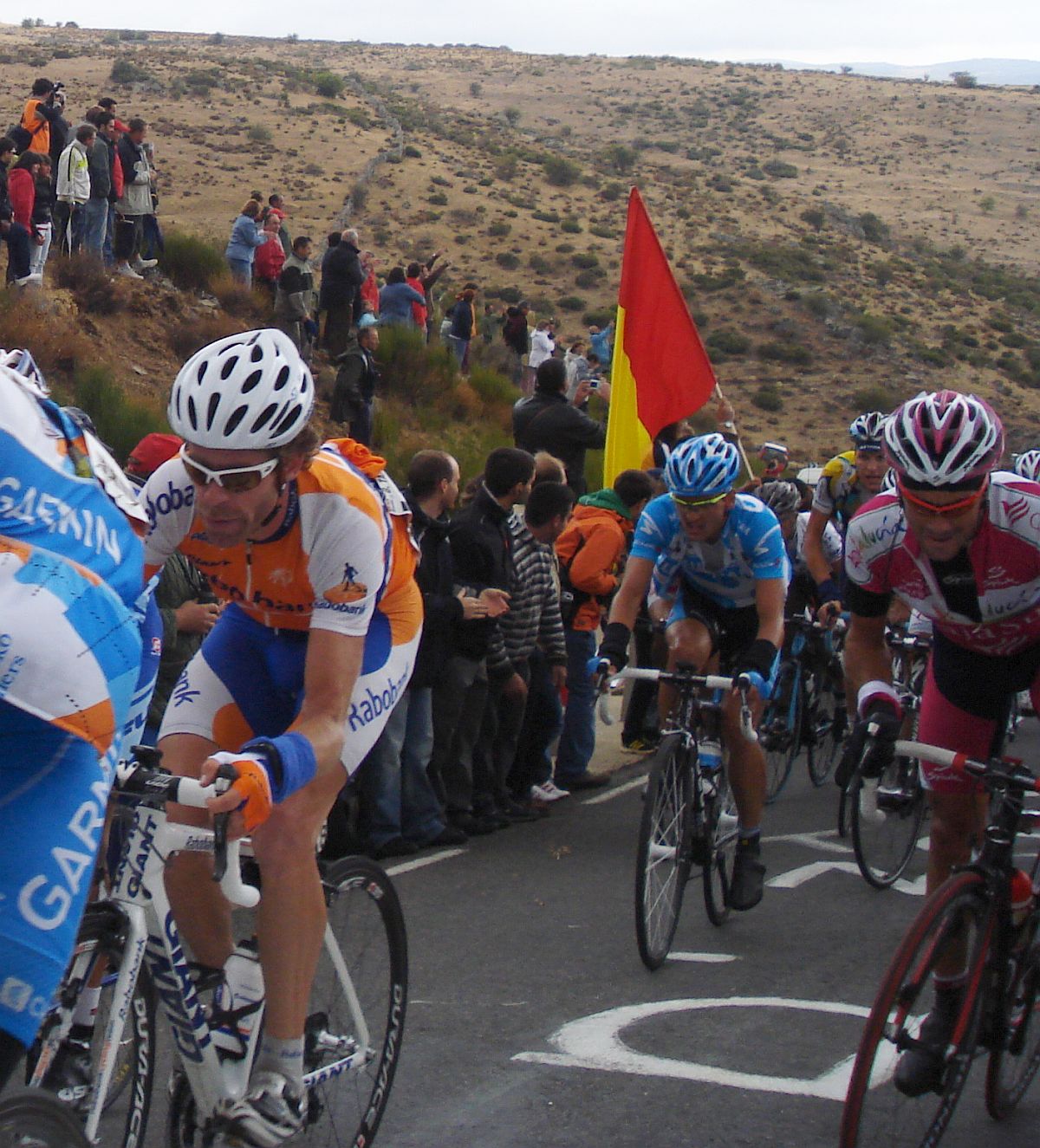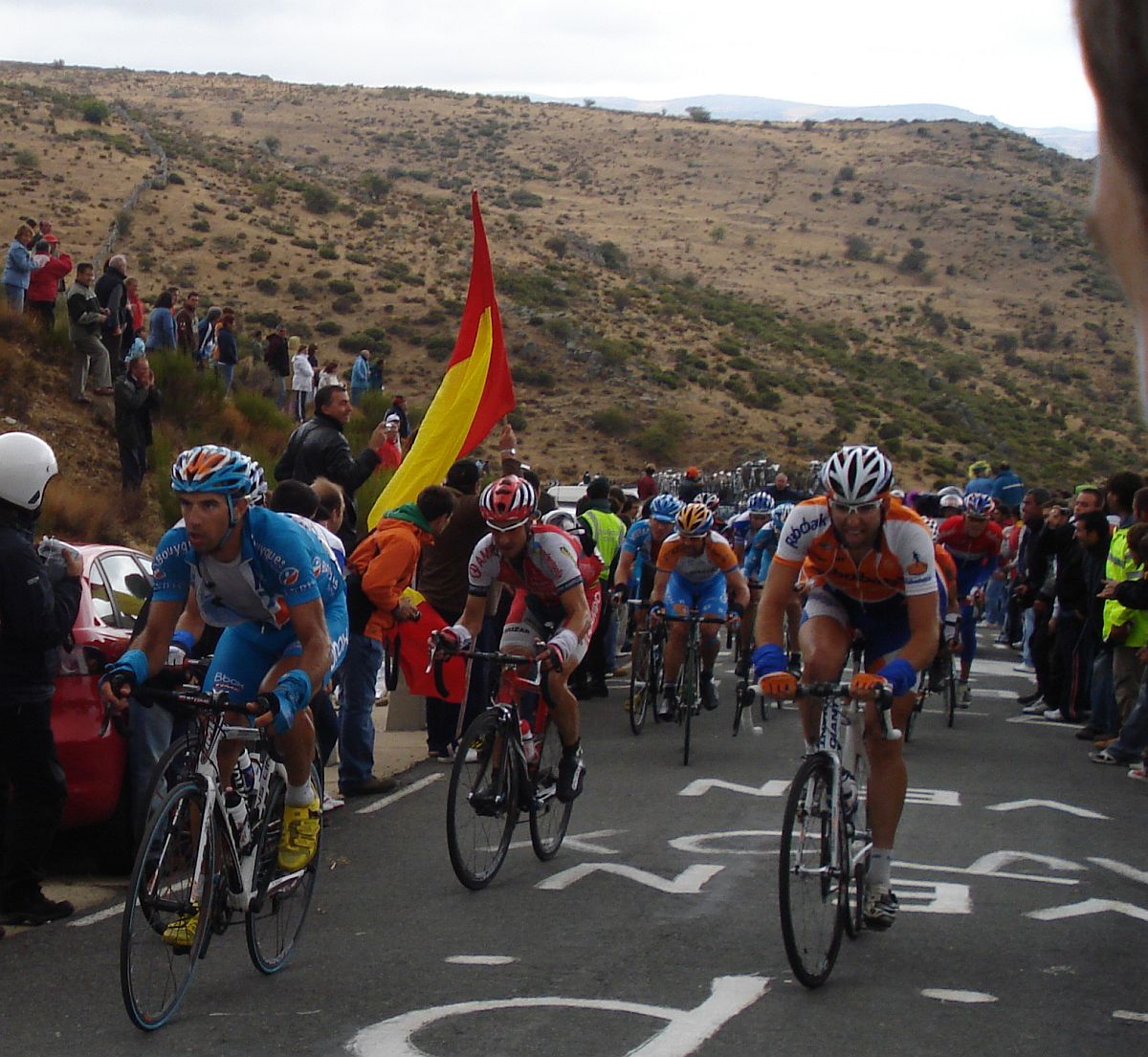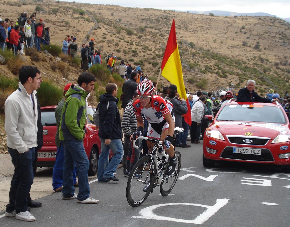 Calvente con su estilo carácteristico de subida y Jesús Hernandez sufriendo en el Mediano.