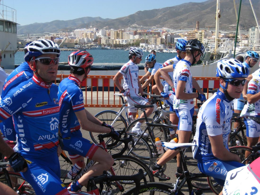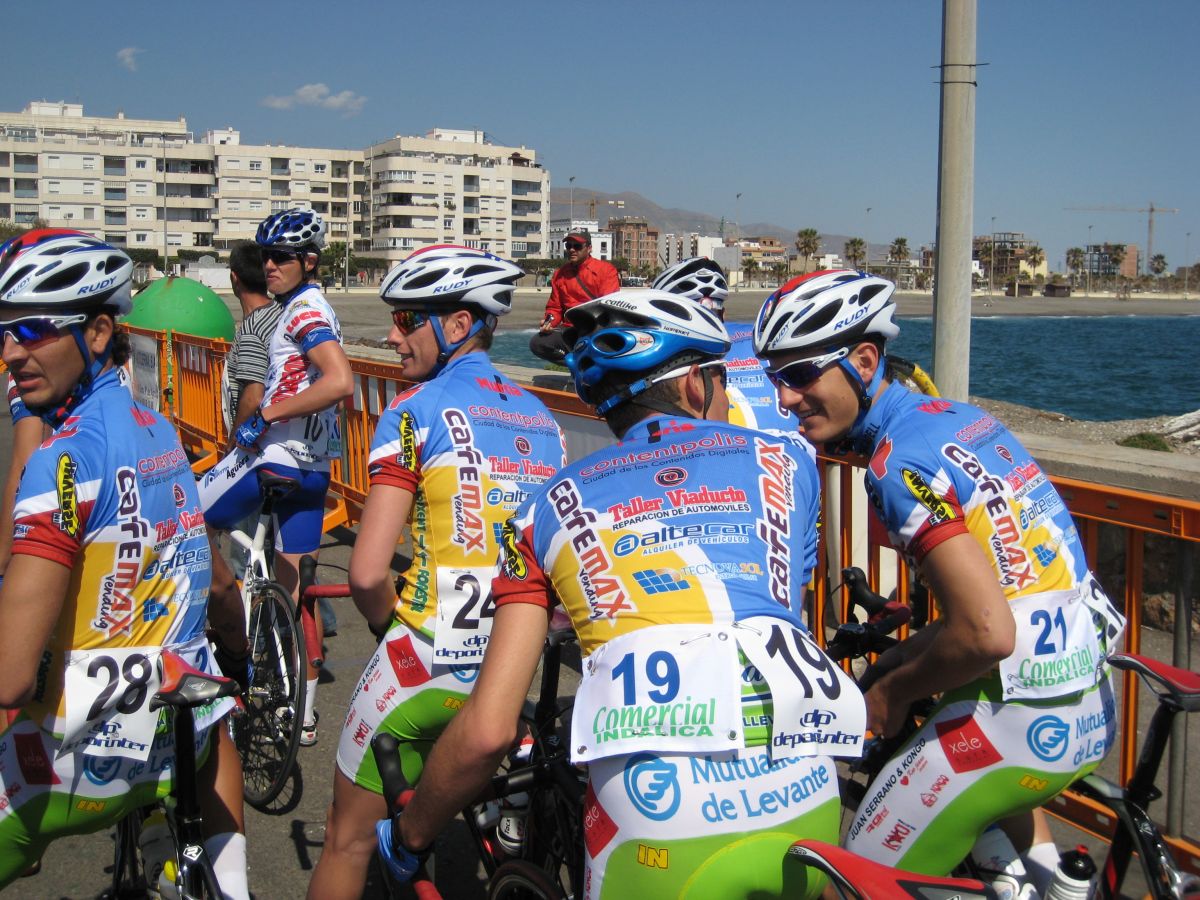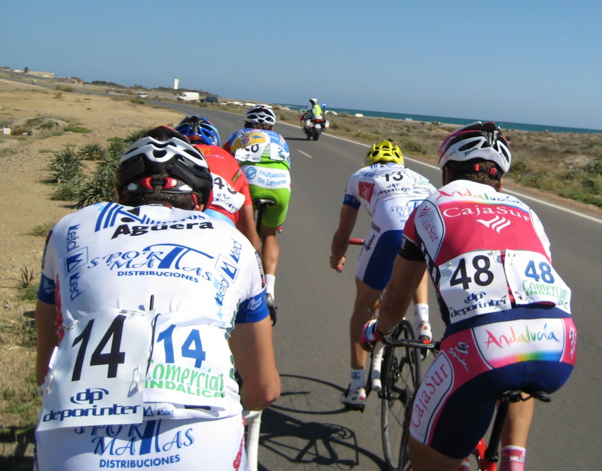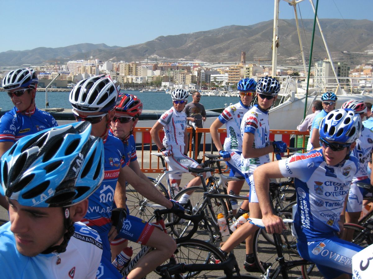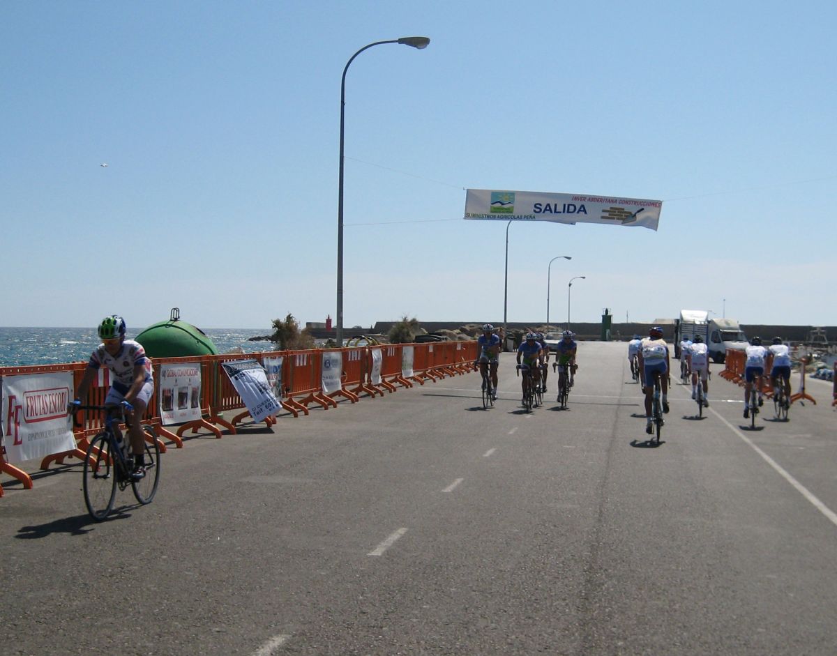 En El Ejido había muchas glorietas y pasos estrechos, allí arrancaron un Murcia y un Hierros y se fueron, ya que eran los equipos mas numerosos, era fácil que lograsen marchar, asi que la responsabilidad recayó sobre el Abeja. Ignacio me siguió diciendo que no pasara, que dejase tirar al Abeja que iba 10 puntos por encima y asi haciendo que tirara era la unica manera de intentar poder ganarle. El Abeja iba cerrando cuneta el solo, al principio hizo daño pero luego ya se iba bien, el Algarrobillo fue el único que se puso a ayudarle, luego ya llegó el Fran del Viña Magna, yo seguía a rueda, a rueda toda la carrera.
