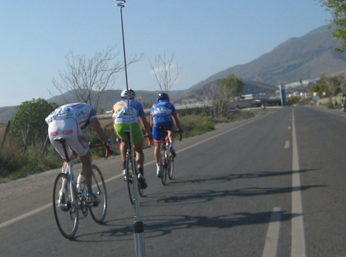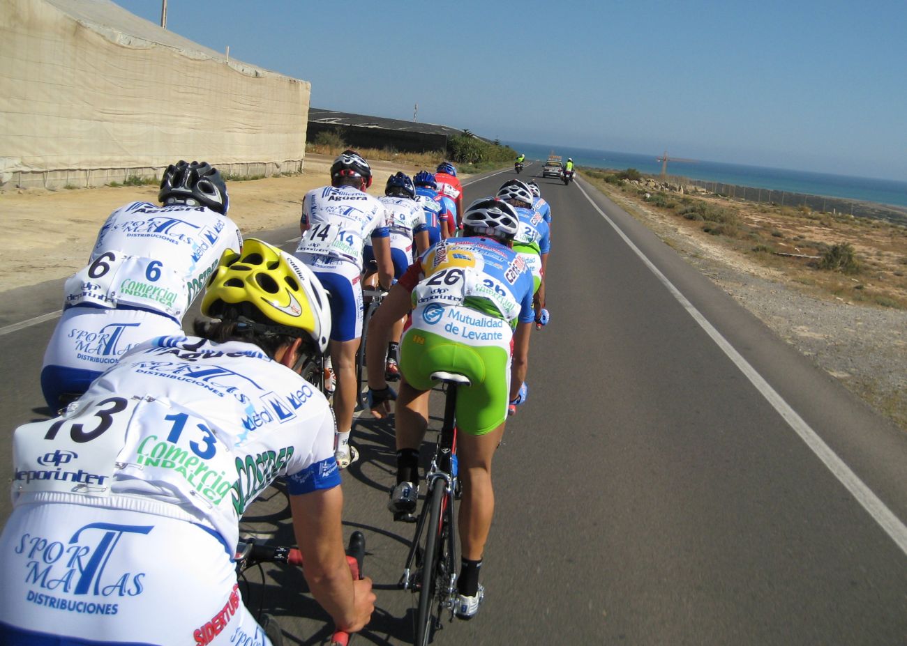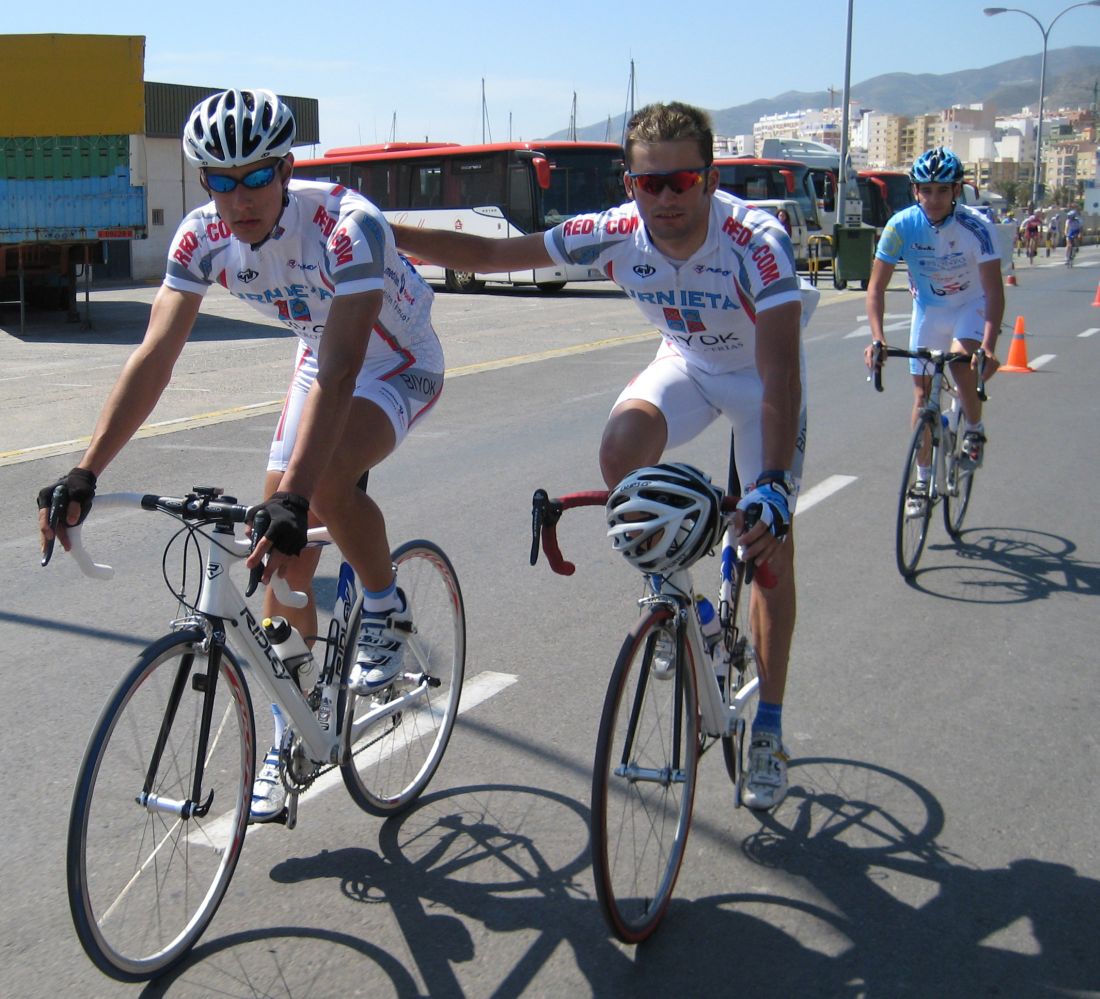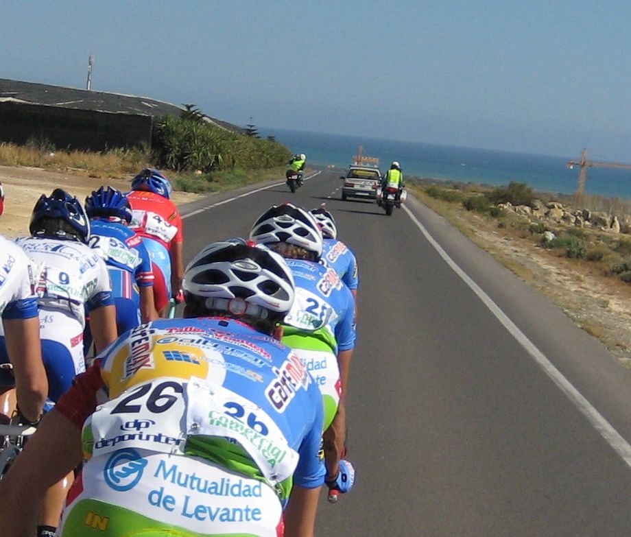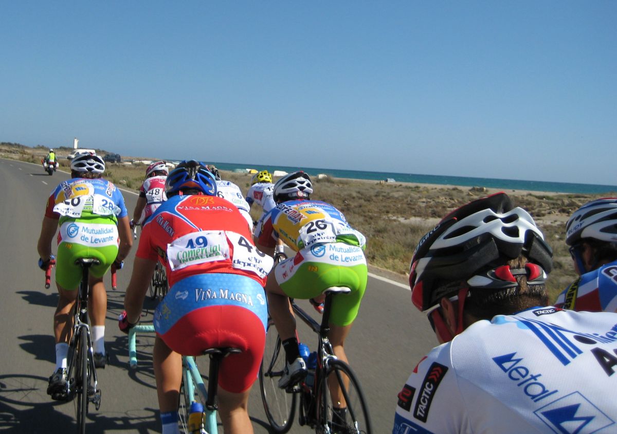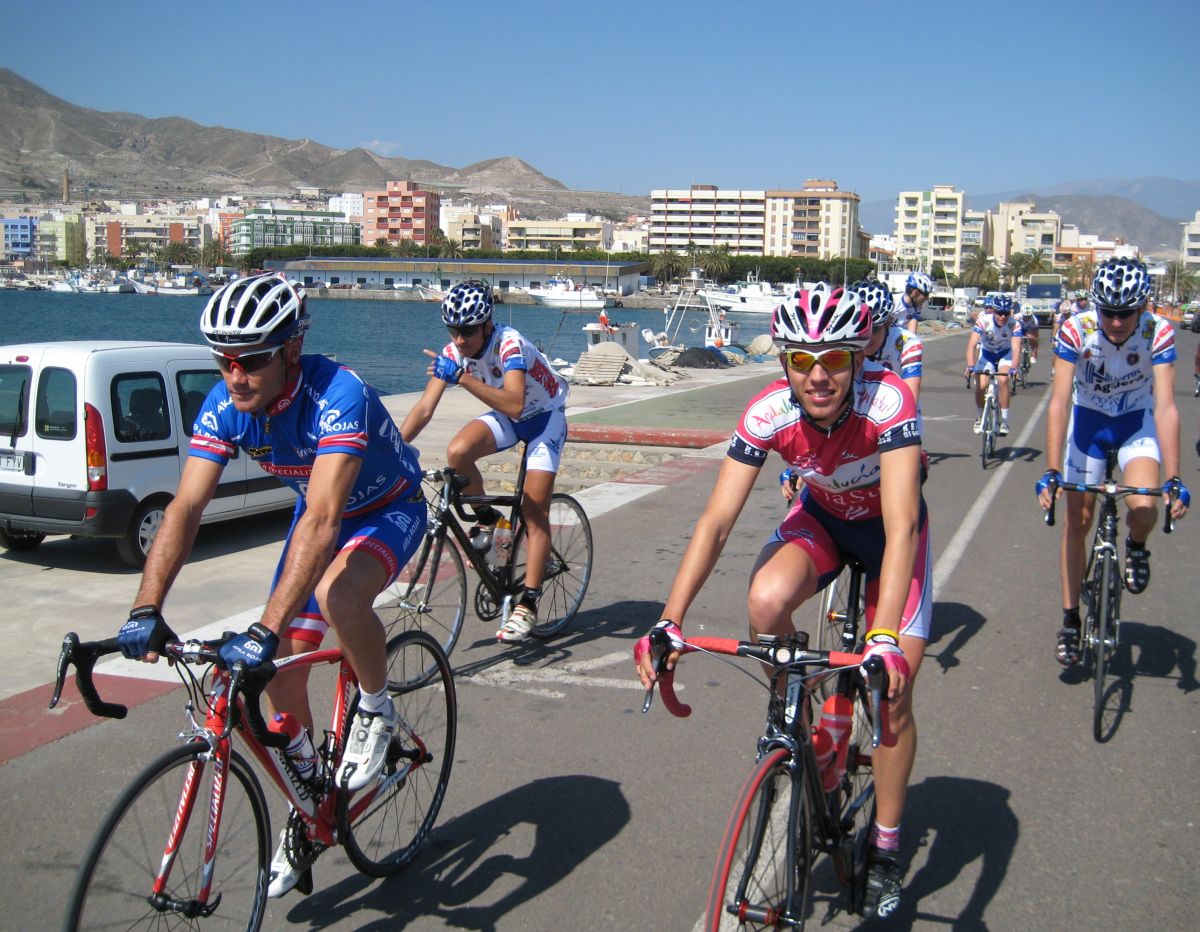 En El Ejido había muchas glorietas y pasos estrechos, allí arrancaron un Murcia y un Hierros y se fueron, ya que eran los equipos mas numerosos, era fácil que lograsen marchar, asi que la responsabilidad recayó sobre el Abeja. Ignacio me siguió diciendo que no pasara, que dejase tirar al Abeja que iba 10 puntos por encima y asi haciendo que tirara era la unica manera de intentar poder ganarle. El Abeja iba cerrando cuneta el solo, al principio hizo daño pero luego ya se iba bien, el Algarrobillo fue el único que se puso a ayudarle, luego ya llegó el Fran del Viña Magna, yo seguía a rueda, a rueda toda la carrera.