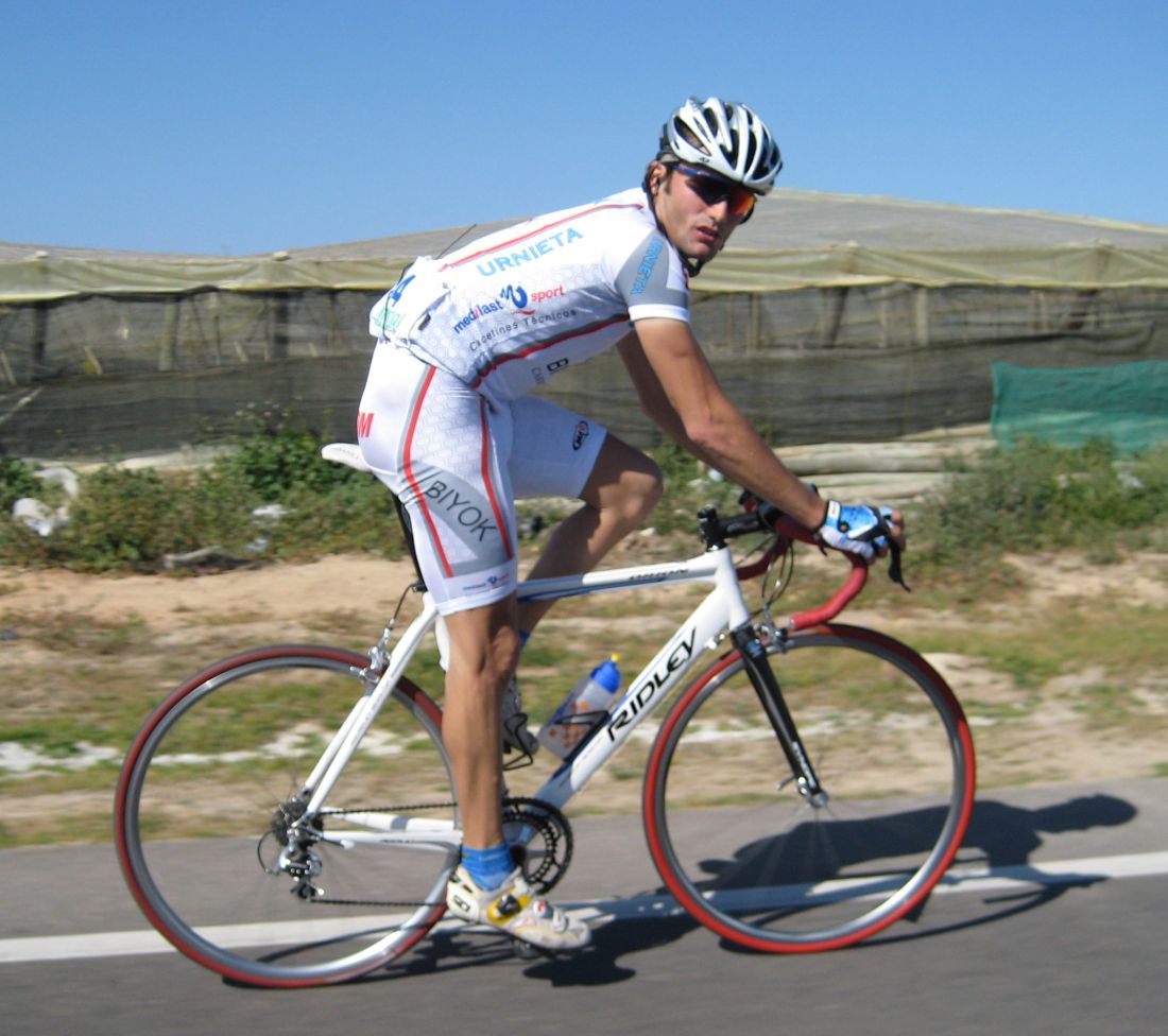 Supersticiones aparte, al final le cogí el tranquillo a la bici de repuesto y pude llegar a Meta octavo, bastante público por las calles de Adra, es una bonita llegada, con final en alto, yo pasé la meta y me bajé rápido de la bici, que me dolían todos los musculos de ir mal, que ganas de llegar. El Abeja llegó solo por delante consiguiendo su cuarta victoria de la temporada, esta el solo frente a equipos armados, un tío que ademas de correr trabaja descargando camiones, pero que espera volver a profesionales el año que viene. Detrás llegaba el grupo donde iba yo antes de romper la cadena, luego entraba yo solo, un minuto detrás tres y el pelotón esprintando.