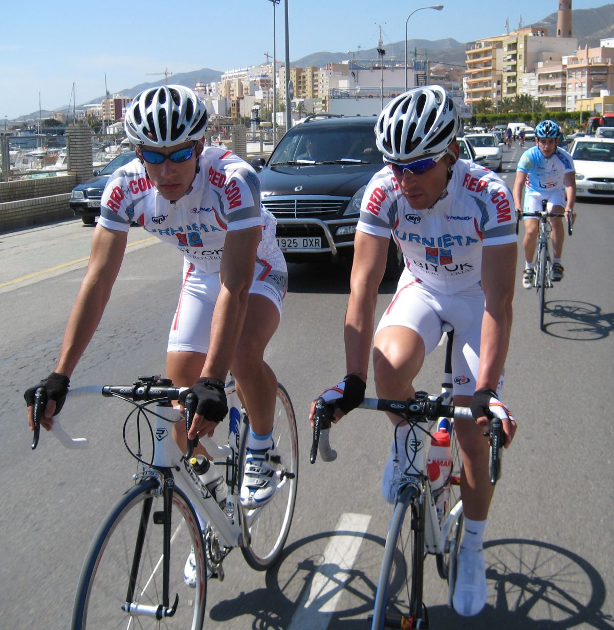 Esto me recordó a la carrera de Betanzos 05, que el director también me mando en un corte estar a rueda, en este caso de Redondo del Liberty, no le di ni un relevo, 100 kms a rueda y luego cuando le arranque en un puerto a 10 de meta que yo iba todo fresco también se me jodio la bici y tuve que retirarme, el castigo por ir a rueda, siempre me pasa, mala suerte para mi y buena para los demás, también la maldición de Adra, siempre acabó esta carrera con otra bici que no sea la mía, el año pasado fue cuando voló del coche la mía y acabé corriendo con la de Roldán.