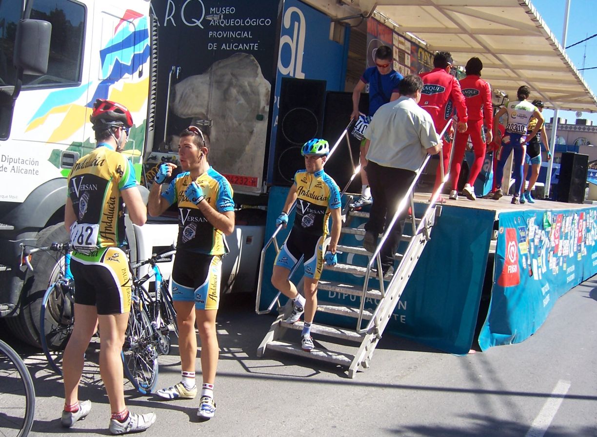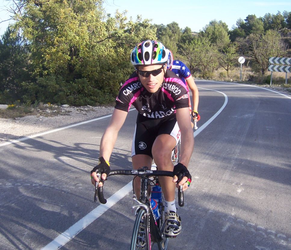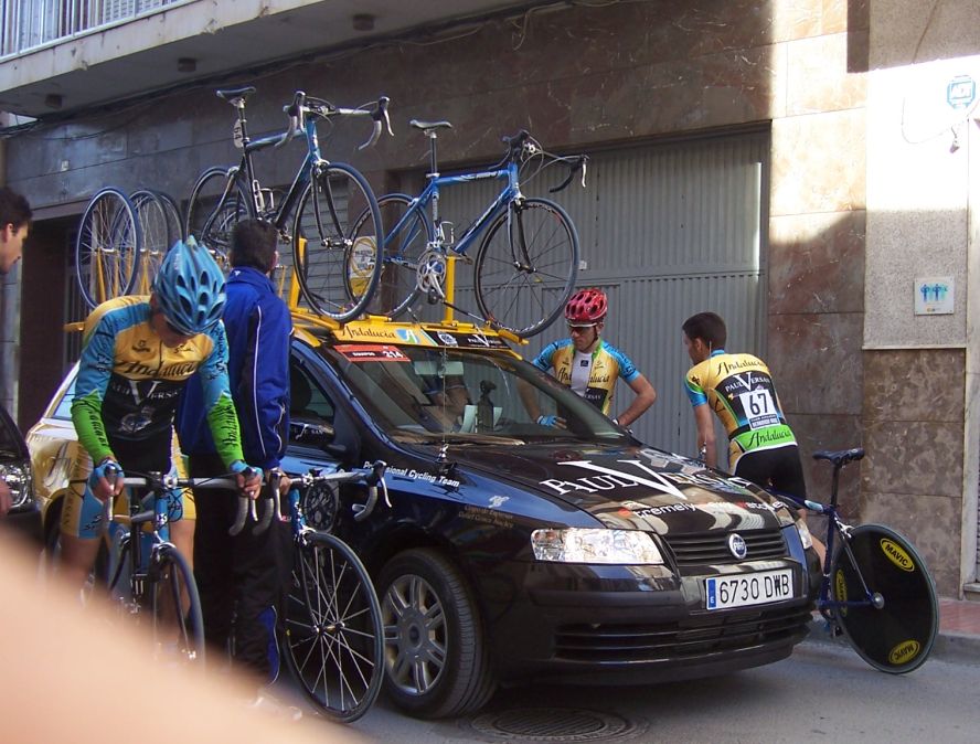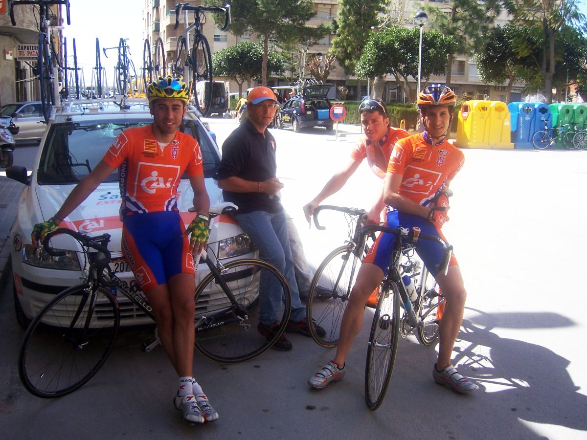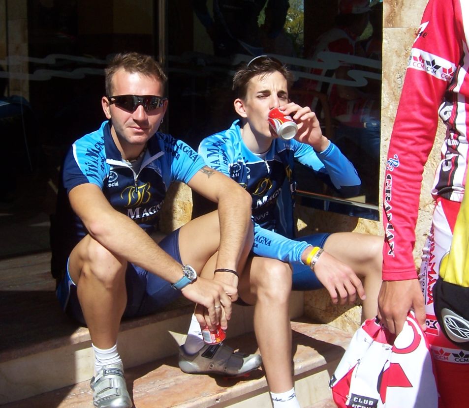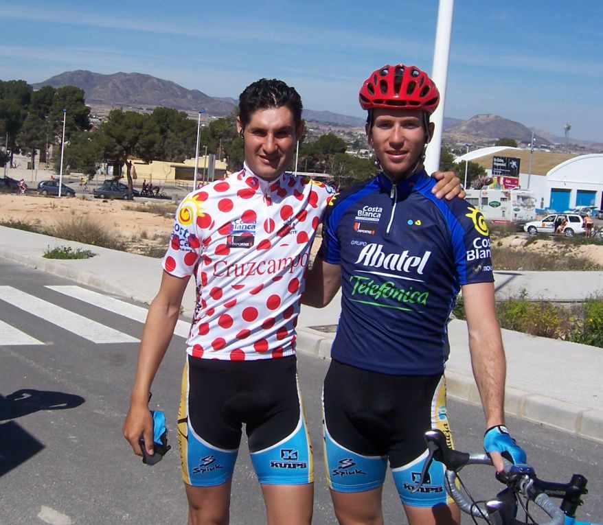 Bajamos Carrasqueta y llegamos a la via de servicio dirección a Ibi, alli arranqué yo muchas veces hasta que me metí en un corte donde vino también el Curro y empezamos a abrir hueco, pasamos Ibi, llegamos a Castalla y alli esprinté para ganar el Sprint Especial, segundo Ballesta y tercero Pedro Gutierrez del CCM. Hicimos una subida y giramos para volver a Ibi, subiendo las revueltas por detrás, en la subida aparecen de repente unos Murcia Turistica con otros pocos mas, que sorpresa, la gente al ver a 4 Murcias Turisticas empezo a decir -Que habeis hecho?? -Como habeis averiguado??-Habeis tirado a todo el peloton?? - Que habeis metido palos en los radios?? Ibamos 20 o asi, los Murcia tiraban a una ostia.. coronando revueltas arranco el Curro, otro detras y yo tercero, bajando revueltas ataco el Curro para asegurarse la intervuelta de Ibi, un Murcia segundo y yo tercero.