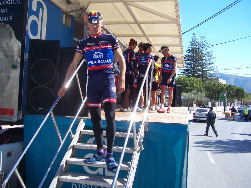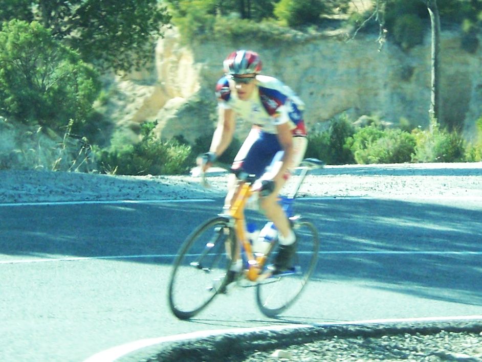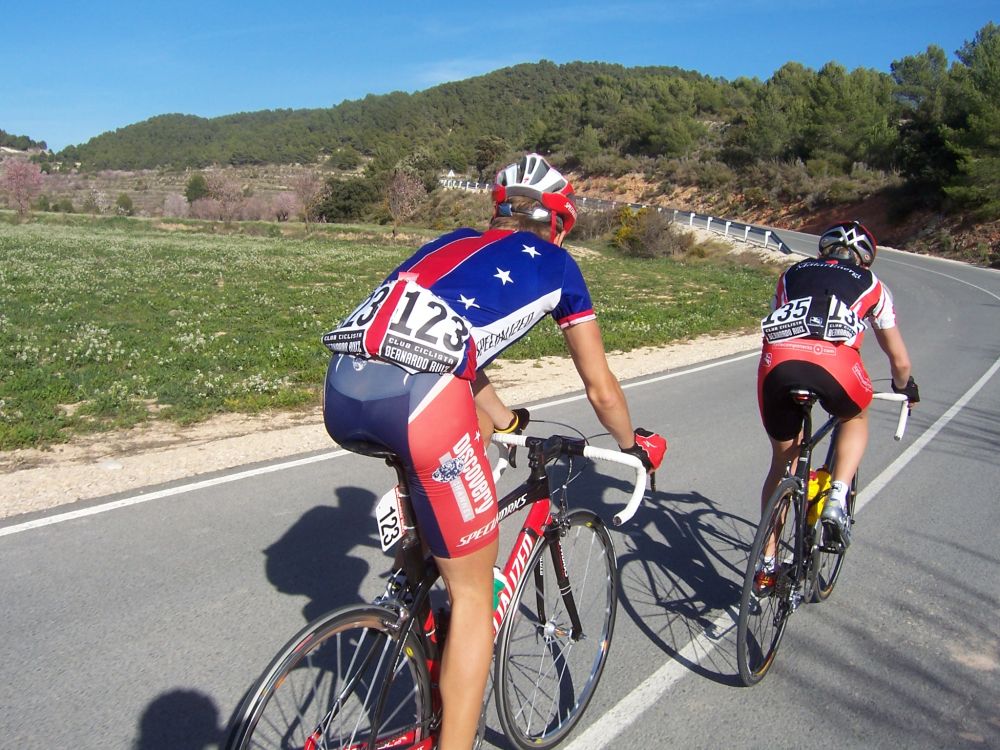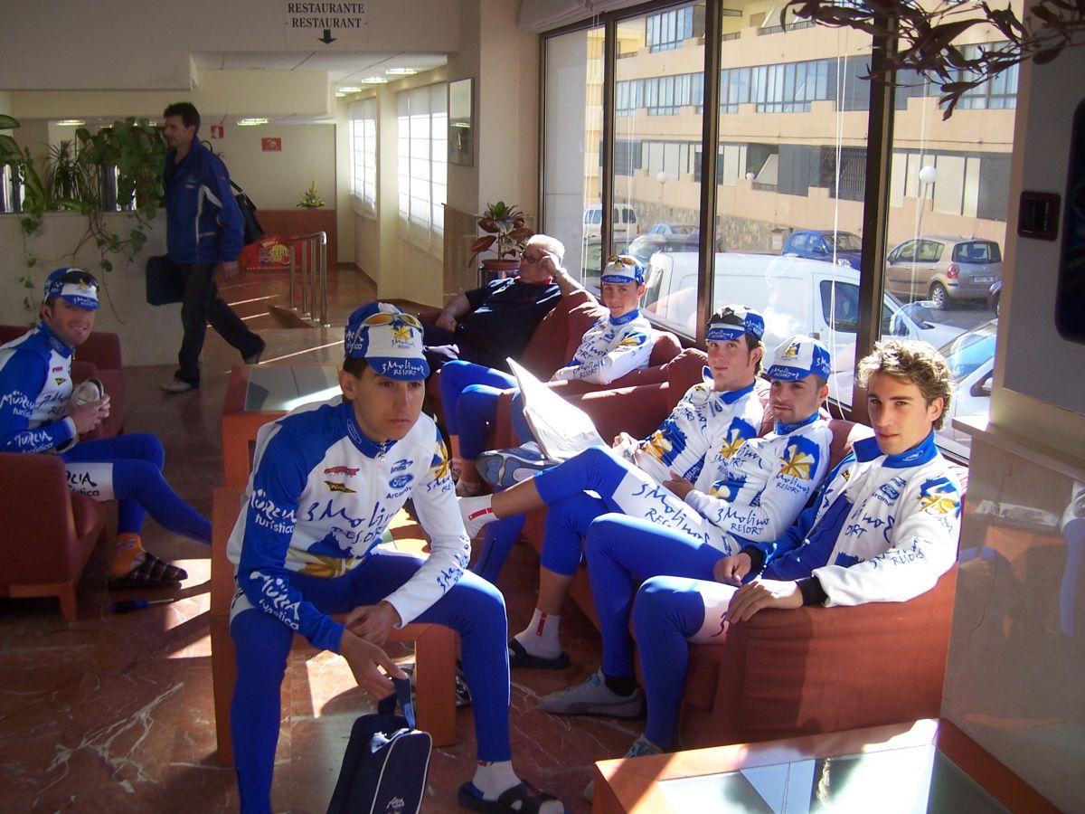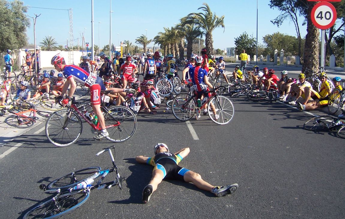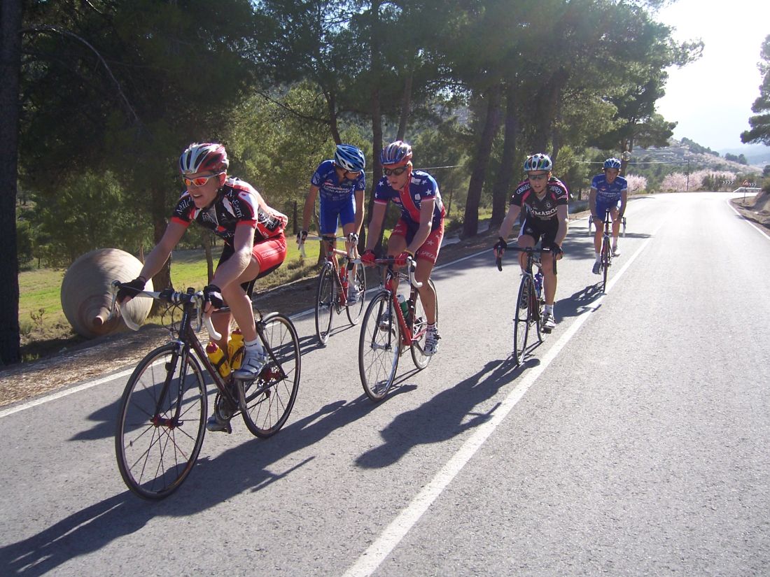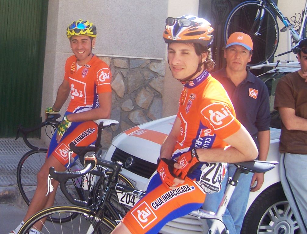 Bajamos Carrasqueta y llegamos a la via de servicio dirección a Ibi, alli arranqué yo muchas veces hasta que me metí en un corte donde vino también el Curro y empezamos a abrir hueco, pasamos Ibi, llegamos a Castalla y alli esprinté para ganar el Sprint Especial, segundo Ballesta y tercero Pedro Gutierrez del CCM. Hicimos una subida y giramos para volver a Ibi, subiendo las revueltas por detrás, en la subida aparecen de repente unos Murcia Turistica con otros pocos mas, que sorpresa, la gente al ver a 4 Murcias Turisticas empezo a decir -Que habeis hecho?? -Como habeis averiguado??-Habeis tirado a todo el peloton?? - Que habeis metido palos en los radios?? Ibamos 20 o asi, los Murcia tiraban a una ostia.. coronando revueltas arranco el Curro, otro detras y yo tercero, bajando revueltas ataco el Curro para asegurarse la intervuelta de Ibi, un Murcia segundo y yo tercero.
