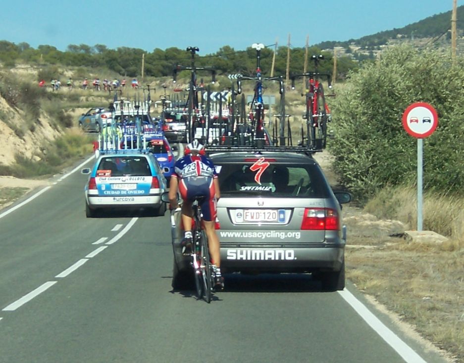 A 7 kms de meta encunetaron seriamente y yo que vi que a rueda se iba muy mal me fui a cola de los coches que ahi se iba fumando, ademas pasaban a los que se quedaban, yo me pegaba un sprint y me iba otra vez al peloton... me volvia a los coches... al pelotón.. no tenia ganas de ir encunetado.. estando los coches ahi para que..