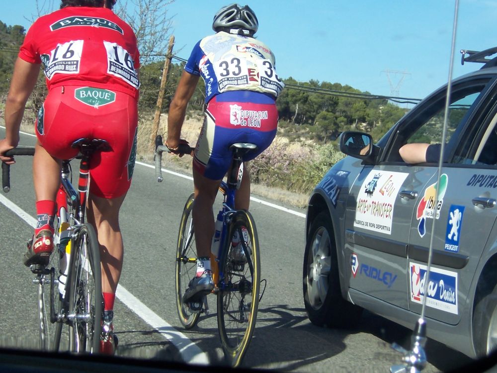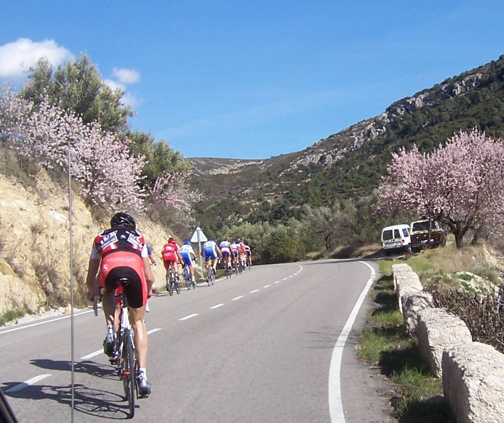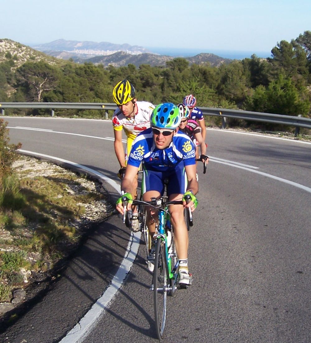 Ibamos unos 10, entre ellos iban Antonio Oliver, Lucas Haedo, Jandrin del Baque, Manolo de Soctec, Guti del Roper, Beldita y yo, entre otros, cogimos minuto y medio, ibamos a conseguir el objetivo de llegar al Xorret del Cati por delante y no comernos el latigo del pelotón, aunque sinceramente no se que era peor.