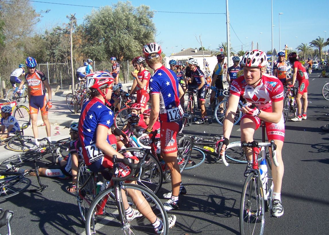 Cogimos la autovia de Aspe a Elche cuesta abajo y por alli a 70 por hora, menudos relevos daba el Motriles, era su terreno ahi con el 11.. pasamos por Elche con 40 segundos de ventaja, pero iba la escapada por delante aunque les teniamos cerca, pero Kelme abrió gas por detras metiendo cuneta y nos acabaron pillando despues de unos 20 kms de fuga.