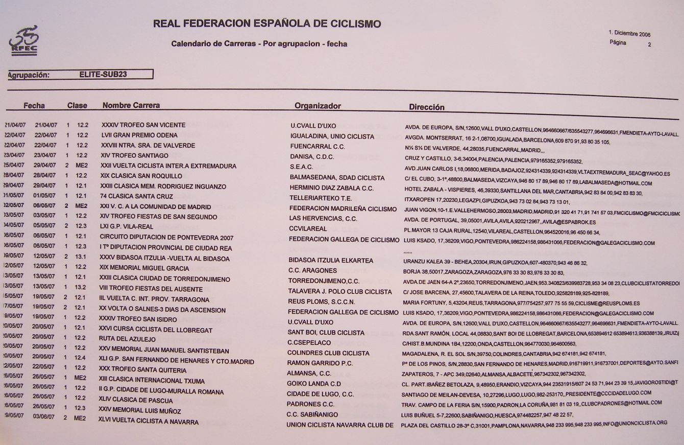 ![]() Aqui tenemos que la Vuelta Galicia, ahora en Marzo, y Cartagena, coinciden con el Macario. |