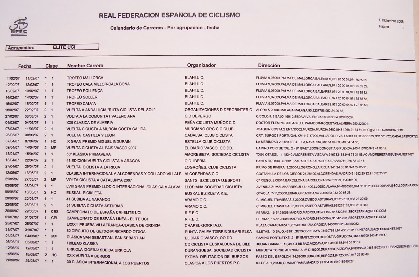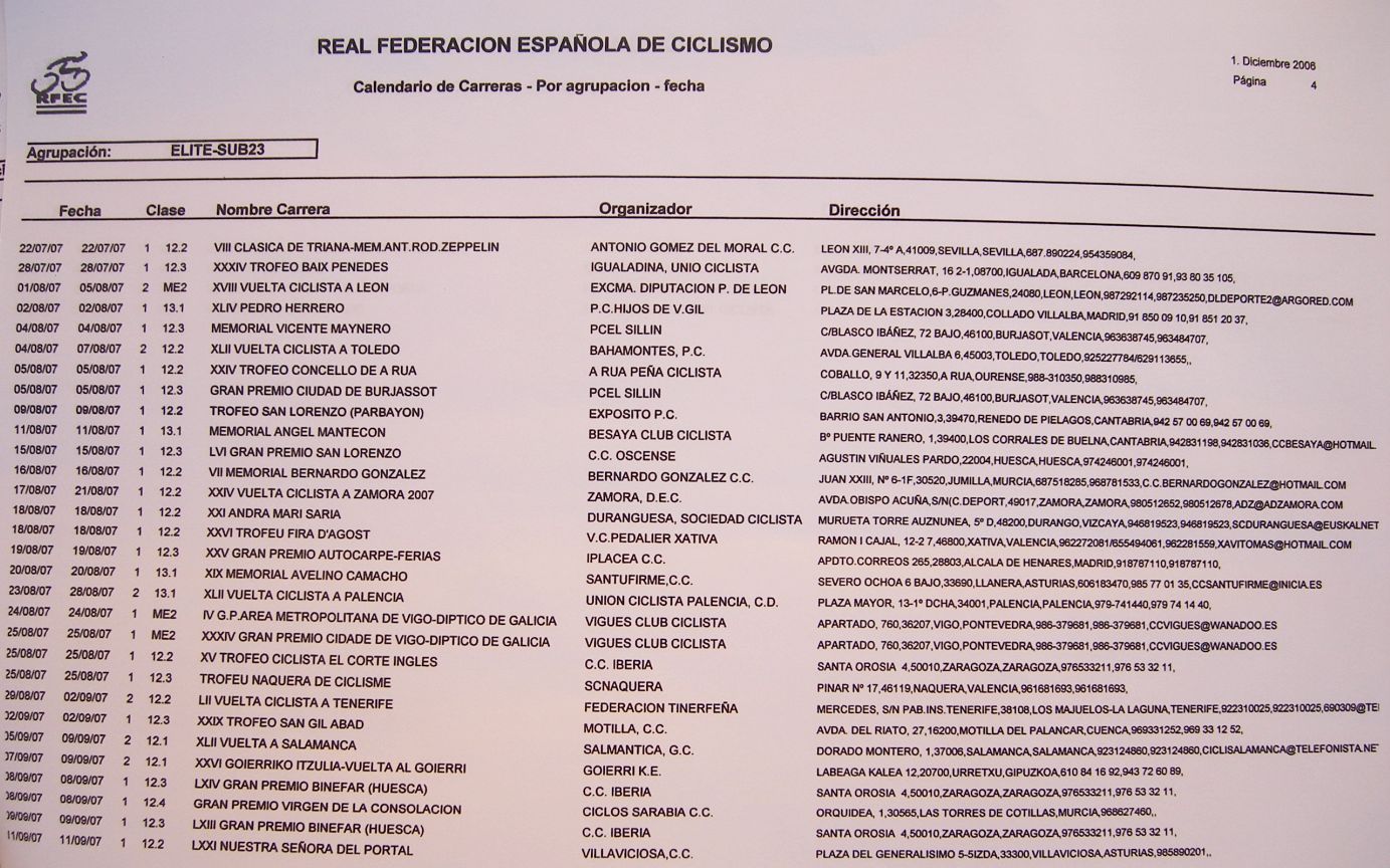 El pasado 2 de Diciembre se realizó en Madrid la asamblea de Andyca para la temporada 2007 con la presencia de la nueva junta directiva, presidida por Vicente Martinez, director del equipo Nagares, y los socios de Andyca, yo acudí como delegado de los ciclistas, novedad este año. En esta asamblea se aprobaron los nuevos estatutos para 2007 y se propusieron nuevas ideas para la próxima temporada. Para aclarar un poco las ideas diré que Andyca es la asociación nacional de directores y ciclistas de Elite-Sub23, se fundo hace mas de 10 años como sindicato para velar por los derechos y condiciones de los equipos y los ciclistas. Por ejemplo una de las funciones mas importantes de Andyca es que se cobren los premios de las vueltas, que si no fuera por Andyca habria muchas vueltas que se seguirían realizando sin cobrar premios. Andyca se financia con el 3% de los premios de los ciclistas de las Vueltas por etapas y Copas de España, puede parecer mucho ese 3% pero es menos que lo que se perdería si Andyca no gestionara el cobro de los premios, puesto que muchas vueltas y carreras tienden a no pagar y en algunos casos Andyca tiene que recurrir a los juzgados para que se realizen dichos cobros, con un coste mayor que si lo hiciese un corredor por su propia cuenta. Aunque Andyca no solo tiene esa función, también defiende a los ciclistas y a los equipos con su gestoria de abogados en conflictos que se produzcan en las competiciones, ya sea accidentes, problemas con la federación, arbitros o casos injustos de dopaje sin sentencia firme. NOVEDADES Y PROPUESTAS PARA 2007. Como Andyca se financia con el dinero de los ciclistas a partir de este año los ciclistas también van a estar presentes en las Asambleas, que es donde se aprueban las normas y se toman las decisiones importantes, hasta ahora en las asambleas solo han habido directores, es por ello que otras veces se han tomado decisiones en las que los ciclistas no estaban de acuerdo. A partir de ahora cada región estara representada por uno o 2 ciclistas, que acudiran a las asambleas para exponer sus ideas y apoyar o no lo que se decida en las asambleas, siempre en beneficio de los ciclistas. Otra de las novedades importantes es que a cada ciclista se le preguntara si desea o no pertenecer a Andyca. Hasta ahora todos los ciclistas que pertenecian a los equipos de Andyca, los cuales eran casi todos, eran socios y pagaban con el 3º% de sus premios cobrados a través de Andyca, a pesar de que no acudían a las asambleas. Ahora el ciclista podrá decidir si quiere pertenecer a Andyca o no, si no quiere pertenecer no tendrá que pagar el 3% de sus premios a la asociación, pero estos no serán cobrados por Andyca a las vueltas , con lo que serán mas las dificultades que tendrá este ciclista para cobrarlos, pero el ciclista esta en su derecho de decidir si quiere o no pertenecer a Andyca. Los premios de las carreras llevan estancados desde hace mas de 10 años, se viene cobrando lo mismo o incluso menos que en epocas pasadas, desde Andyca se ha propuesto aumentar los mínimos de las carreras segun lo que suba el IPC, que es la inflacción anual del País, hasta ahora así se ha hecho con las dietas para los equipos, pero se pretende que se haga con los premios, el ciclista cada vez cobra menos. Para mayor gestión de los premios, a partir de ahora seran notificados públicamente cada mes por internet, las vueltas que han pagado y que equipos las ha cobrado ya, asi el ciclista sabe el dinero que se ha cobrado ya. No será obligatorio acudir a las Copas de España, la Copa de España es una competición que organiza la Federación Española de Ciclismo. Los lideres deben llevar un maillot con una publicidad de la Española, sin embargo la general final de la Copa España no tiene premios, con lo que es injusto tener que participar obligatoriamente. A partir de ahora las organizaciones de las Copas de España invitaran obligatoriamente a los diez primeros equipos del ranking ademas de a los que quieran, pero los diez primeros podrán acudir si quieren o no. Se suprimen las categorias, no habra equipos de primera, segunda o tercera, la clasificación del ranking seguirá existiendo pero se suprimen las divisiones para que haya mayor igualdad entre los equipos y no existan las pugnas en las que estar el 14º o el 16º supongan una gran diferencia. Se quiere también que se amplie la cobertura de coches neutros como ocurre en el extranjero, que un corredor pincha y es atendido casi siempre primero por el coche neutro, lo cual favorece al corredor por que se incorpora antes y al director, porque se suprime la tensión existente en las filas de coches por pasar alante. Se propuso dotar de repuestos a los coches escoba puesto que el corredor que va atrás cuando pincha o tiene averia se ve totalmente desamparado y depende unicamente de los coches de equipos que circulen por detrás. También se quiere controlar mas la calidad de los arbitros. Se debatió también acerca de no correr pruebas con los Continentales pero es inviable por que en pruebas como el Circuito Montañés o Vuelta León, en los reglamentos de la UCI se les exige tener equipos continentales. Se propuso que Andyca gestionara los equipos que quieren correr las vueltas, asi un equipo notifica a Andyca las vueltas que quiere correr, Andyca informa al organizador y el organizador escoge a que equipos de los que quieren correr su Vuelta invita, de esta forma se soluciona que un equipo modesto sea notificado 4 dias antes que va a correr una vuelta, como suele pasar. También se debatió acerca de los controles de Sangre, Andyca esta de acuerdo pero las maquinas con las que se hacen deben estar bien homologadas y debidamente calibradas, a parte se quiere que se haga una tercera toma para analizarla en laboratorio, para que asi sea mas fiable. Hay que recordar que a los profesionales se les preguntó en su dia si querian esos controles y aceptaron, pero a los aficionados ni se les ha p