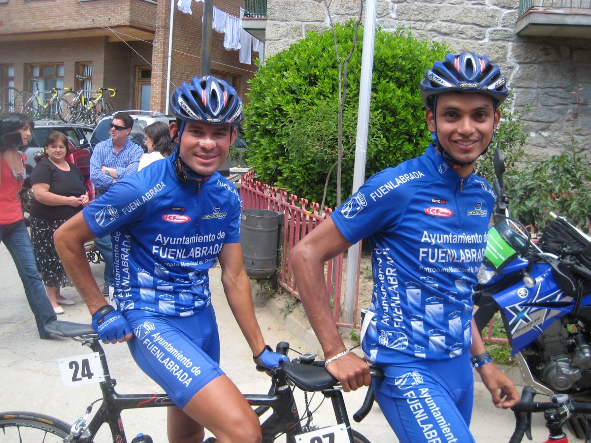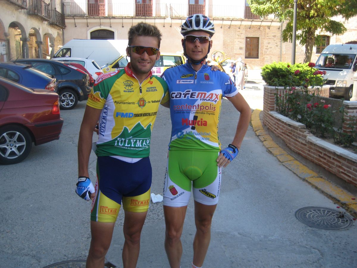 Pero no contaba con Pol Nabben, que salía con los calcetines Diegoweb, y con mi compañero Jose Antonio Segovia, el biker del Julymar, que fue la revelación de la Vuelta Avila, tremendo lo que anda el bicho, entre los dos se pusieron a remar a remar, parecía que andaban haciendo el tonto perdiendo fuerzas pero poquito a poco se fueron yendo, se fueron yendo, hasta que se perdieron en el horizonte y ya cogieron algunos minutos.