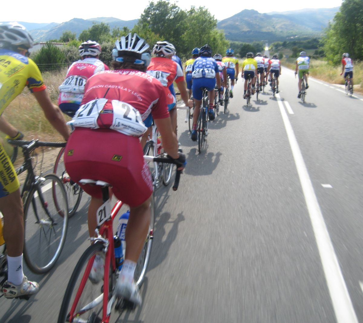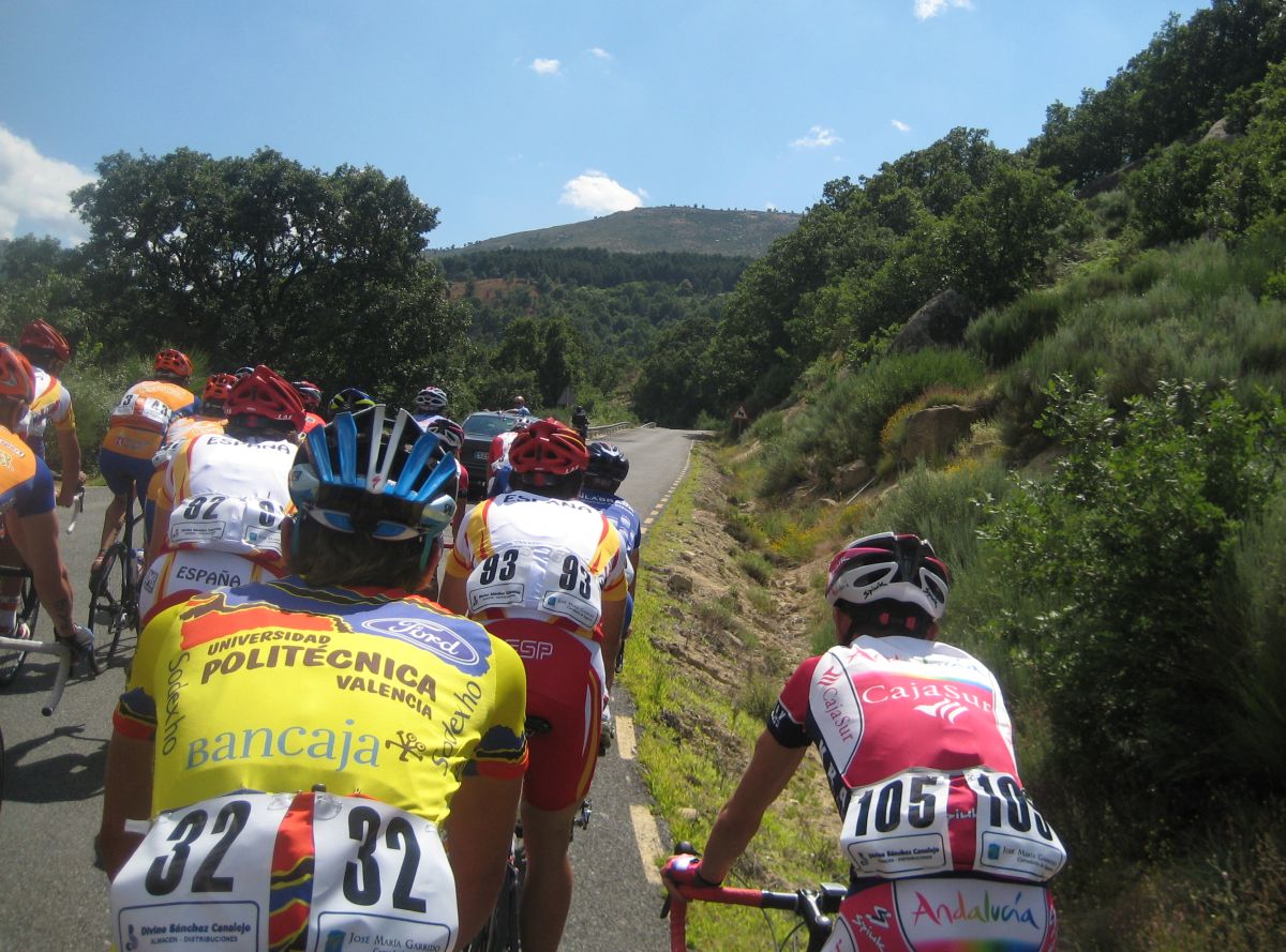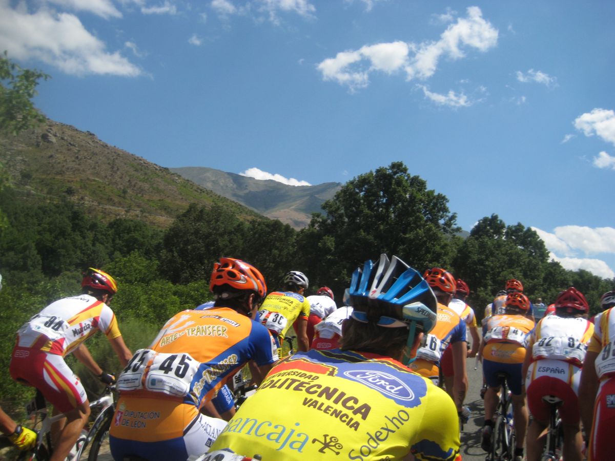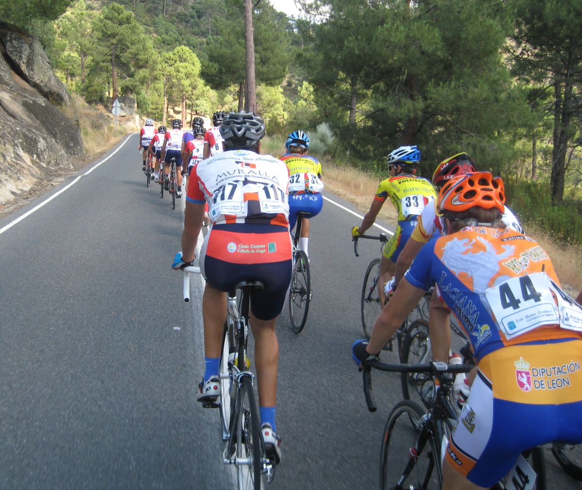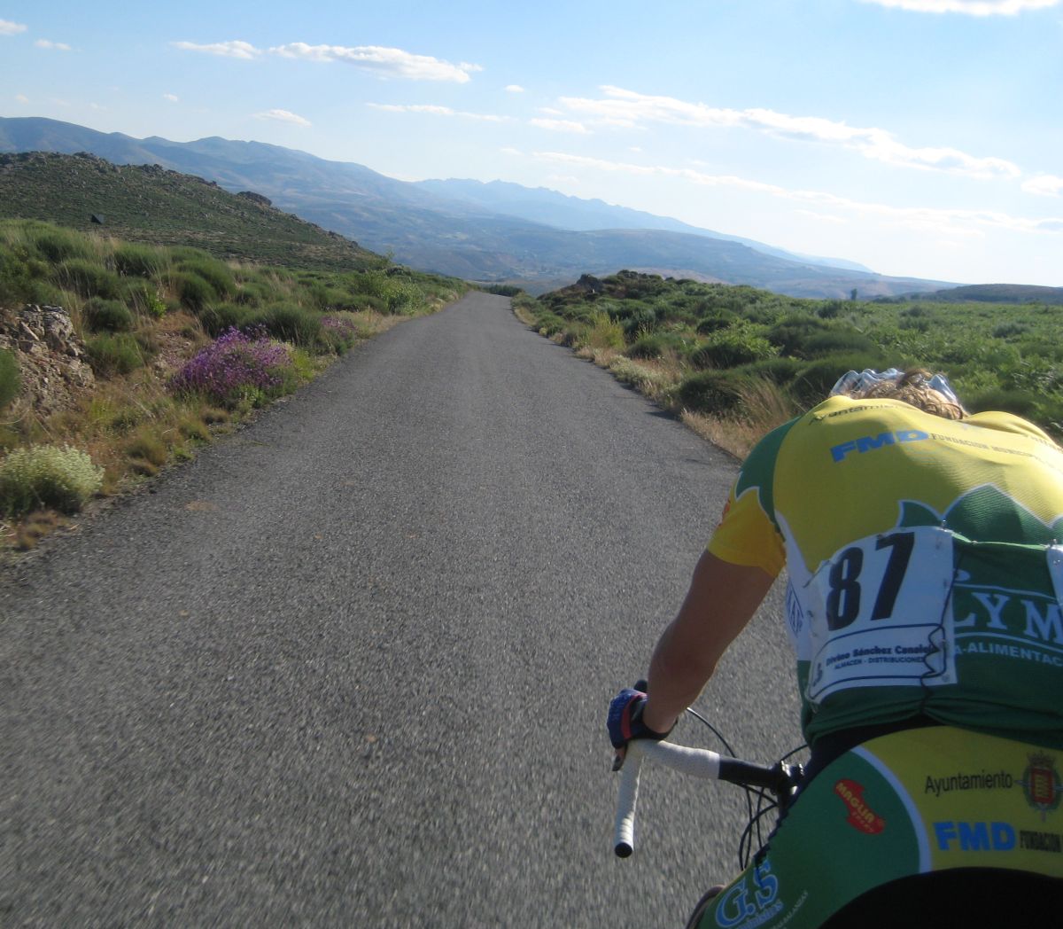 Curvas de herradura con mucho aire, yo iba aguantando pensando que se acababa pronto, que rapidamente volveriamos a la carretera ancha del Barco de Avila, pero aquello seguía para arriba y para arriba, yo iba bien situado, teniamos a los escapados ya muy cerca, pero iba ya en el límite, cuando vi que el puerto seguía mucho para arriba dejé de dar pedales, no estaba mentalizado para eso, ya hice grupeta yo solo, marcha atrás, hasta que me cogío Sieve, que venia remontando después de pagar su esfuerzo de la escapada y se puso a tirar de mi.