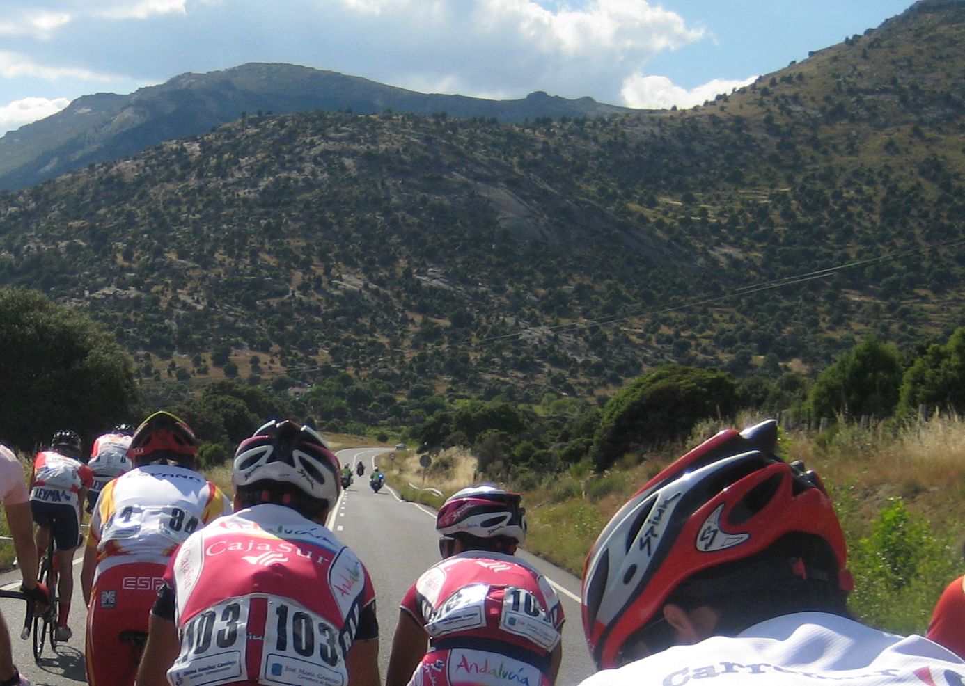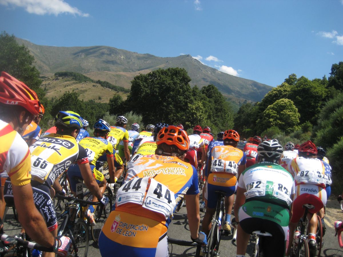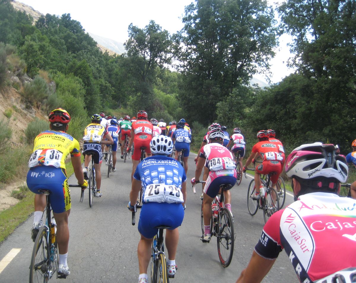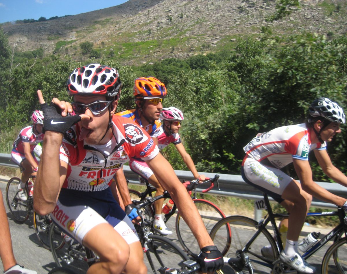 Curvas de herradura con mucho aire, yo iba aguantando pensando que se acababa pronto, que rapidamente volveriamos a la carretera ancha del Barco de Avila, pero aquello seguía para arriba y para arriba, yo iba bien situado, teniamos a los escapados ya muy cerca, pero iba ya en el límite, cuando vi que el puerto seguía mucho para arriba dejé de dar pedales, no estaba mentalizado para eso, ya hice grupeta yo solo, marcha atrás, hasta que me cogío Sieve, que venia remontando después de pagar su esfuerzo de la escapada y se puso a tirar de mi.