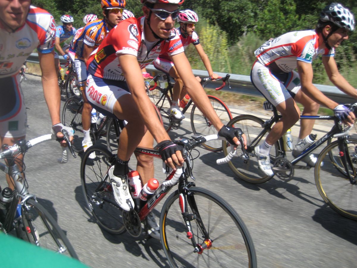 Llegamos al puerto, empezaron a arrancar, se subió a ratos fortisimo, a ratos paron, pero un ritmo que hizo muchisimo daño, ratos subiendo a 35 por hora, horrible, mientras los de alante iban subiendo a la marcheta abriendo hueco atras comiendonos látigos y parones. Perdi contacto y ya me tocó perseguir bajando pero enganché pronto, aunque fue enganchar y ponerse los Froiz a cerrar cuneta, me coloqué alante y a chupar cuneta.