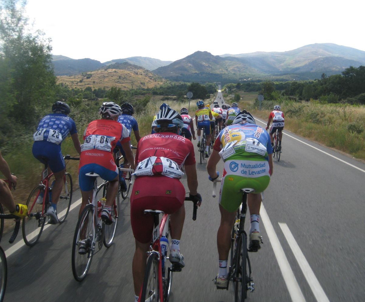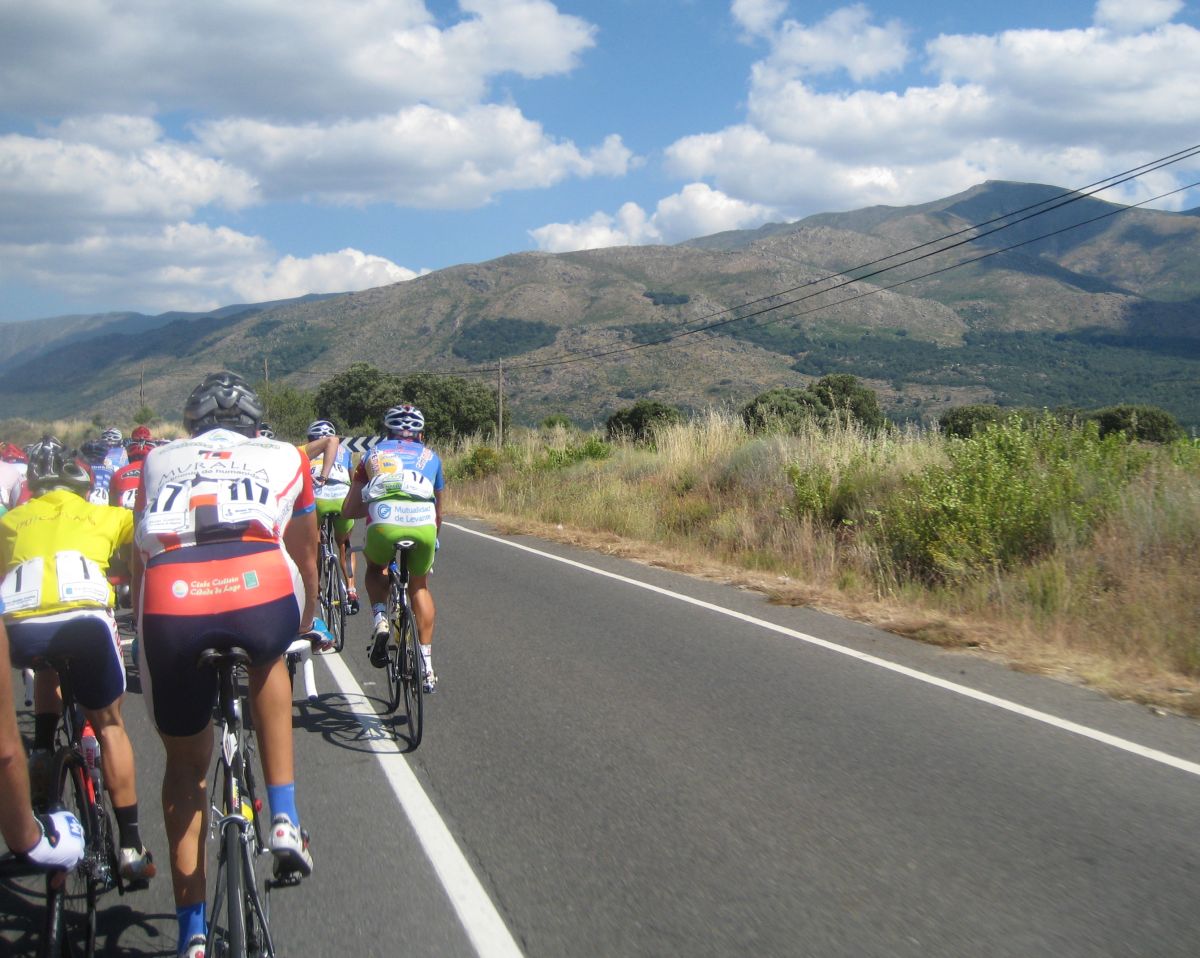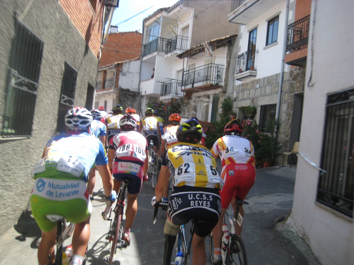 Empezamos a subir el puerto del Barraco, con aire de cara, ahí ya el ritmo se hizo mas cansino, ya se veia que se podía ir mucho mas deprisa y que la fuga podía abrir mas hueco, fue una subida comoda en el pelotón, pasamos el pueblo del Chaba y Carlos Sastre y ya cogimos la carretera de Navalmoral, donde algunos arrancaron, pero sin exito, la escapda estaba hecha y no iban a permitir mas.