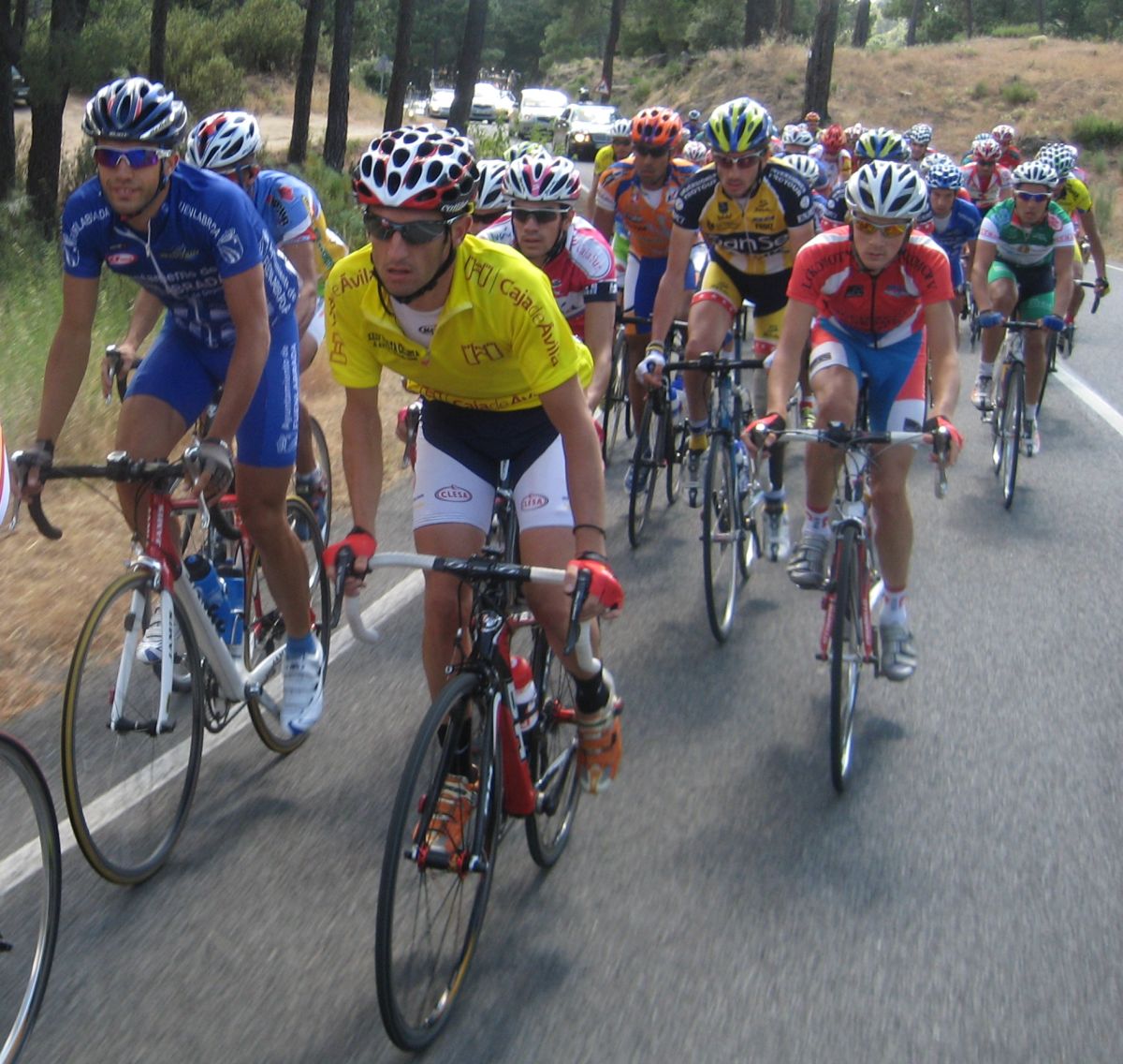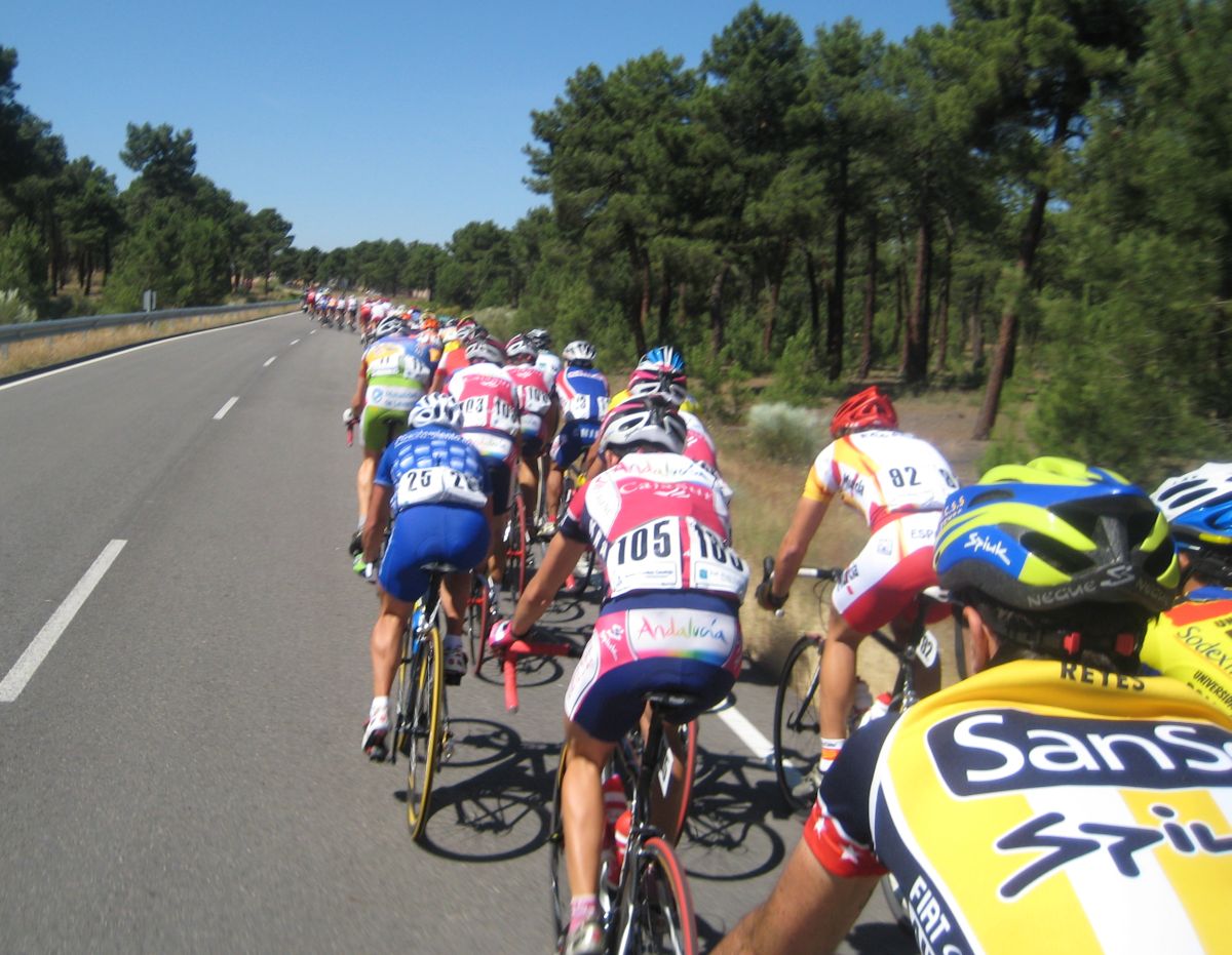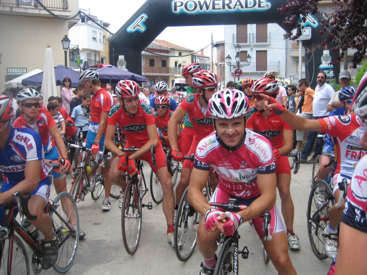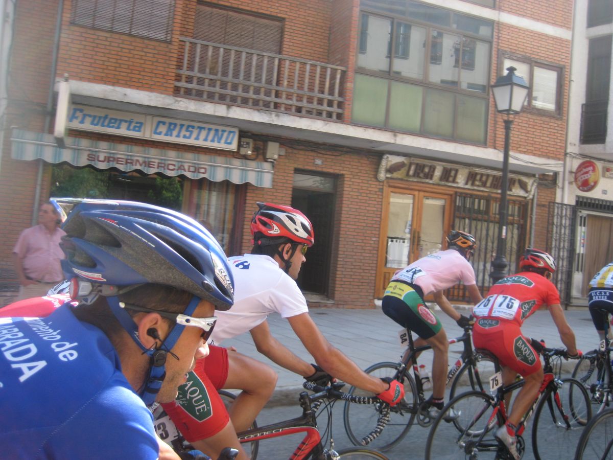 Empezamos a subir el puerto del Barraco, con aire de cara, ahí ya el ritmo se hizo mas cansino, ya se veia que se podía ir mucho mas deprisa y que la fuga podía abrir mas hueco, fue una subida comoda en el pelotón, pasamos el pueblo del Chaba y Carlos Sastre y ya cogimos la carretera de Navalmoral, donde algunos arrancaron, pero sin exito, la escapda estaba hecha y no iban a permitir mas.