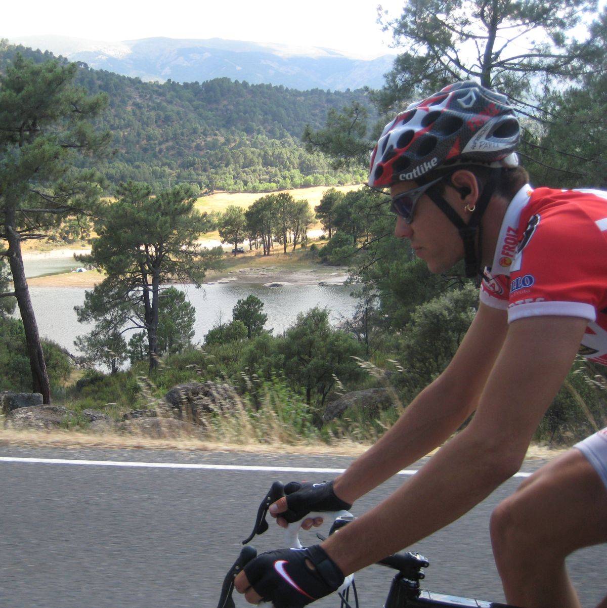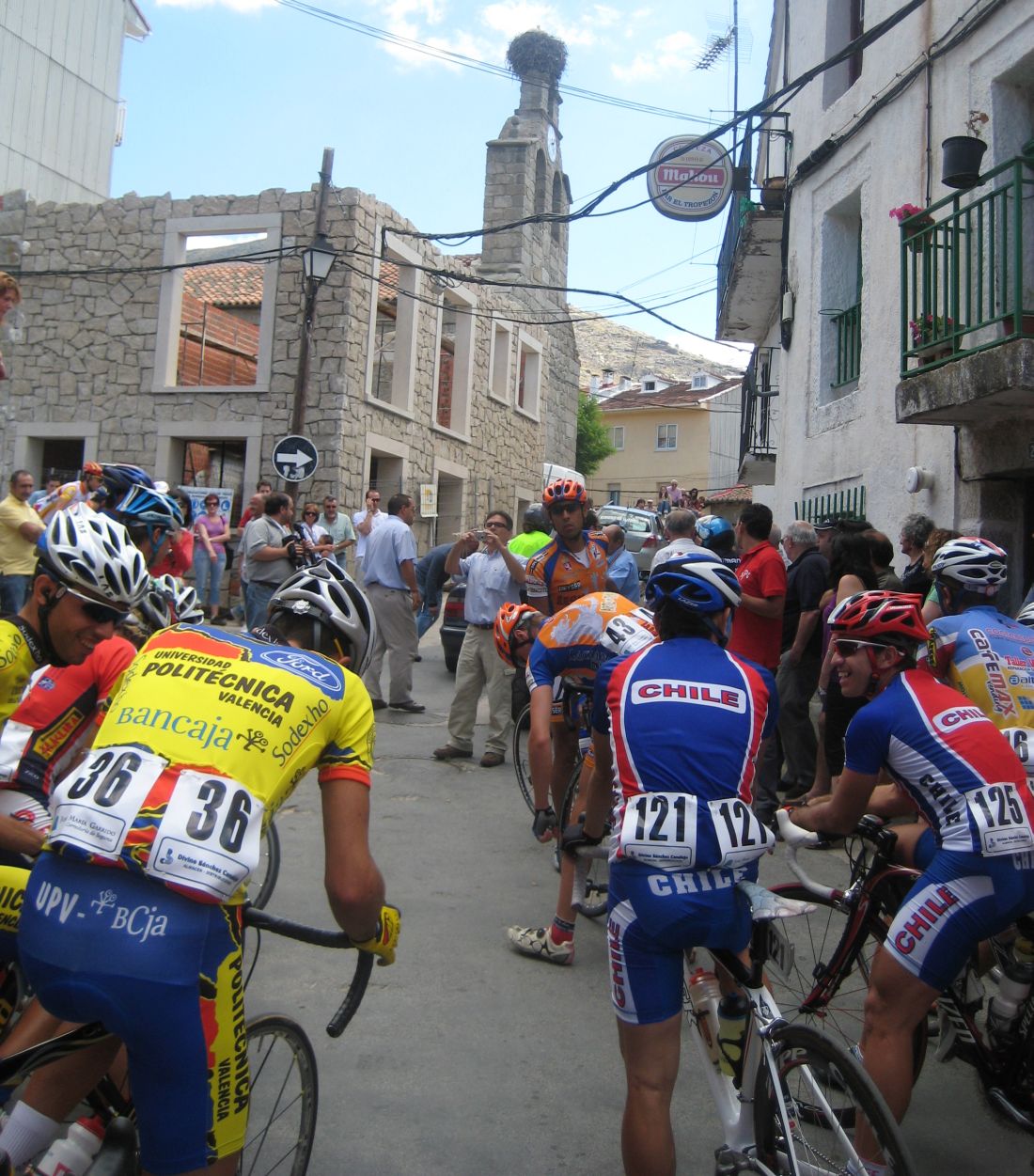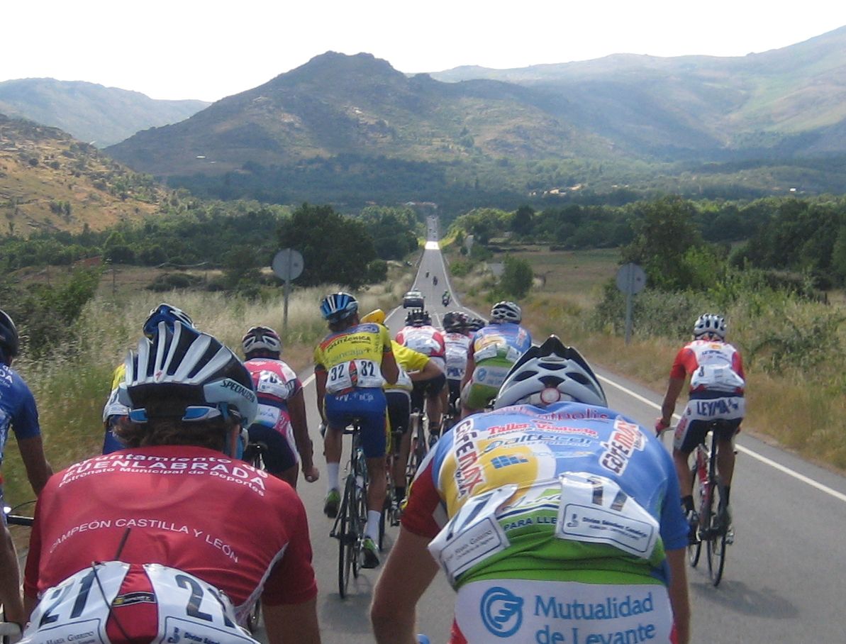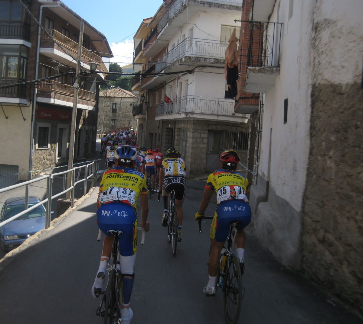 En una recta larga vimos que iban lejisimos los escapados, menuda remada se estaban pegando, nos acercabamos al primer puerto, pasando Navalacruz, el pueblo de Iker Casillas, es un puerto que duele, tiene una zona con rampas duras que dejan tocado y un final que duele, sobre todo esta vez que atacaron a bloque y se partió el pelotón.
