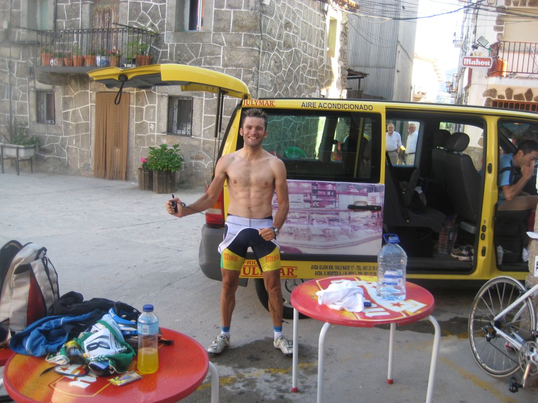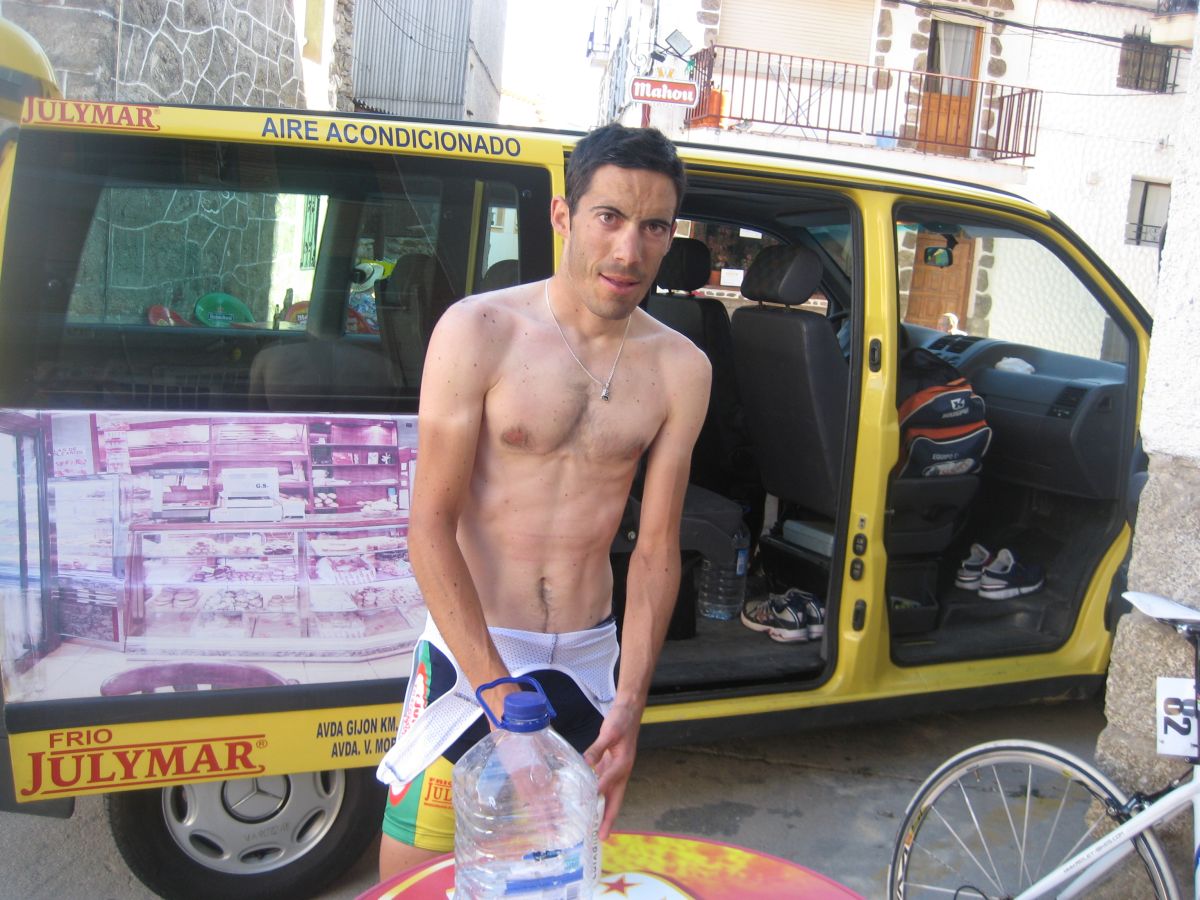 Cebolla conseguía asi salir de lider en su pueblo, eso tiene que ser muy grande en una Vuelta Avila, una salida en Navas del Marqués donde aparecia la lluvia, que hacía tiempo que no la veiamos, yo desde Galicia, aunque en todas las vueltas que he corrido ha aparecido en mayor o menor medida.