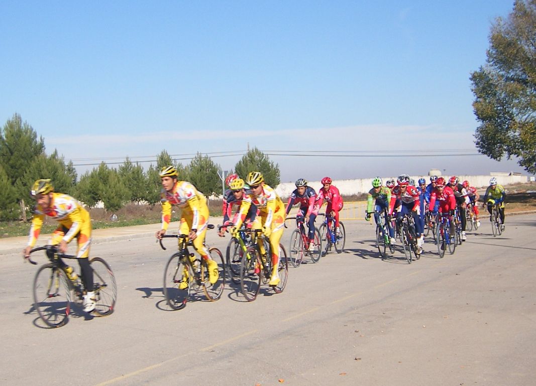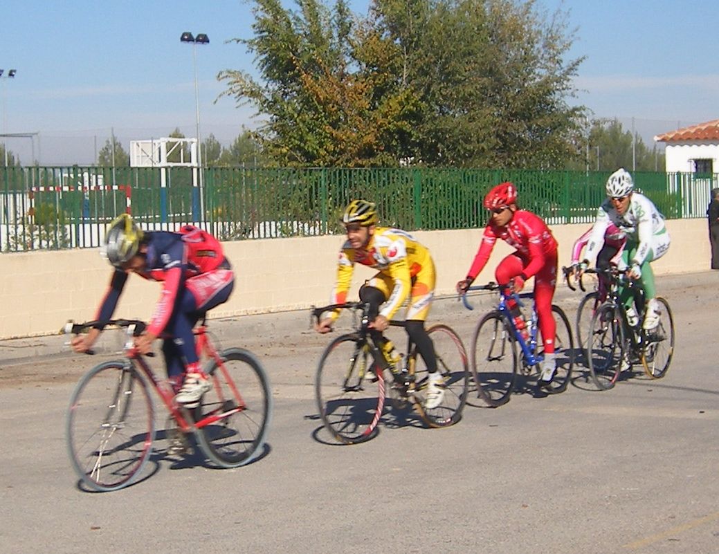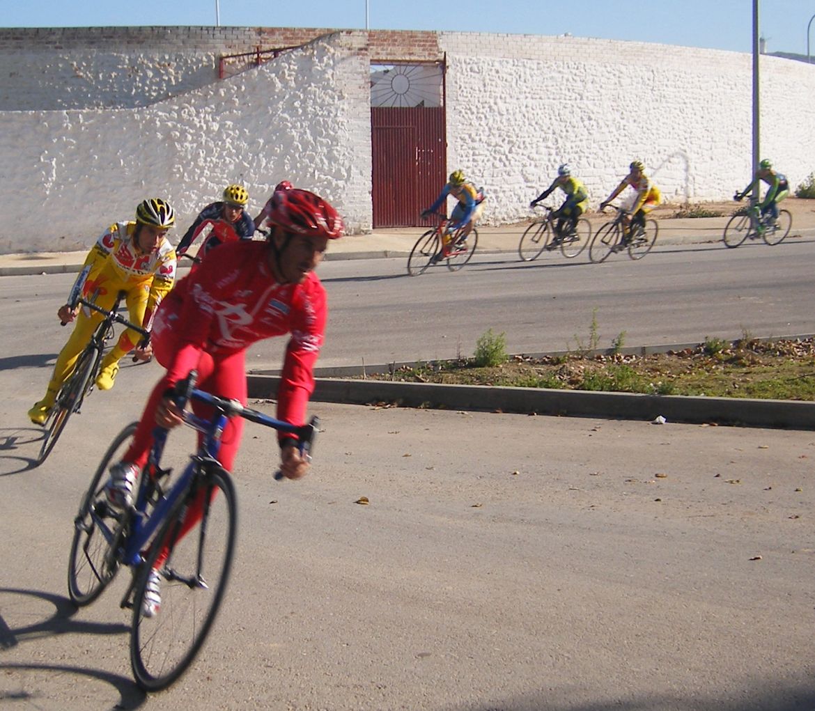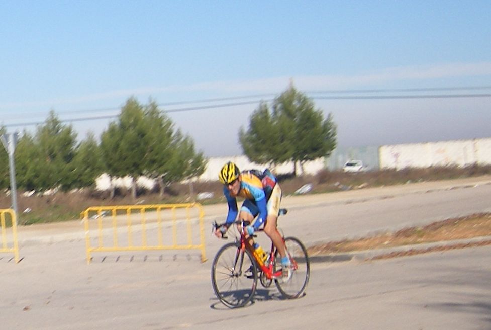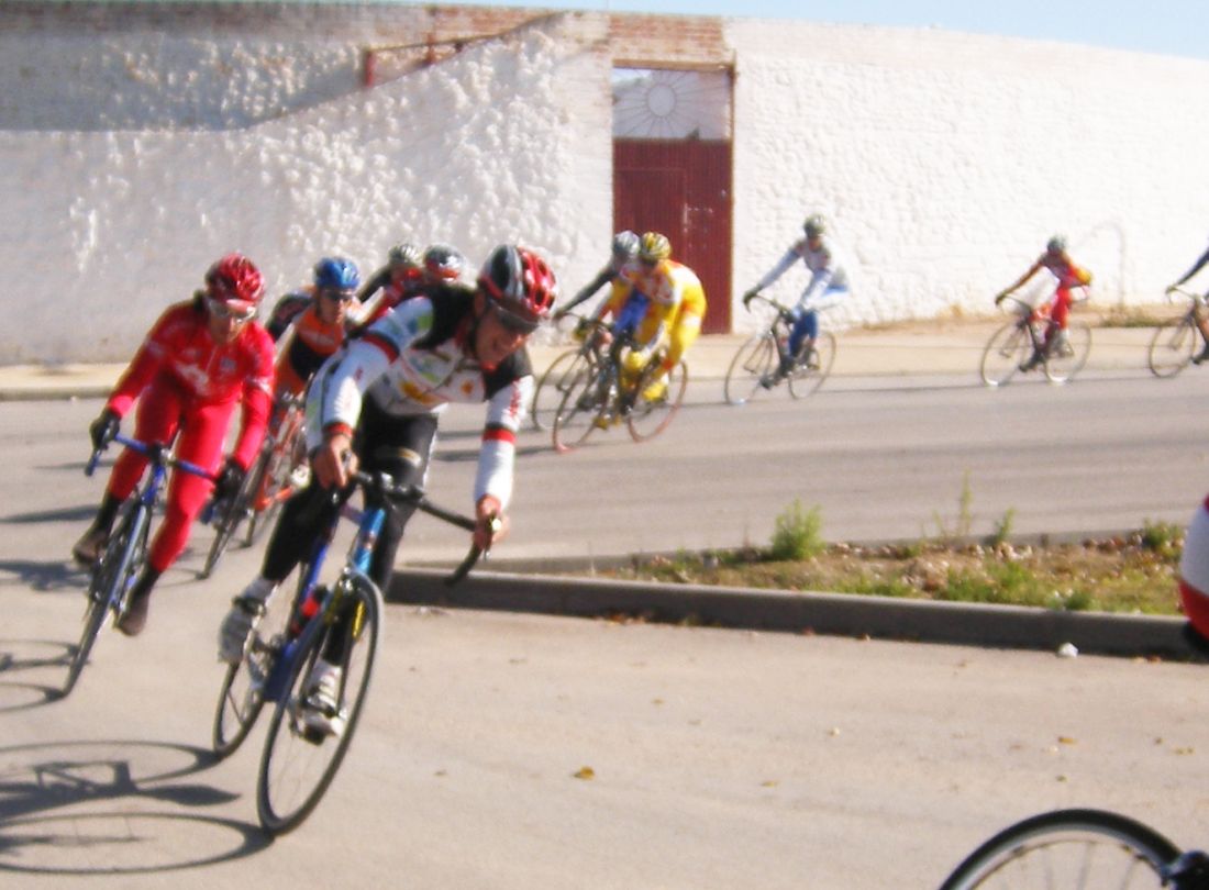 La primera vez que corró un criterium de profesionales, esto era una gran novedad para mi, era la tercera edición del Criterium de Herencia, -un pueblo de Ciudad Real 12 kms al Este de Puerto Lápice-, con la presencia de muchos profesionales, entre ellos Oscar Sevilla, Perdiguero, Redondo, Lobato.. organizado por la Pc Oscar Laguna, que fue el que me invitó.