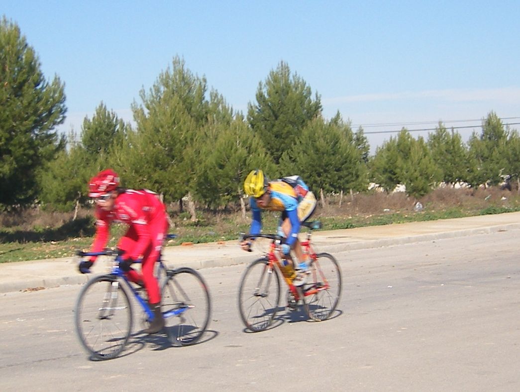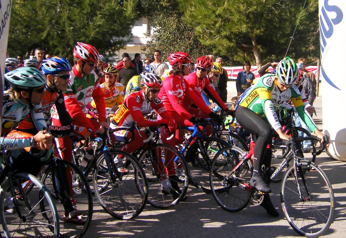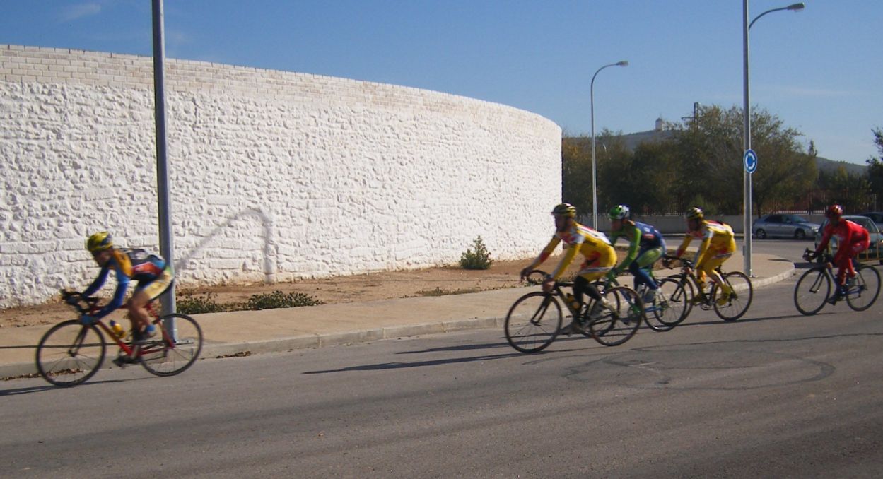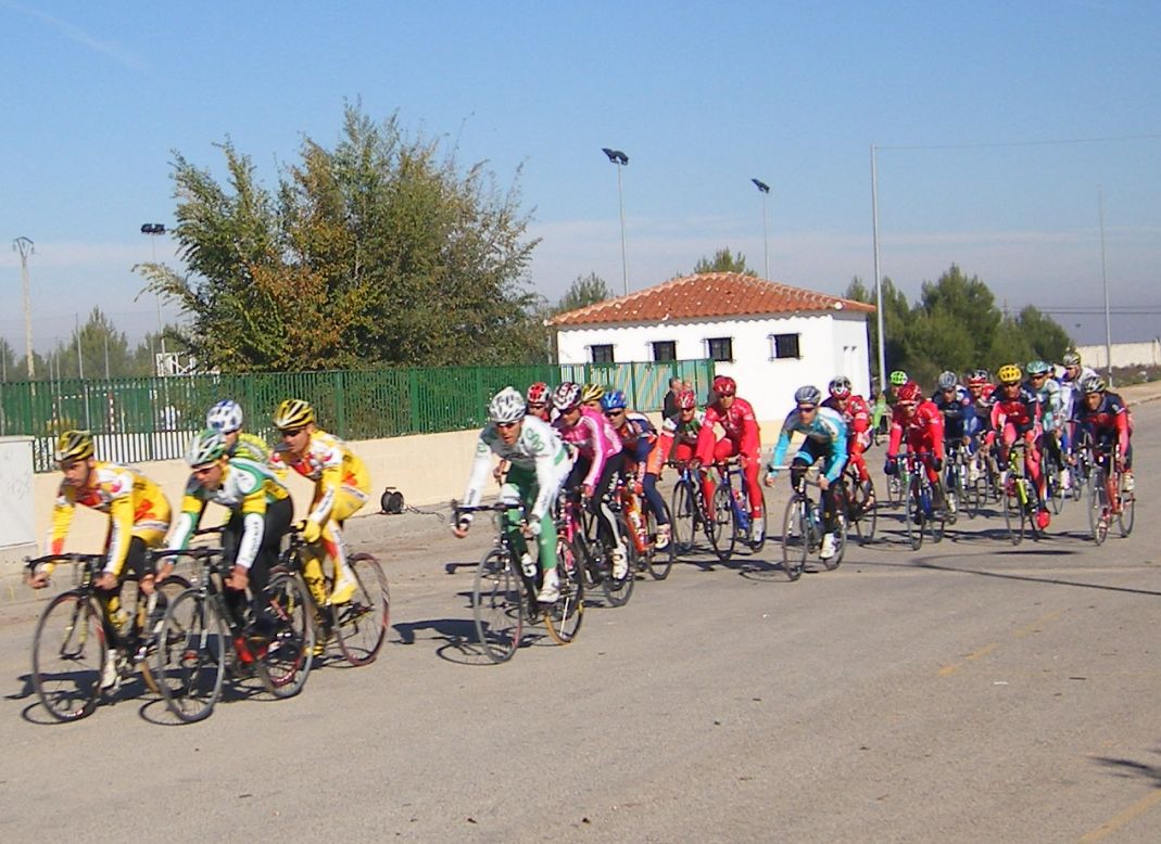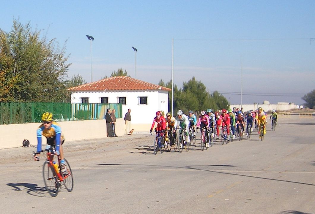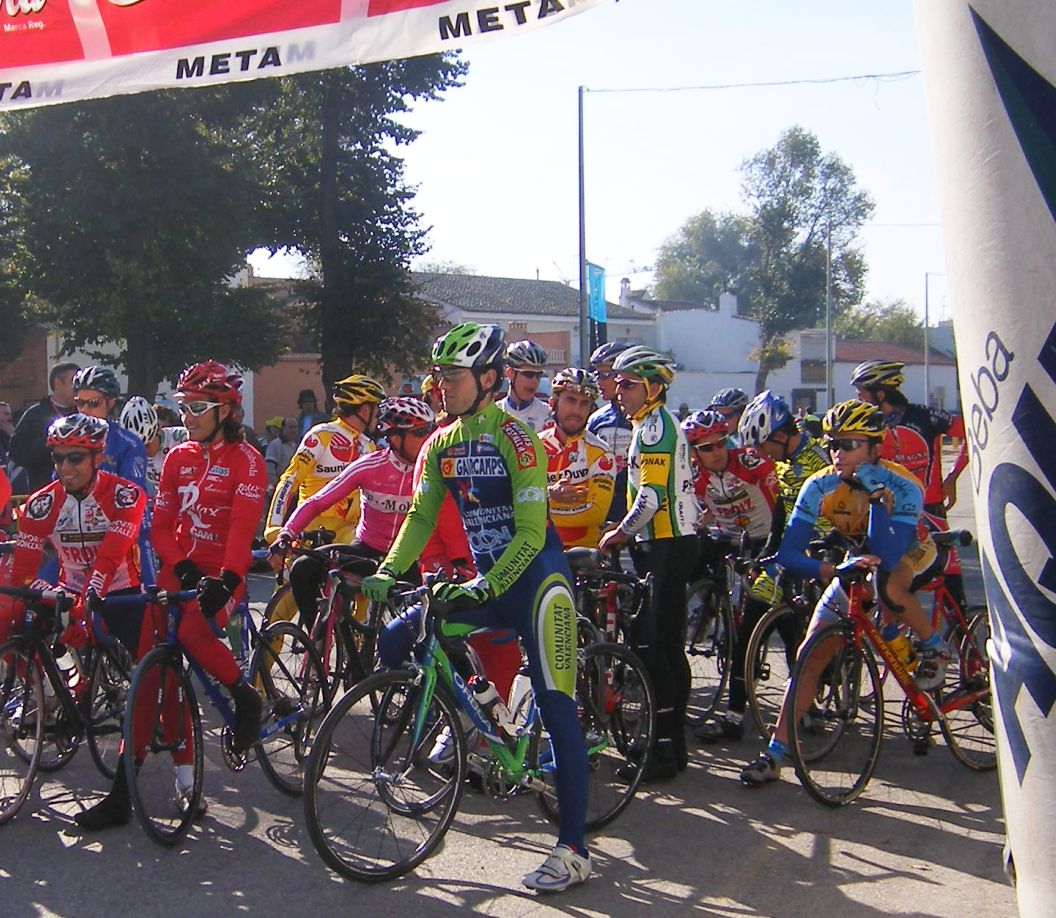 La primera vez que corró un criterium de profesionales, esto era una gran novedad para mi, era la tercera edición del Criterium de Herencia, -un pueblo de Ciudad Real 12 kms al Este de Puerto Lápice-, con la presencia de muchos profesionales, entre ellos Oscar Sevilla, Perdiguero, Redondo, Lobato.. organizado por la Pc Oscar Laguna, que fue el que me invitó.