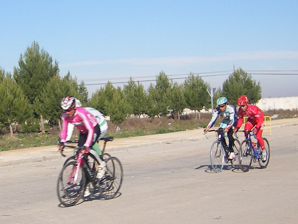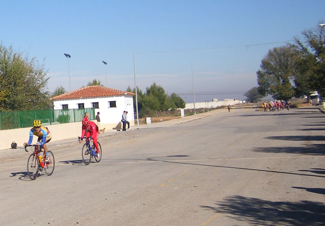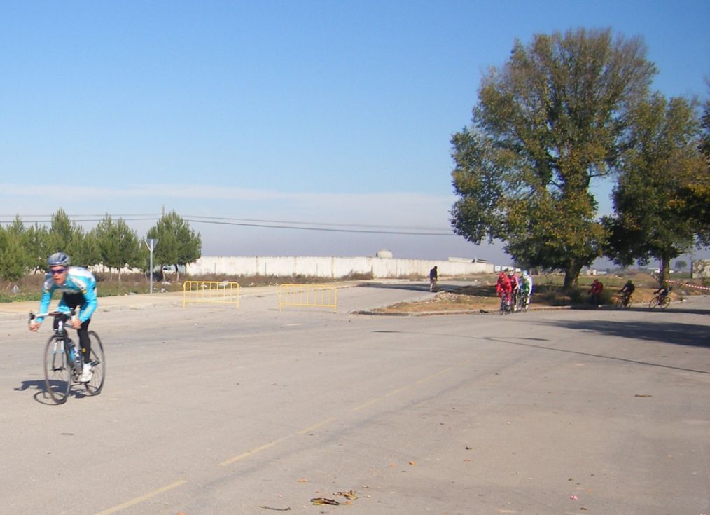 Nacór Burgos del Relax con el dorsal 1 fue el mas chisposo que dió el saque de honor iniciando las hostilidades, yo salí con el Diegoweb autómatico encendido pensando que estabamos ya en Don Benito con toda la forzona acumulada del descanso otoñal y tardé poco en fugarme con el, me puse a rueda hasta que me pidió relevo y empezamos a abrir bastante hueco los dos.