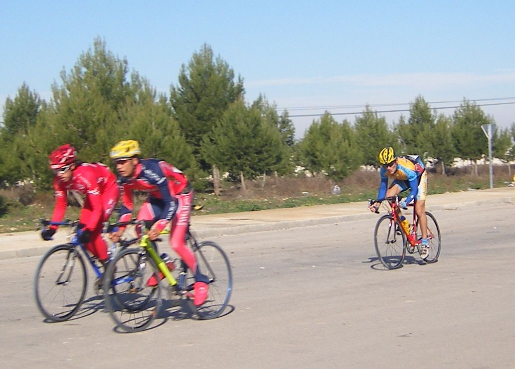 Se hizo entonces la escapada buena, primero arrancaron Oscar Sevilla y Pasamontes, y luego otro grupillo con Martin Garrido, Casarubios de Relax y Redondo. Perdiguero y otro Saunier también anduvieron metidos ahi pero se quedaron. Yo seguía en la oficina tranquilo.