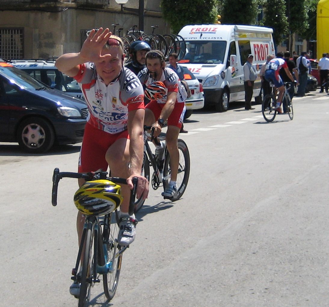 Pero como ya me lo sabía pues fui regulando un poco, no me cebé, aunque lo pasé fatal con el hinchazon de la salida y lo mal que sientan las etapas por la tarde, fui persiguiendo con un grupillo despúes hasta que enganchamos con el pelotón. Yo me puse a arrancar, ya el momento malo lo había pasado, pero se estiró mucho la cosa a por mi y me cogieron, vi una meta volante y me puse a esprintar, pero vi que no había oposición, asi que me supuse lo que pasaba, que había escapados por delante pero yo que coños iba a saber si había llegado de detrás.