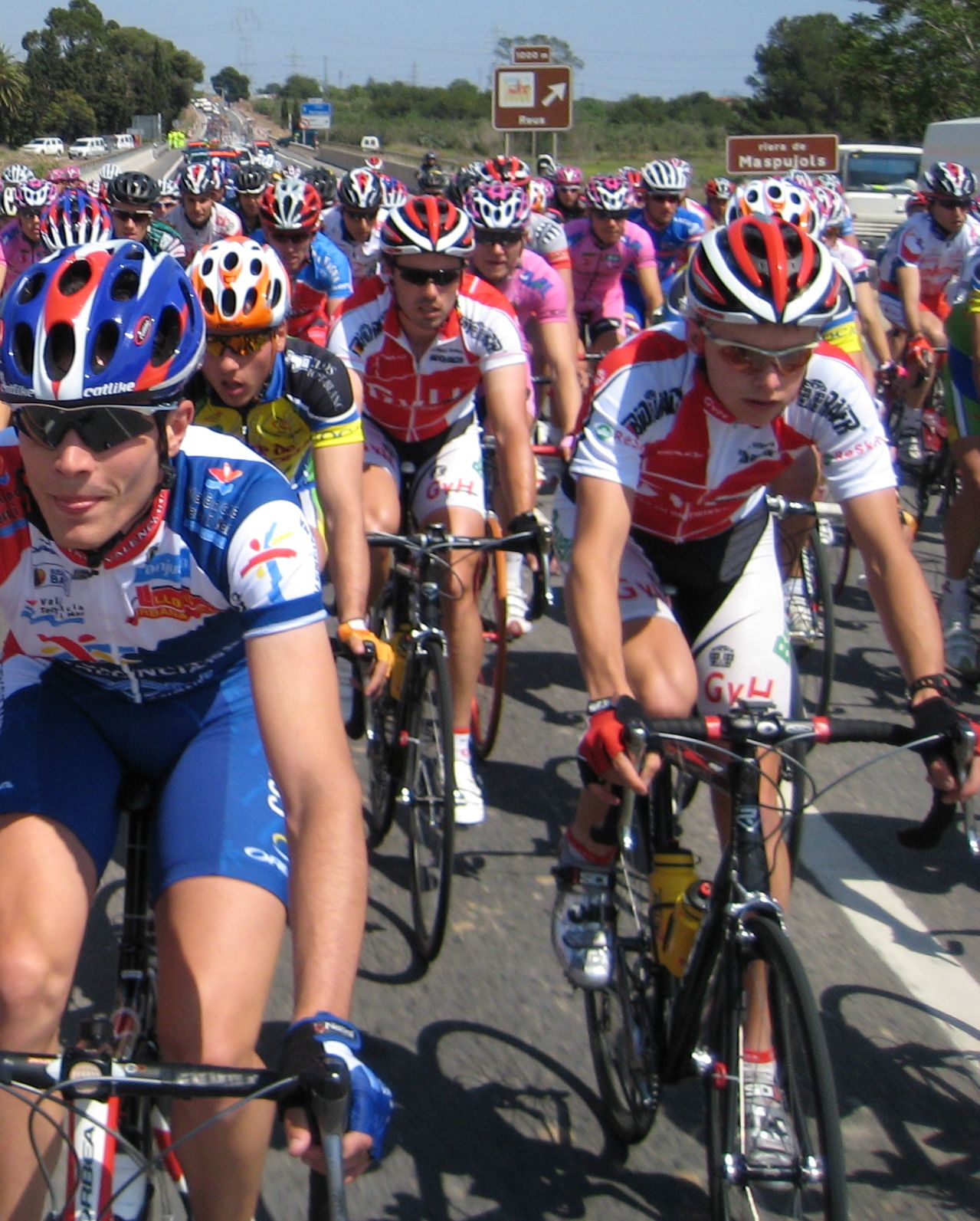 Escobar tiraba el solo, se cansó de tirar y arrancó el solo desde alante, donde iba??? no sabía que hacer con tanta fuerza yendo de lider. la que se lió, a mi me entro un dolor de patas que ya fui yendo para atrás, me pasaron todos los kapos, la que se iba a liar, aunque todavía me quede de las primeras posiciones, el pelotón iba estirado, no había que perder la cabeza.